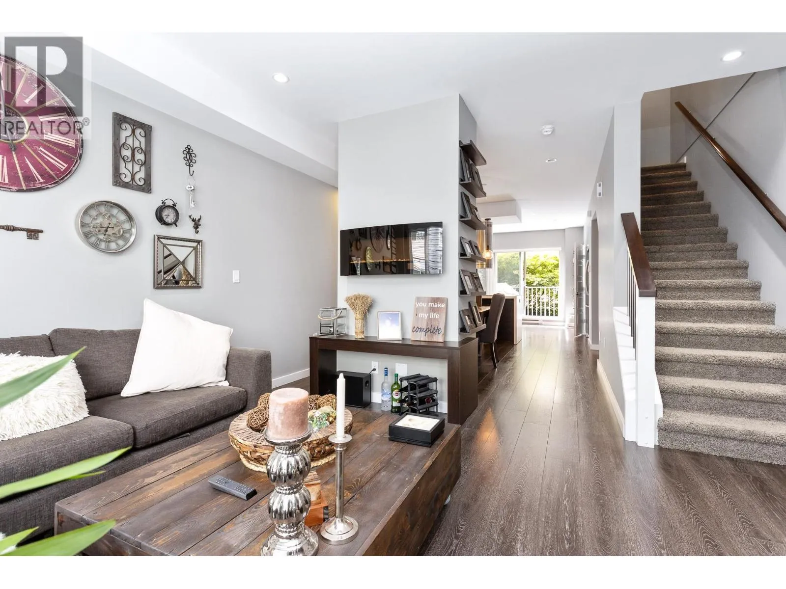 Welcome to The Alexa. This modern 3 bedroom, 3 bathroom townhome has been meticulously cared for and maintained with lots of unique features including a Bosch dishwasher, a full size washer/dryer, LED lighting, kitchen hood fan and electric wall mounted fireplace. The main floor features an open concept with the deck off the kitchen with stairs to your backyard which is perfect for entertaining guests and family. Below is a Tandem Garage with room for storage. This is a very well maintained complex with only 10 units, family and pet friendly. This home is in a great location, close to all amenities. (id:27476)