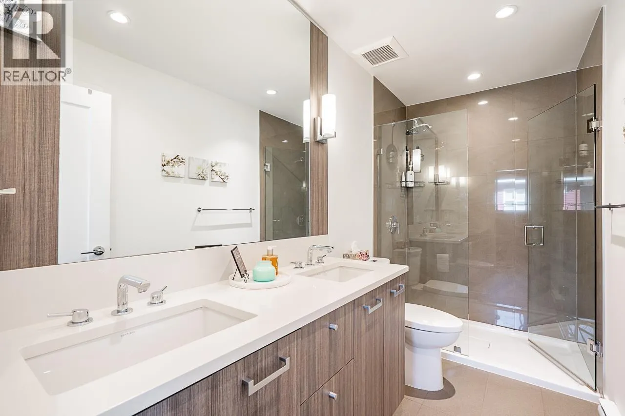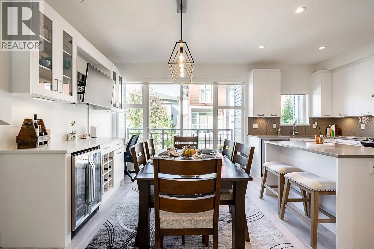 Welcome to CREEKSIDE! This bright 3 bed/4 bath CORNER home truly feels like a showhome. Nestled on a double greenbelt for total privacy with a serene south-facing fenced yard! Over 1,800 SF on 3 levels + double side-by-side garage. Chef´s kitchen with island breakfast bar, granite counters, designer backsplash, premium S/S appliances, gas stove & BBQ hookup - plus a custom built-in kitchen bar with mini fridge! Spacious dining for family dinners, sunlit living with cozy linear fireplace + powder on main. Upstairs: 3 generous bedrooms incl. primary with walk-in upgraded California Closets & spa-like ensuite with glass shower + his & hers sinks. Lower level features a walk-out nanny suite/rec room with full bath. Fantastic location near Kanaka Creek Park & Elementary, Plaza and Bruce's Market. (id:27476)