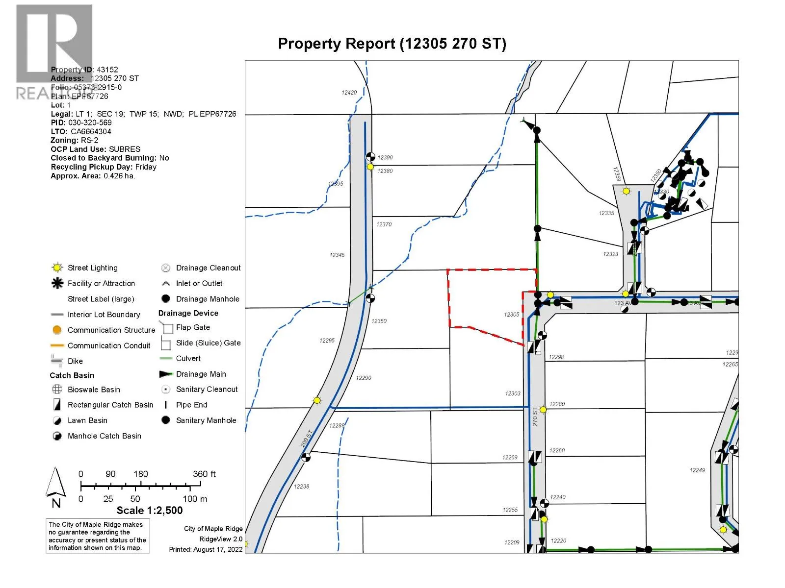 Here is your opportunity to build your dream home in one of the most stately and prestigious areas of Maple Ridge. This 1.05 acre rare gem sits among some stunning, custom, designed estate homes and is waiting for your ideas. No watercourse on property, it is not flood plain, not in ALR, there is city water available at the lot line and there is no shared sewer treatment system. (On site septic location has been approved). The lot is cleared with hard pan gravel driveway to access the building site. BONUS: no thru road limited traffic as well as West Exposure to lend way to incredible sunsets. Out of town enough but also close to everything you need including the sought after private Meadowridge School. Don't pass up this opportunity. Call your realtor for an information package! (id:27476)