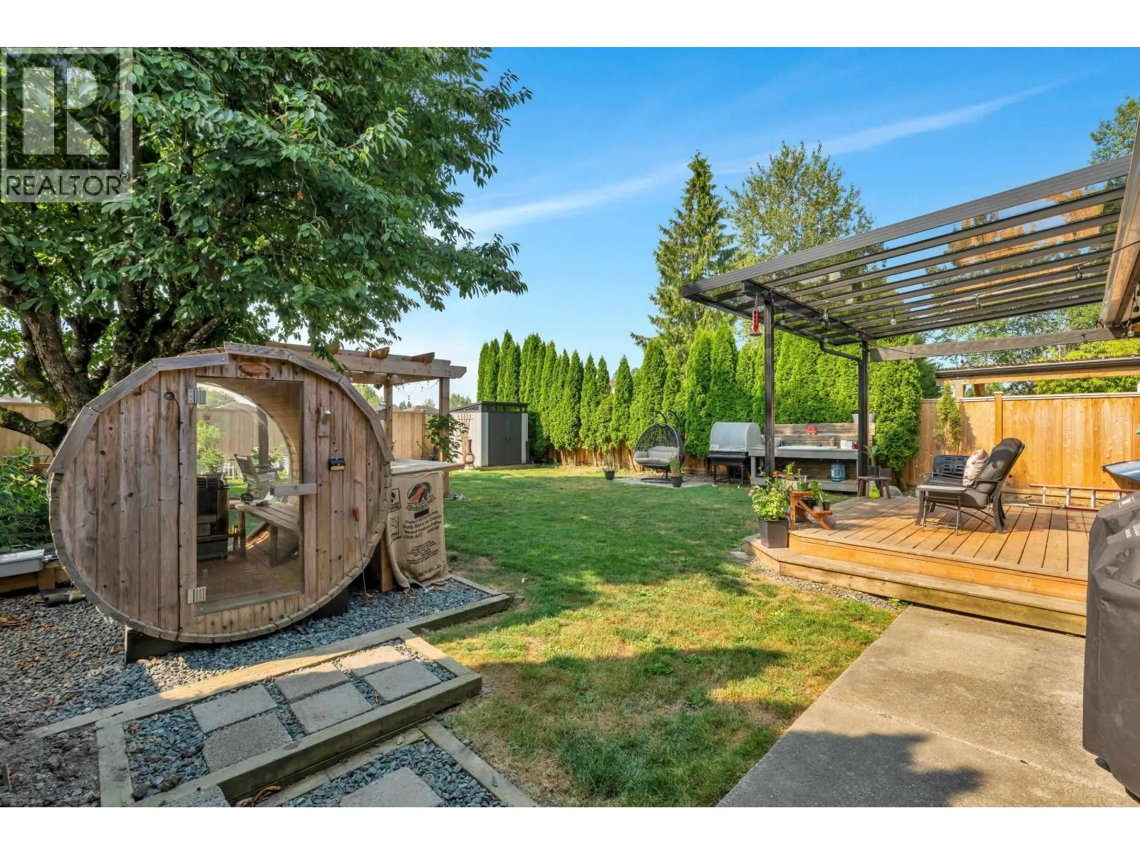 SEE VIRTUAL TOUR! Welcome to your new home in Cottonwood that features 3 beds, 2.5 baths on a nearly 7200 sqft lot! The main floor has an open concept flow that is perfect for entertaining. Large kitchen island w/seating, stainless appliances, wine cooler, plenty of storage, and French doors that lead to your backyard oasis. Enjoy a south facing yard with a covered deck, sauna, and pergola! Mud/laundry room off the garage makes a sports household very functional. Upstairs has 3 beds + rec room (4th bed?) and a full bathroom. After a long day, unwind and relax in the primary room complete with 5pc ensuite. The home is situated on a no-through road and is within walking distance to Golden Ears Elementary & transit. Very close to shopping, Golden Ears Park! Call now! (id:27476)