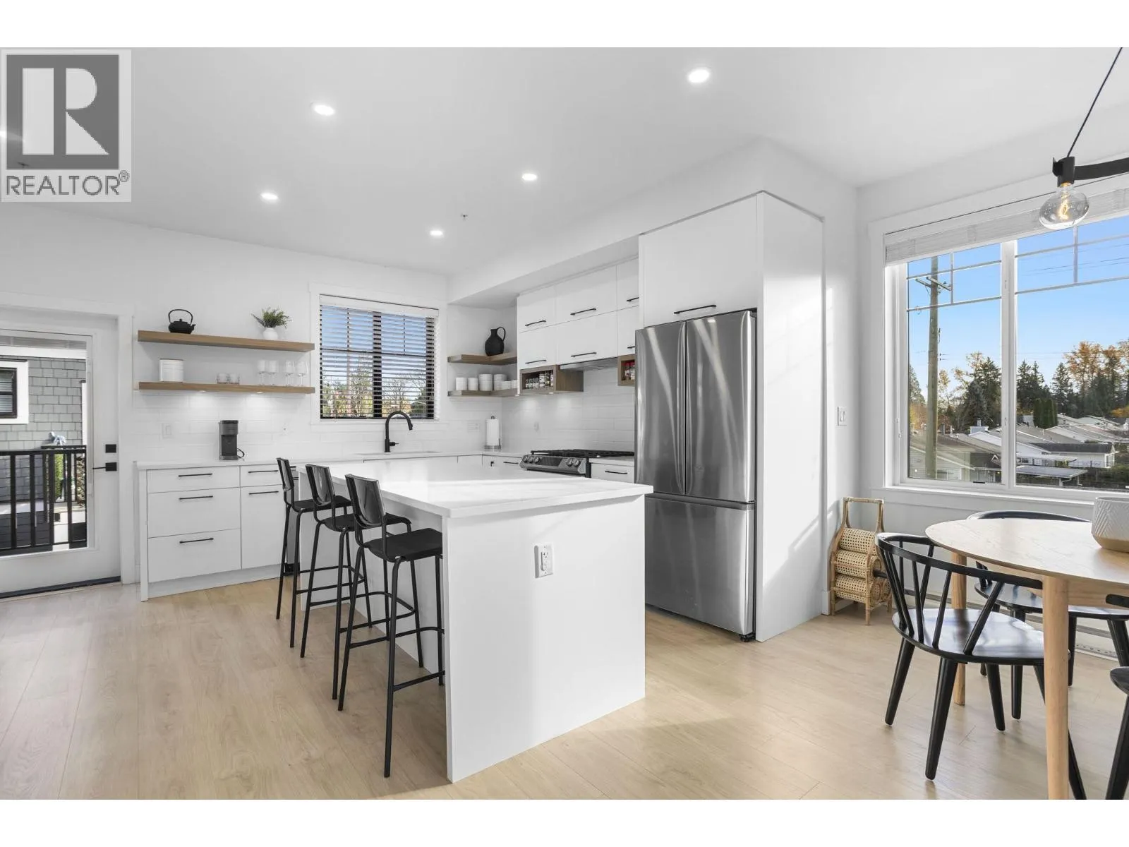 Welcome to Havenridge - a boutique collection of townhomes in the heart of Maple Ridge! This well-maintained and move-in ready 3-bedroom, 3-bathroom end unit is only three years young and offers a thoughtfully designed, highly functional floor plan with open-concept living, stylish finishes, and abundant natural light throughout. The sleek white kitchen with stainless steel appliances flows seamlessly into the dining and living areas, creating an ideal space for entertaining or enjoying family time. Step out onto the balcony off the dining area, or relax in your large fenced yard with convenient street access - perfect for kids and pets. Additional features include a welcoming foyer entry, extra windows for added brightness, and a side-by-side double garage. Close to all levels of schools including Meadowridge and also nearby proximity to parks, recreation, shopping, and transit. Ideal family home thats a place you can grow into and make your own! Complex also has a playground and tons of street parking. (id:27476)
