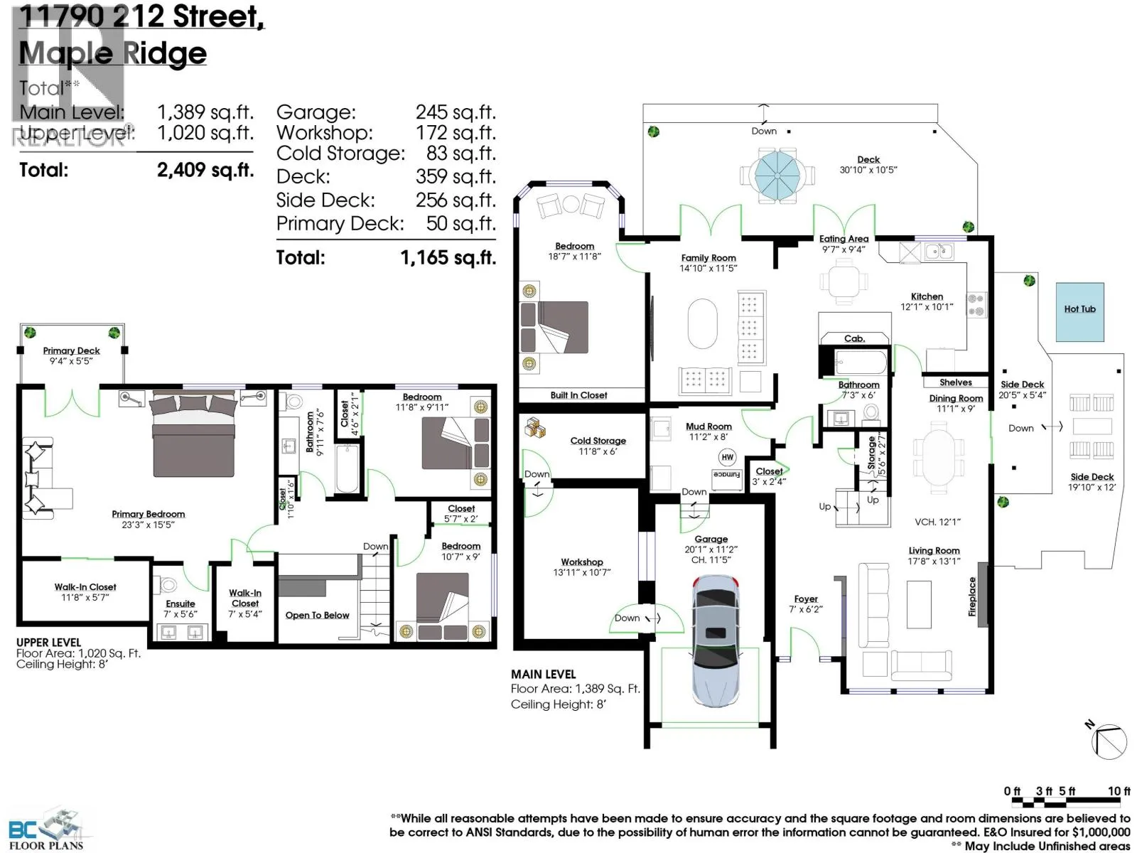 PHENOMENAL HOME on one of those RARE to find CUL-DE-SAC's! This 4 bedroom, 2.5 bathroom home has a choice of Master's with a MASSIVE one on the main floor or a MONSTEROUS one on the top floor with a walk in closet with a barn door from the GOD's and a PERFECT covered deck that completes this OASIS! Newer windows, TONS of kitchen cabinets, high end flooring in most of the house (70% concrete/30% rubber) and a GRAND, vaulted ceiling in the entrance & living room open to upstairs are just a few more things to mention! Enjoy the AMBIANCE of the side yard deck and covered hot tub area or the HUGE back partially covered deck leading to the backyard PARK LIKE setting! Did I mention it's full of MORE glass FRENCH doors leading to everything than any HOME in Maple Ridge! Lastly, a shed with power! (id:27476)