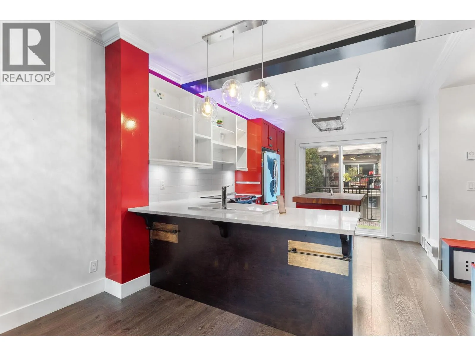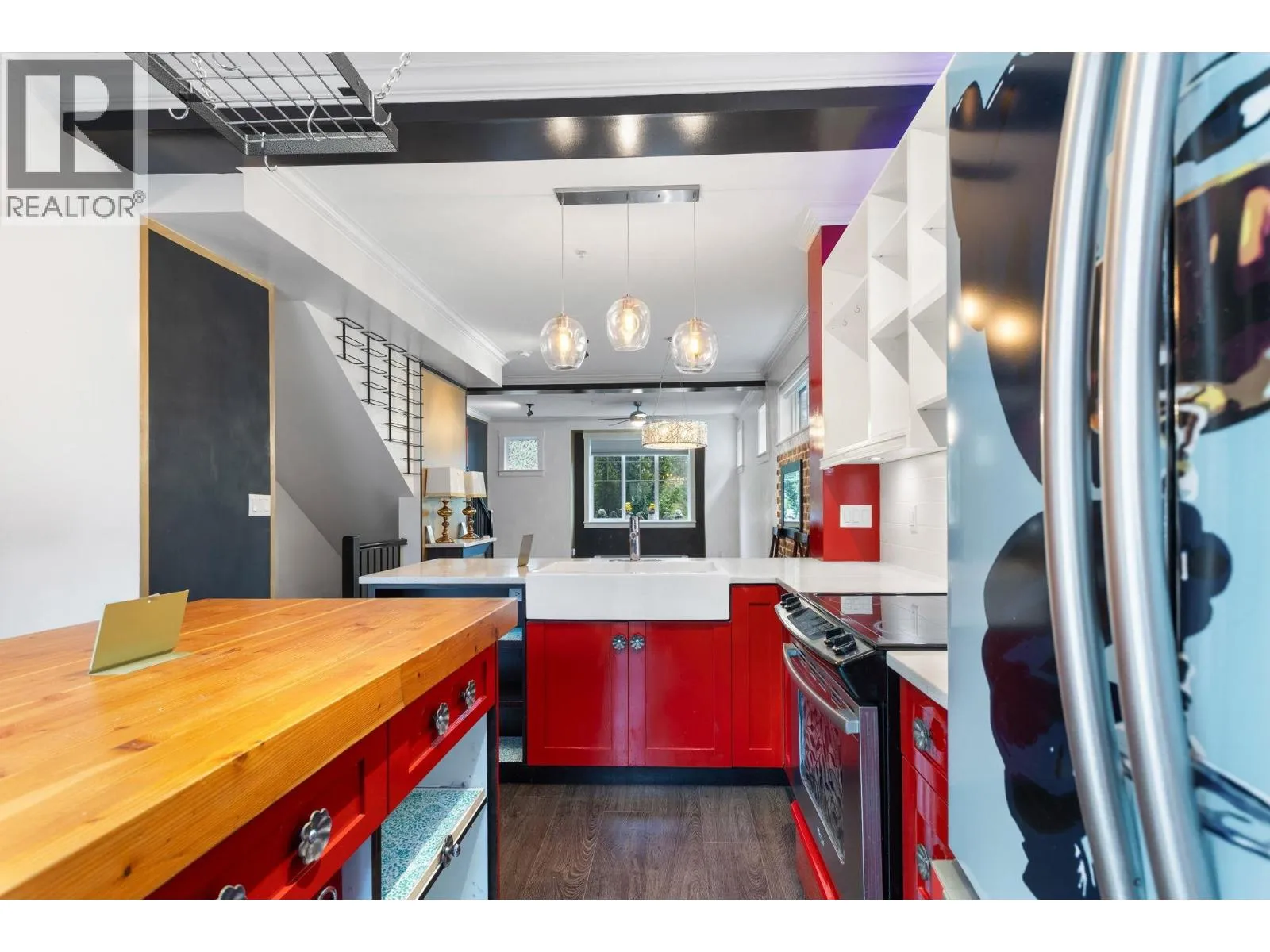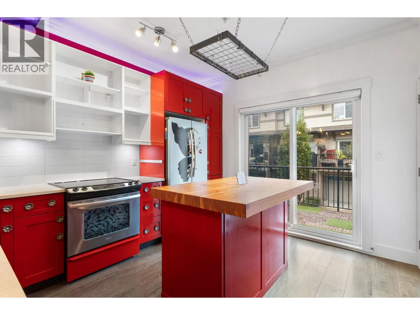 Welcome to this end unit at Albion Station, a townhome like no other in a community that truly stands out. Freshly painted and featuring upgraded finishes throughout, this home offers 9ft main floor ceilings, an artisan butcher block island, kitchen nook, custom-wrapped fridge, pull-out kitchen shelving, and a stunning feature brick wall. Enjoy a Saltillo tile entry, California Closets in the primary, heated custom tiled bathroom floors, and a Murphy bed in the guest room. The garden level presents a versatile multi-flex space, perfect for exercise, socializing, or simply relaxing with amenities like surround sound, smart TV, bar fridge, steel counters, and New Age cabinets. Step outside to curated outdoor spaces, including a private deck off the kitchen and a front garden deck, both surrounded by beautiful trees and lush gardens. Located at the front of the complex for easy access, Albion Station offers a tight-knit community where neighbours know your name and community is at the heart of it all! (id:27476)