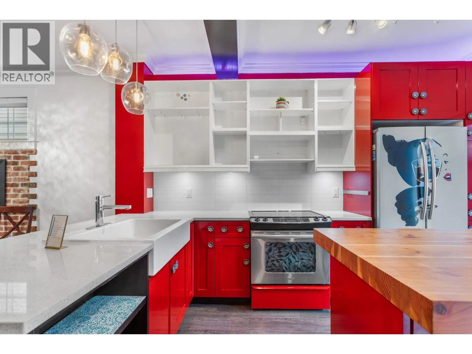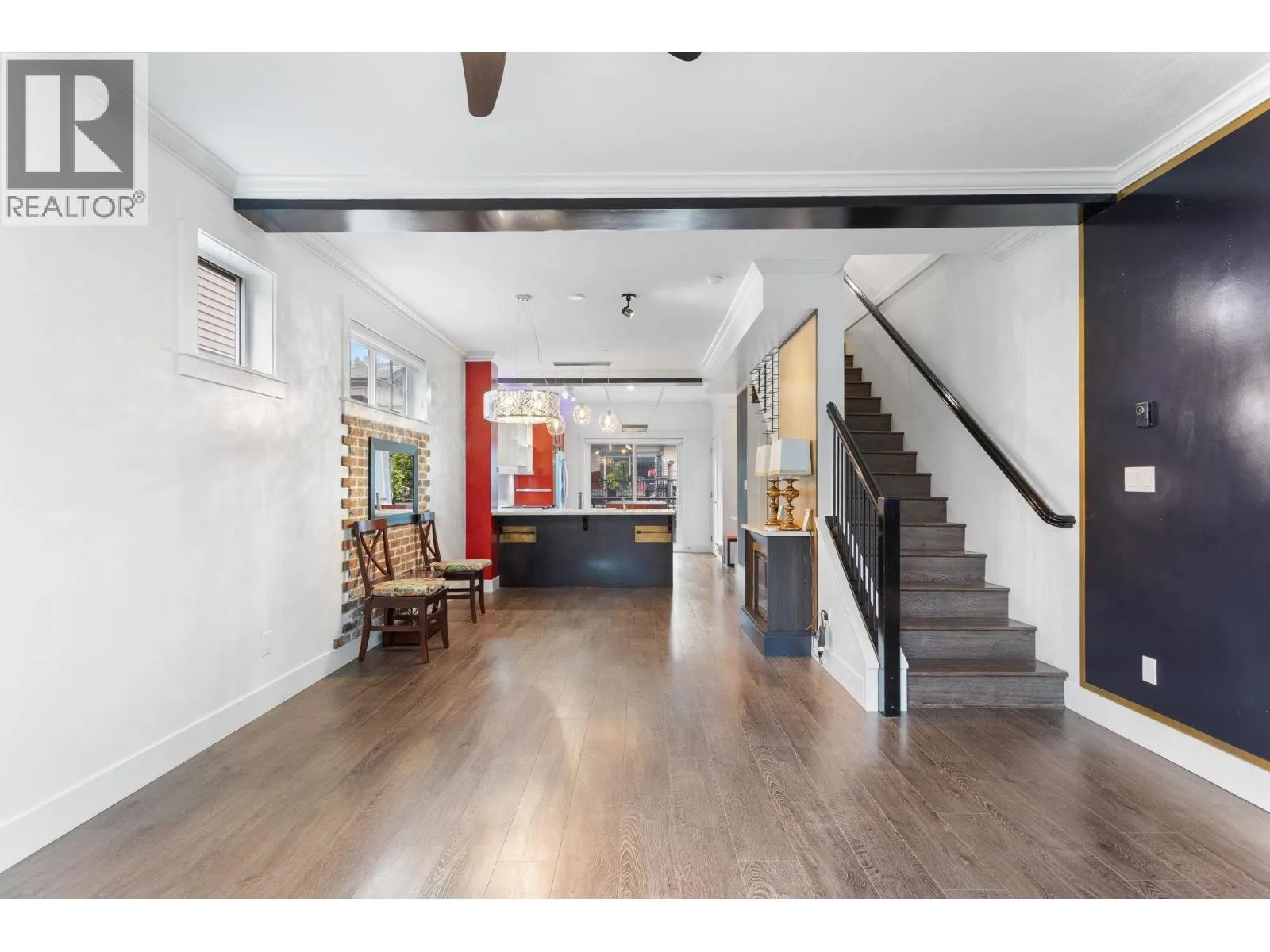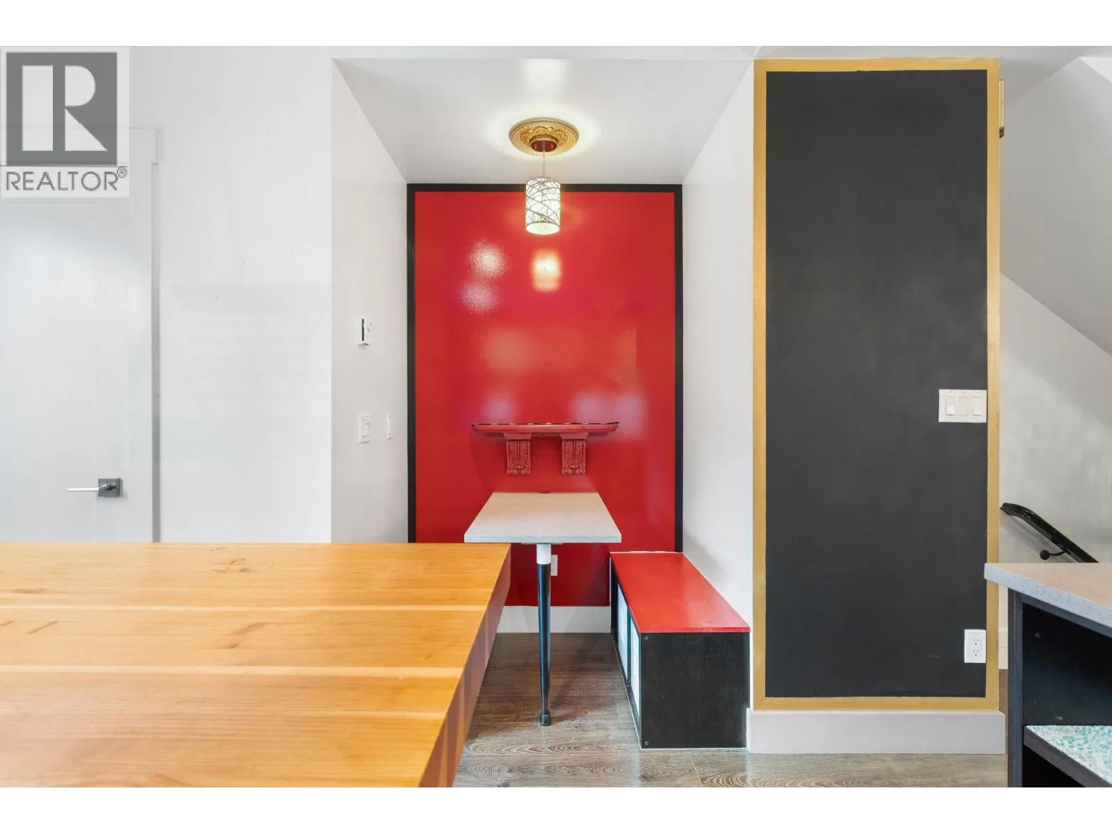 Welcome to this end unit at Albion Station, a townhome like no other in a community that truly stands out. Freshly painted and featuring upgraded finishes throughout, this home offers 9ft main floor ceilings, an artisan butcher block island, kitchen nook, custom-wrapped fridge, pull-out kitchen shelving, and a stunning feature brick wall. Enjoy a Saltillo tile entry, California Closets in the primary, heated custom tiled bathroom floors, and a Murphy bed in the guest room. The garden level presents a versatile multi-flex space, perfect for exercise, socializing, or simply relaxing with amenities like surround sound, smart TV, bar fridge, steel counters, and New Age cabinets. Step outside to curated outdoor spaces, including a private deck off the kitchen and a front garden deck, both surrounded by beautiful trees and lush gardens. Located at the front of the complex for easy access, Albion Station offers a tight-knit community where neighbours know your name and community is at the heart of it all! (id:27476)