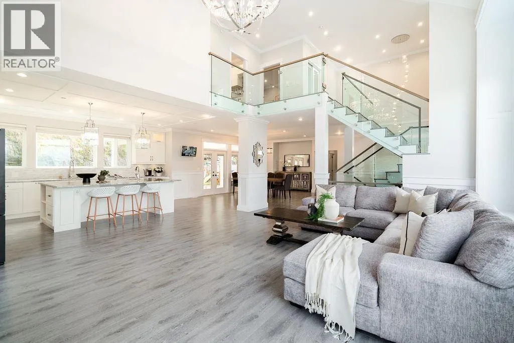 Stunning custom-built home in GRANT HILL ESTATES gives a lifestyle of elegance with 180° views, from Golden Ears to the North Shore Mountains, complete with breathtaking sunsets. Spanning 4,417sqft of upscale living on a private lot, this residence is a must see! Featuring 6 bedrooms, 5 baths, a spa-inspired primary ensuite, A/C, inground sprinklers & an oversized triple garage with double height for your RV, trailer or boat. Inside, enjoy an airy open floorplan, cathedral ceilings, expansive windows & a fully soundproofed theater. The backyard is designed for entertaining with a hot tub, two vaulted patios, outdoor TV/speakers & endless mountain views. Nearby trails, parks & sought after Meadowridge Private School. Plus 2-bed legal suite with private entrance & driveway. (id:27476)
