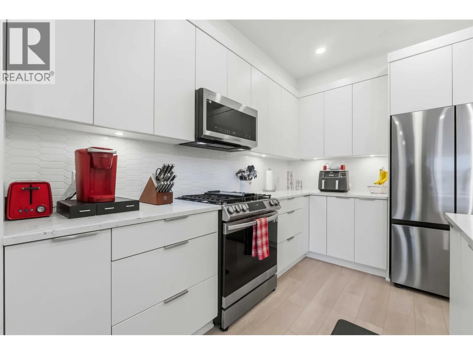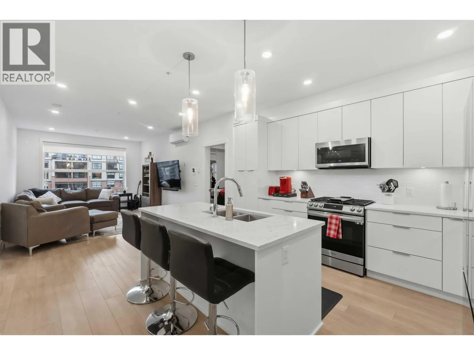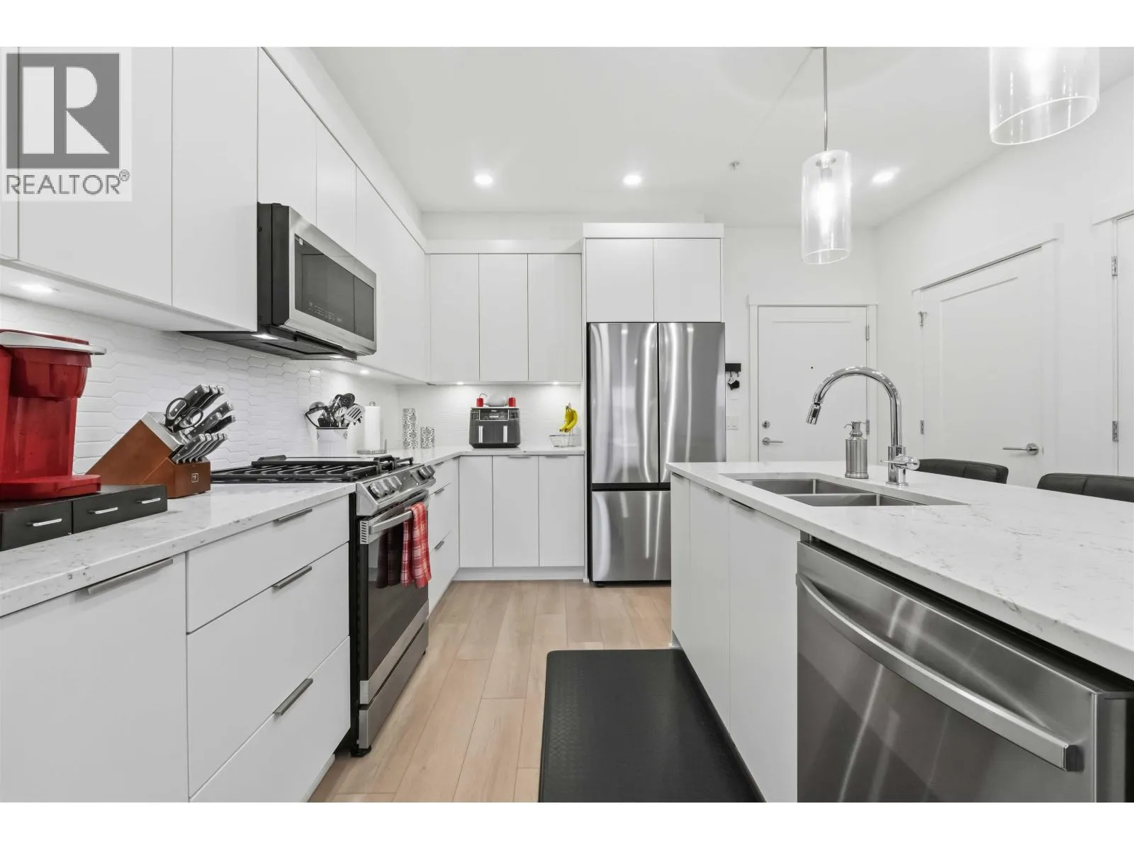 Welcome to Brickwater! This beautifully built 2 bed, 2 bath condo features an open, modern floor plan with laminate flooring, quartz countertops, stainless steel appliances, and a spacious kitchen island for extra prep and seating. The large primary bedroom offers a generous walk-in closet, while the well-sized second bedroom is perfect for guests, a home office, or hobbies. Relax on your balcony overlooking the peaceful courtyard. Located in the heart of Maple Ridge, shops, restaurants, transit, and recreation are at your doorstep. Complete with 1 parking stall and 1 storage locker. (id:27476)