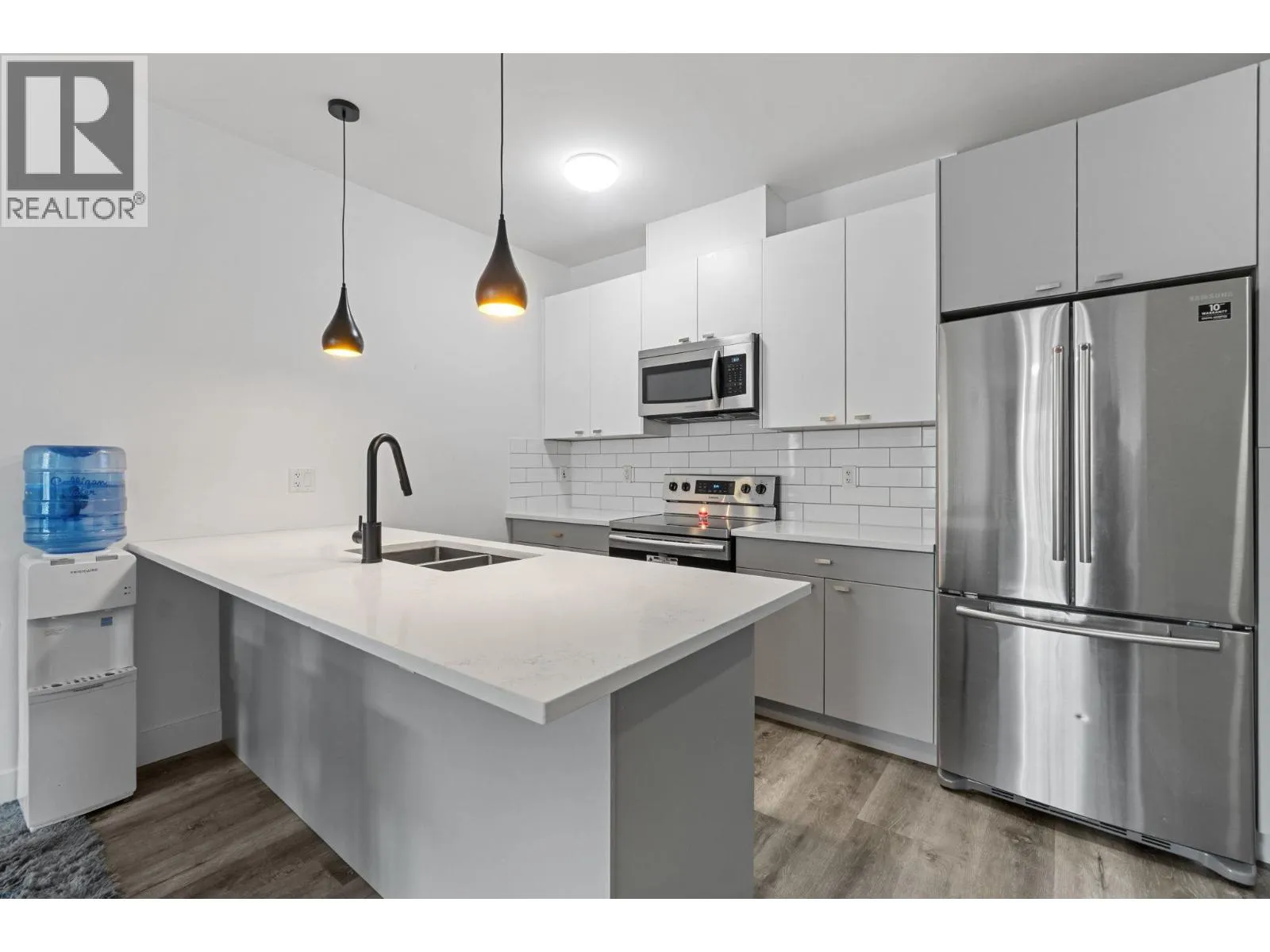 Top-floor corner unit in the heart of Maple Ridge! This move-in ready penthouse features a bright open layout, modern kitchen with quartz countertops, full-size stainless steel appliances, vinyl flooring, LED lighting, and individually controlled A/C. Enjoy 3 spacious bedrooms, high ceilings, 2 side-by-side parking stalls, and a storage locker. Steps to restaurants, groceries, parks, schools & theatres, plus quick access to Hwy BC-7 & Golden Ears Way. Rentals allowed. 1 pet welcome with no size, breed, or height restrictions. Stylish, spacious, and central, this one checks all the boxes! (id:27476)