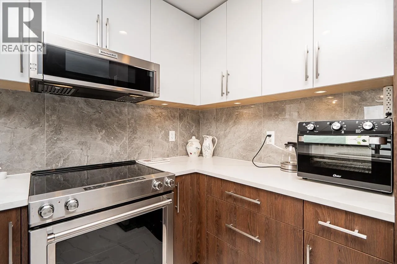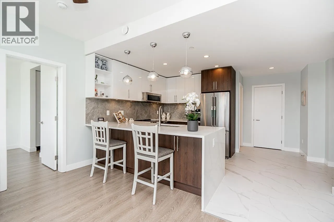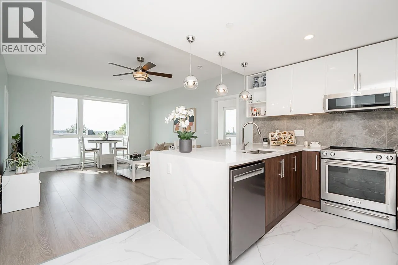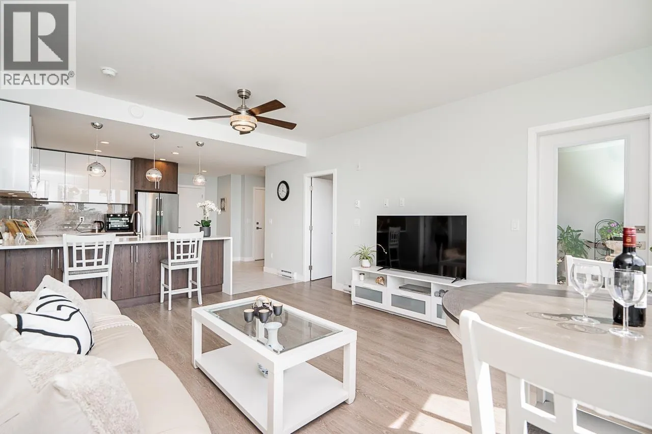 Hidden Jem! This stylish and contemporary 2-bedr + den home is in the heart of Maple Ridge. This corner unit features high ceilings and an open floorplan that blends modern design with everyday functionality. Gourmet kitchen features waterfall stone island, 2-toned cabinetry with high-gloss white uppers, and large eating bar. Spacious bedrooms, and spa-inspired bathrooms. Enjoy your own private balcony or head up to the stunning rooftop patio, complete with BBQ, fire-pit, and panoramic views - perfect for entertaining. A rare separate unit layout offers enhanced privacy, while the bright den provides a great space for a home office or reading nook. All this, just steps from shopping, dining, transit, and only 500M to Maple Ridge Leisure Centre. Open House Sat Dec 6 1-3pm (id:27476)