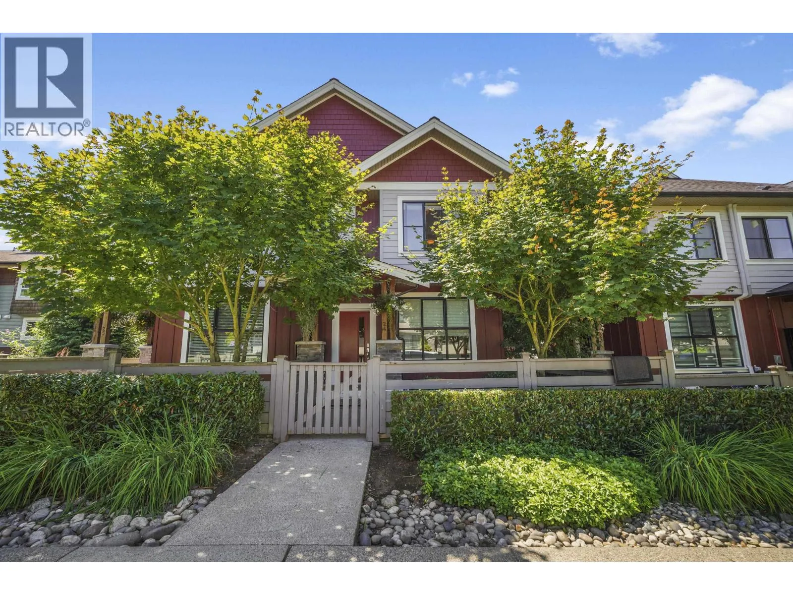 Stunning Silver Valley DUPLEX STYLE END UNIT TOWNHOME w/DOUBLE SIDE BY SIDE GARAGE + DRIVEWAY!!! Privately located on the outside of this family oriented development, this 3 bed home has open main floor w/large living area, fireplace w/stone surround, dining area w/custom storage, powder room, kitchen w/quartz counters, s/s appliances, breakfast bar + bonus office nook leading to massive sundeck, perfect for BBQs & wine nights! Main flr has fenced front yard w/access to street parking. Upper level has primary bedroom w/vaulted ceiling, walk thru closet w/custom organizers & personal ensuite. Additional bedrooms are great sized & have use of 2nd bathroom. BONUSES: BRAND NEW CARPET Bedrooms, Hallways & Stairs, balance of warranty, STEPS TO: Transit, trails, Maple Ridge Park, Alouette River! (id:27476)