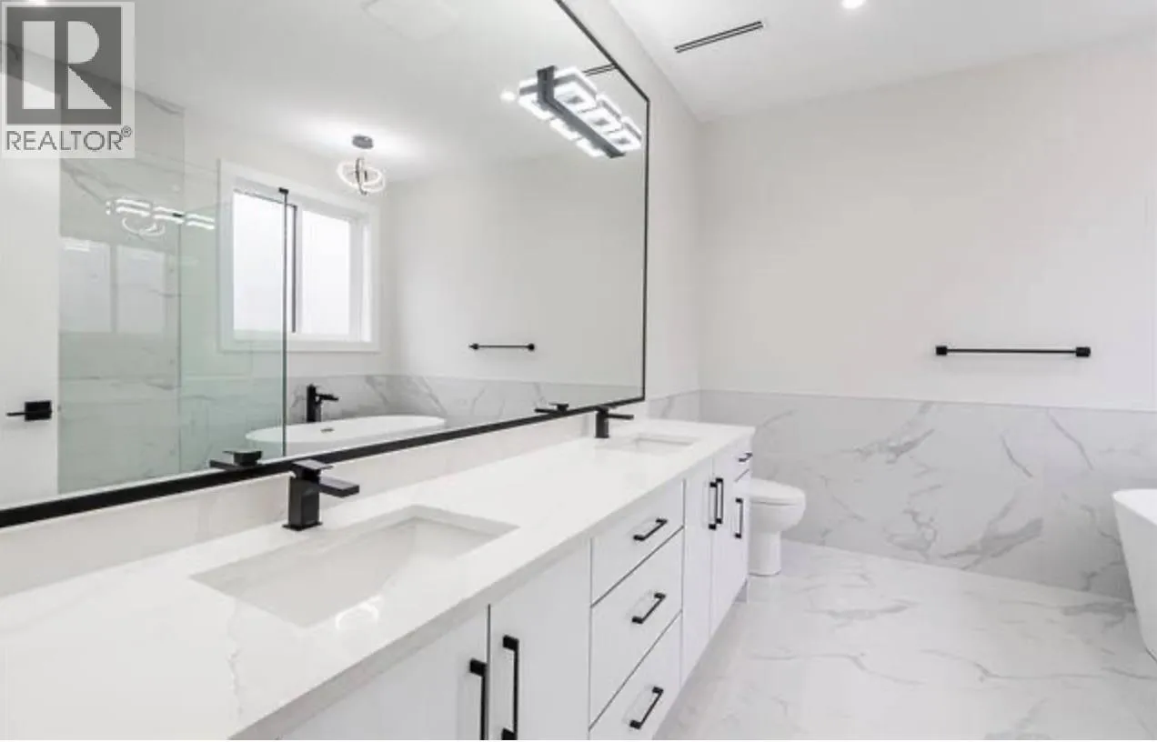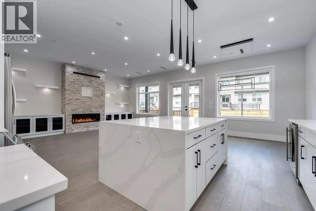 Bright, modern upper two-level home available February 1, offering approximately 2,600 sq. ft. of open living space with 10 ft ceilings. This newer Silver Valley property features engineered hardwood flooring, radiant heating, hot water on demand, and air conditioning for year-round comfort. The main level includes a spacious kitchen with a waterfall island, stainless steel appliances, wine cooler, spice kitchen, and a cozy gas fireplace, while the upper floor offers four bedrooms including a primary ensuite with double sinks. Enjoy the convenience of an EV-charger-ready double garage, two driveway parking spots, central vacuum, security system, patio, a private yard area for exclusive upper-level use, and plenty of storage. Tenant pays utilities, and pets are considered with a pet deposit (id:27476)