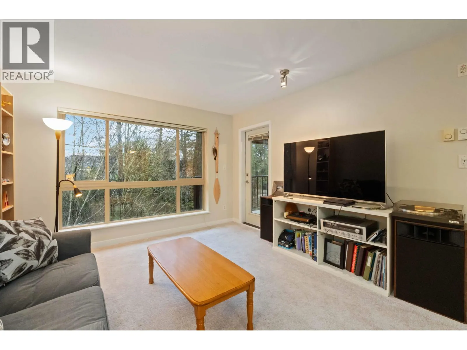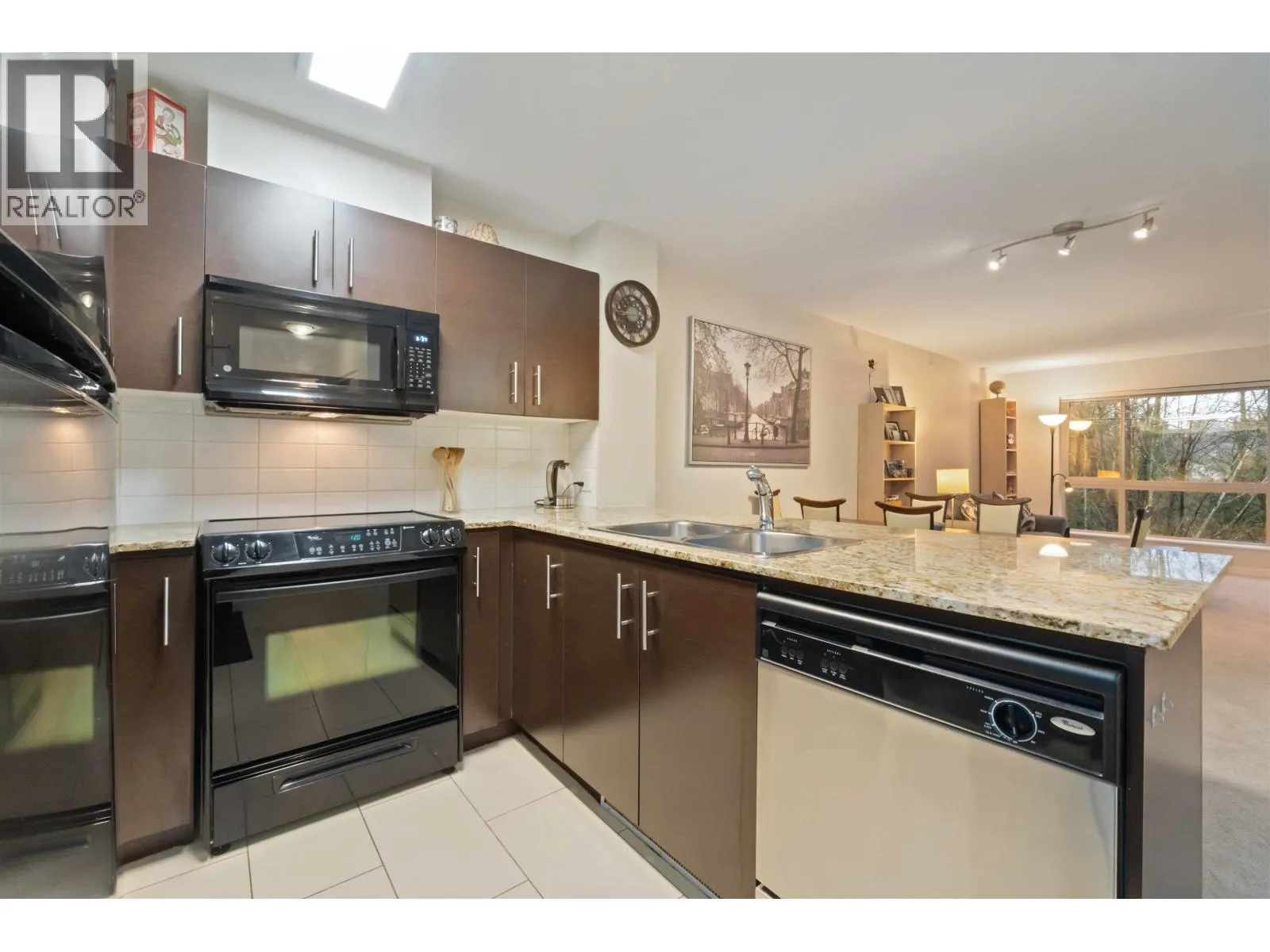 Spacious top-floor 1 bedroom plus den home featuring a well-designed open-concept floor plan and peaceful greenbelt exposure. With over 700 sqft the modern kitchen is equipped with granite countertops and stainless steel appliances, ideal for everyday living and entertaining. Large windows bring in natural light, while the generous balcony overlooks the greenbelt, offering added privacy and a tranquil outdoor retreat. Conveniently located within walking distance to town, transit, West Coast Express, and recreation amenities. Includes a storage locker and 1 parking stall for added convenience. (id:27476)