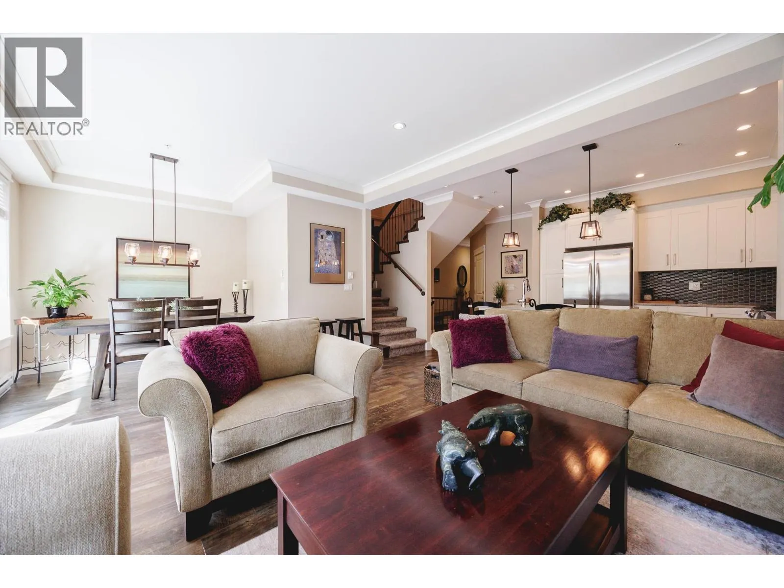 GREENBELT DREAMHOME! Step into the ultimate in privacy at "Two Birds" by award winning Walmark Homes. This over 2200 s.f. unit is loaded with thoughtful upgrades and quality finishes. Side by Side double garage, entertainers dream stone island kitchen with gleaming white cabinets and stainless appliances including gas stove. Open concept main floor with floor to ceiling and wall to wall windows taking full advantage of the permanent greenbelt. Large deck with gas hookup. Three large bedrooms upstairs including over-sized primary also enjoying greenbelt outlook, walk in closet, and opulent 5 piece en-suite. Basement offers a 4th bedroom, full bathroom and large recreation room with sliding glass doors out to large covered patio and fully fenced yard overlooking greenbelt. (id:27476)