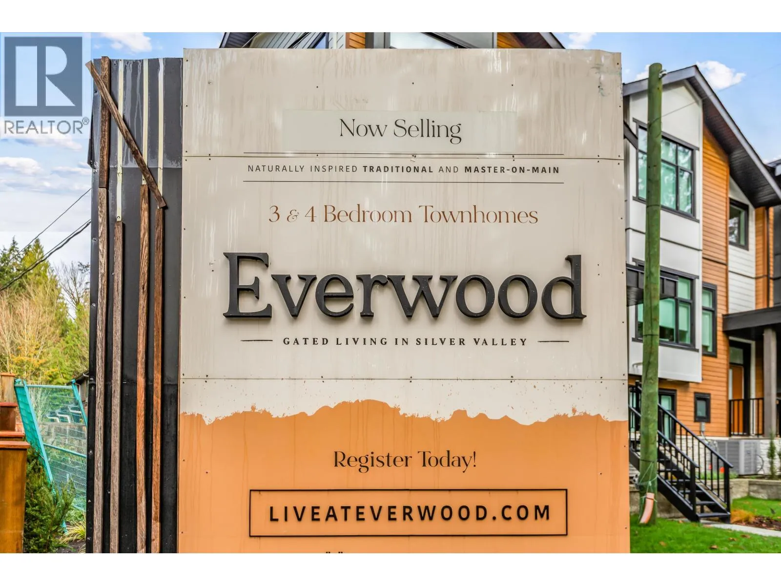Everwood by Woodlock- Silver Valley's Havan Award Winning townhome community. This END UNIT B plan is MOVE IN READY early Spring 2026. Offering a flexible layout with generous main floor, stunning kitchen with high end appliances, floor to ceiling cabinets, large island with eating bar, plus 3 spacious bedrooms up, AND additional family room. Don't miss parking for 4 large vehicles, oversize spacious side by side garage, generous driveway, roughed in for EV charger & gas BBQ , plus economical hot water on demand and high efficiency forced air furnace roughed in for AC. Enjoy all Silver Valley has to offer, from hiking trails, to easy access to Golden Ears & Maple Ridge parks, plus nearby Golden Ears Way boasting just 4 traffic lights to Langley . Pictures are of actual home DRONE VIDEO & VIRTUAL TOUR ATTACHED! (id:27476)