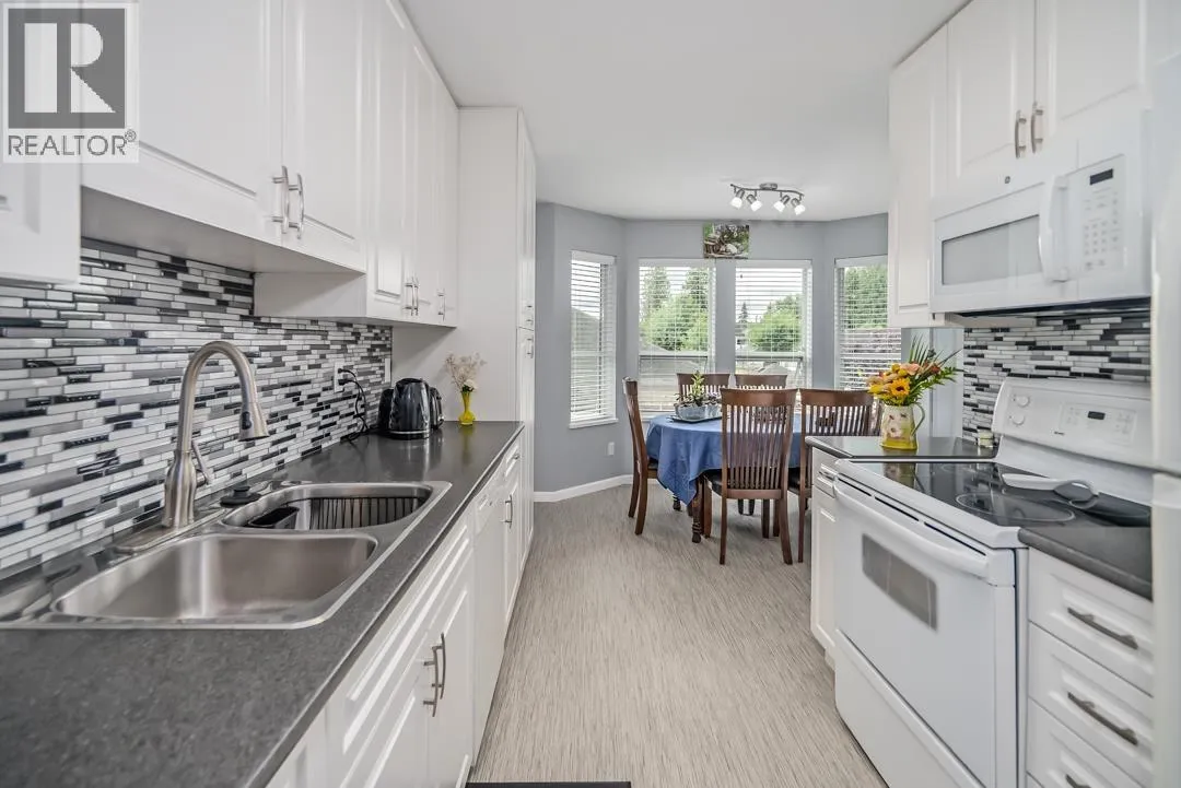 DOWNSIZE WITHOUT COMPRISE! COMFORT, PRIVACY & SECURITY. RARE UPPER CORNER 2 BDRM/2 BATH SUITE. Windows galore offer an ABUNDANCE OF LIGHT, with N, S & W exposures, VIEW OF THE TREETOPS NOT THE PARKING LOT! Two secure balconies - no ground access, peak-a-boo mountain view & your own PRIVATE SEPARATE ENTRY. Updated kitchen, appliances, flooring. Ample storage with large walk-in pantry & separate laundry/storage room. ALL NEW PIPES! Age restricted ONLY 1 person need be 55+. One covered parking spot, extra parking/locker available. Clubhouse & workshop. Convenient central location. Walk to shops, restaurants & public transportation. Close to Golden Ears Bridge. View it TODAY & experience the feeling of being home. This downsizing opportunity is seldom available! (id:27476)