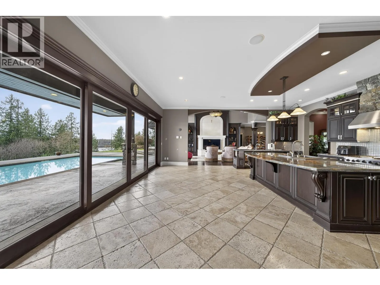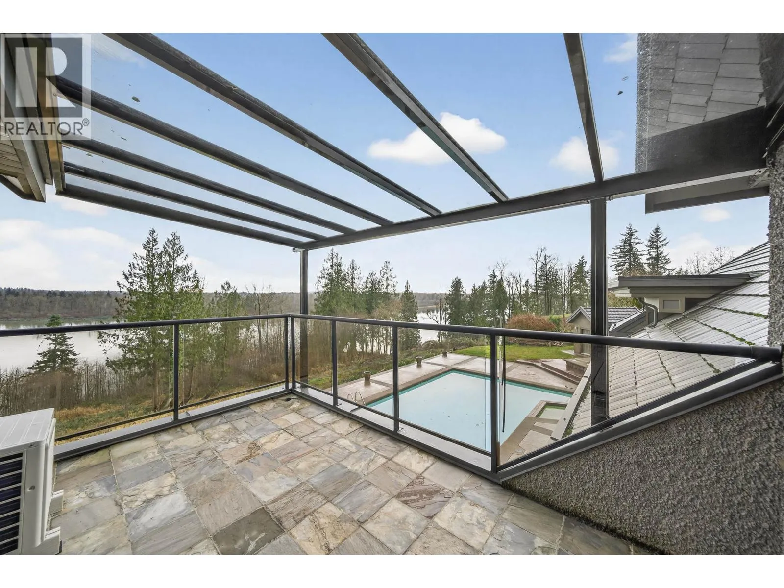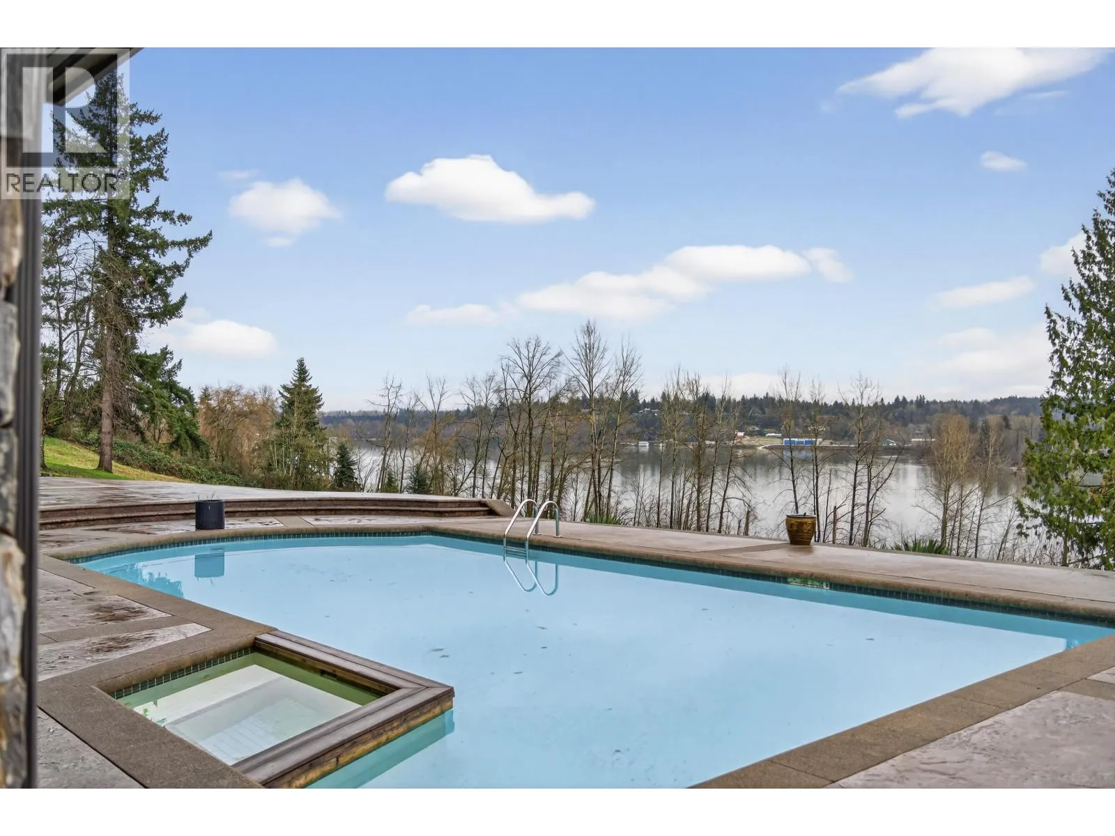 WATERFRONT PROPERTY - Set on approximately 2.5 acres with panoramic views of the Fraser River and surrounding mountains, this French-inspired estate offers over 7,300 sq.ft. of refined living. The home features four bedrooms, a den, and six bathrooms. Main living areas flow into a gourmet kitchen and butler's pantry with Spanish tile flooring, Italian blue marble countertops, a Viking professional six-burner gas cooktop with dual ovens, Sub-Zero refrigerator, and Miele dishwasher and coffee system. The main-floor primary suite offers walk-out access to the pool and hot tub, a walk-in closet, and spa-inspired ensuite. A triple garage with high ceilings includes a suite. Manicured grounds feature a terrace, pool, outdoor kitchen, covered lounge - ideal for entertaining. (id:27476)