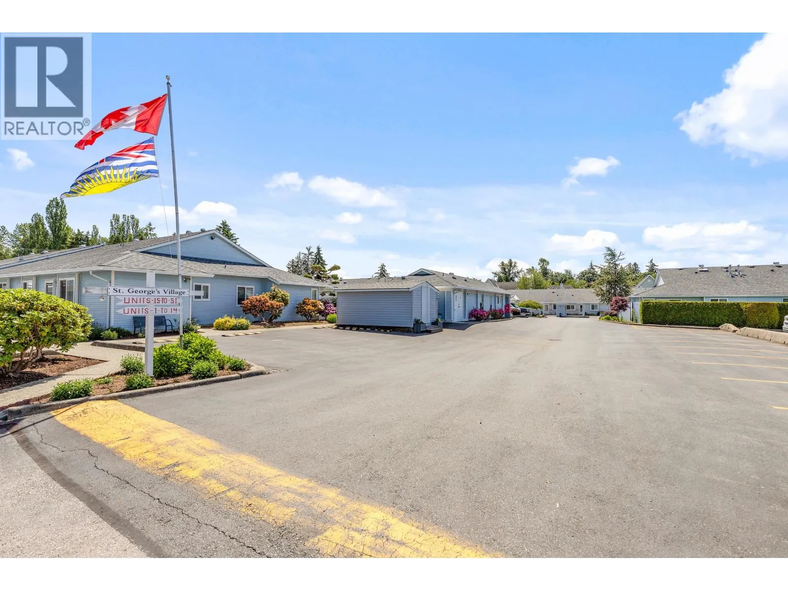 Now available in the popular ADULT55+ 'St. George's Village' complex. Lovely well maintained 1062 sq.ft, 2 bed, 2 bath townhome. Located at the back of the complex, south facing yard & covered patio, AIR CONDITIONING, gas fireplace, vaulted ceilings, beautiful hardwood floors, skylights, raised oak kitchen cabinets, B/I vac system, 3pc. main bath with walk-in shower, 2pc. ensuite in primary bedroom. 2 parking spots. Storage shed. Great sense of community and good neighbours in the complex. Only 4 blocks to shopping & short walk to bus stop. (id:27476)