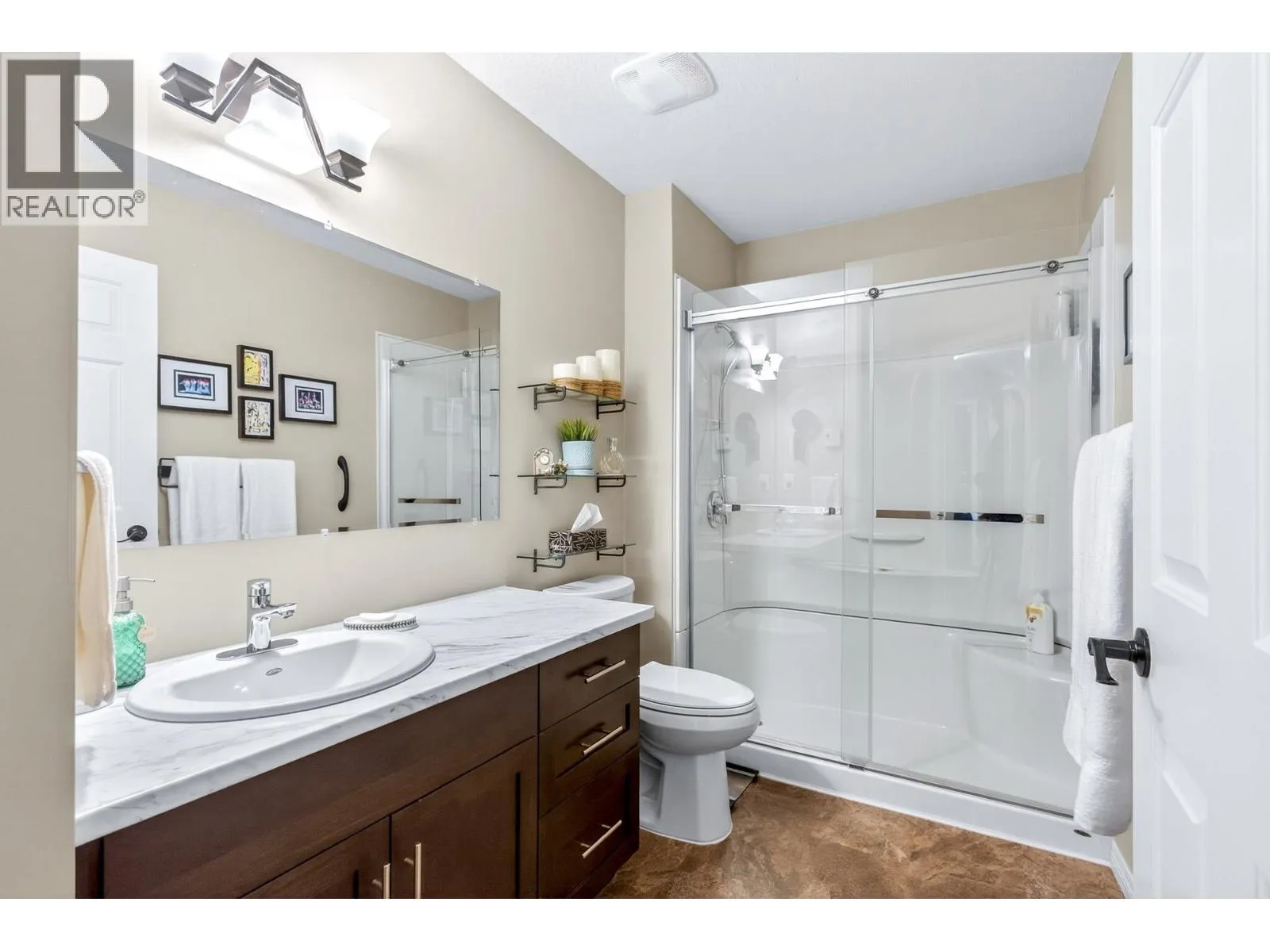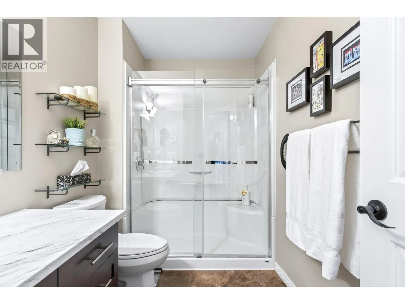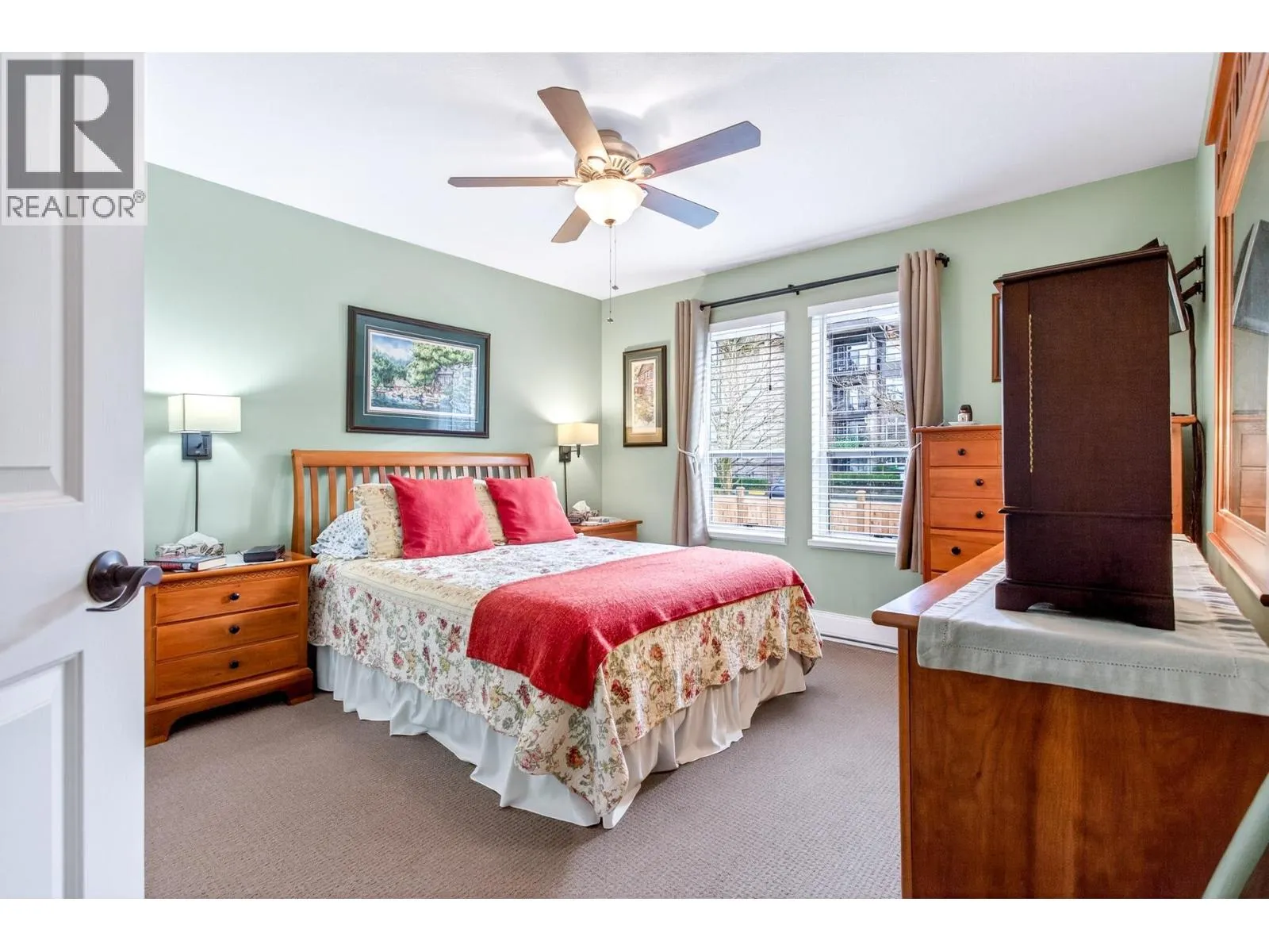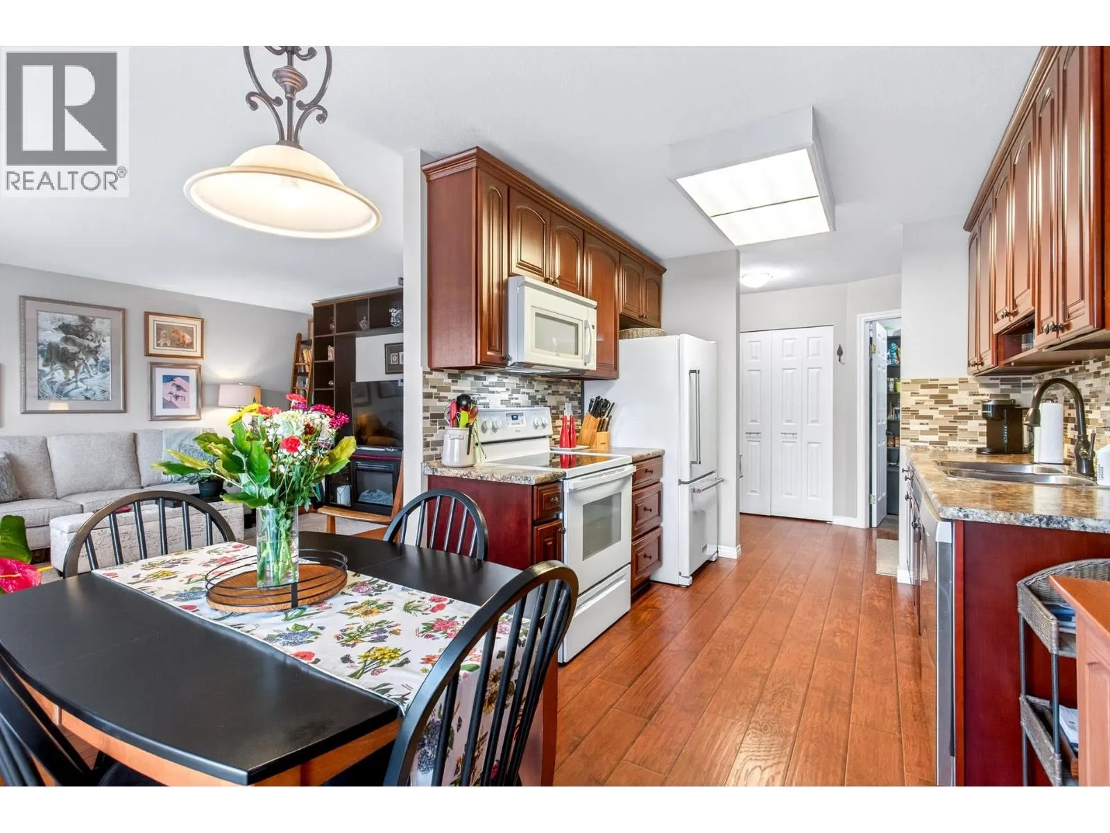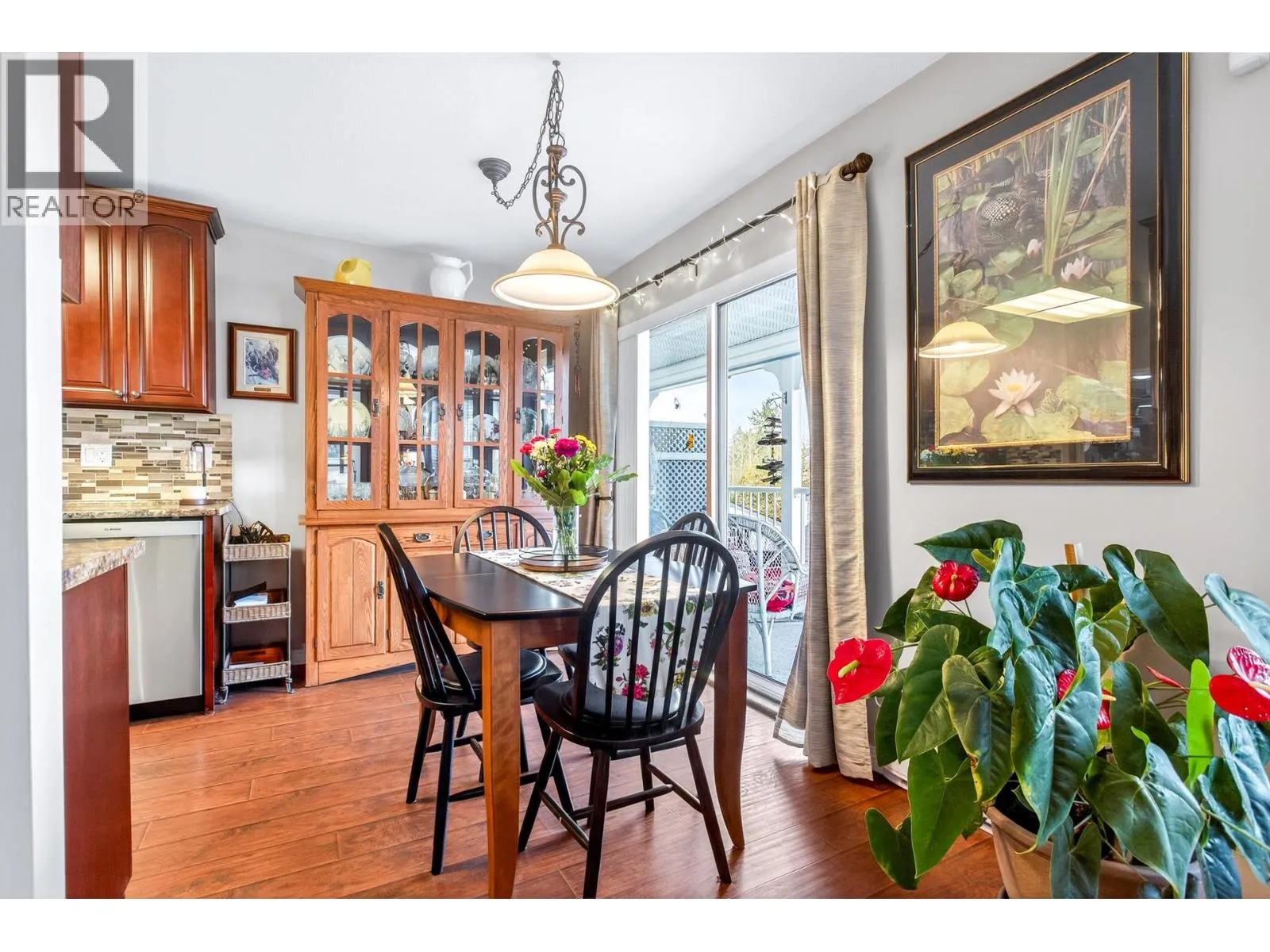 Charming north-facing two-bedroom upper unit with stunning mountain views. This well-maintained home features a fully updated bathroom with a spacious walk-in shower, along with updated flooring and appliances throughout the years. The functional layout offers excellent separation between bedrooms and living space, ideal for privacy and comfort. Includes a generous sized primary bedroom and second bedroom with its own private south-facing balcony. A well-appointed galley kitchen with adjoining eating area opens to a fully covered patio. YES, 2 covered balconies-one for the views and one for the sun! Includes a massive storage room/pantry, new hot water tank, 1 parking stall, RV parking options, and a well-managed strata with a 12-year-old roof and healthy CRF! A pleasure to View! (id:27476)