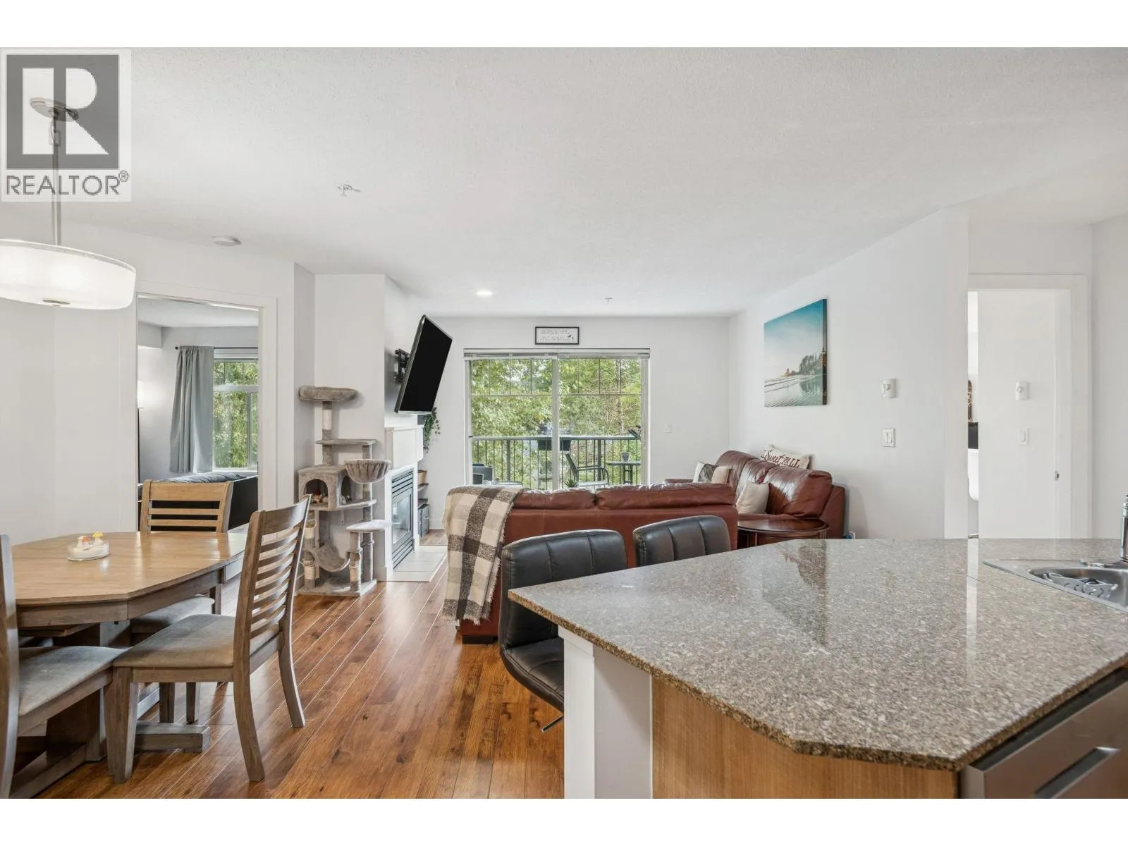 PRIME LOCATION at Westbrooke! Enjoy refined living in this beautifully maintained, highly sought-after community. This elegant 2 bed, 2 bath home offers a bright open layout with quality laminate flooring, granite countertops, and a cozy gas fireplace in the spacious primary bedroom, complete with his & hers walk-through closets. Relax on the large covered patio overlooking the tranquil McKinney Creek greenbelt. Pet-friendly building with rentable guest suite. Gas and hot water included. Steps to restaurants, grocery stores, Meadow Ridge Shopping Centre, and more! (id:27476)
