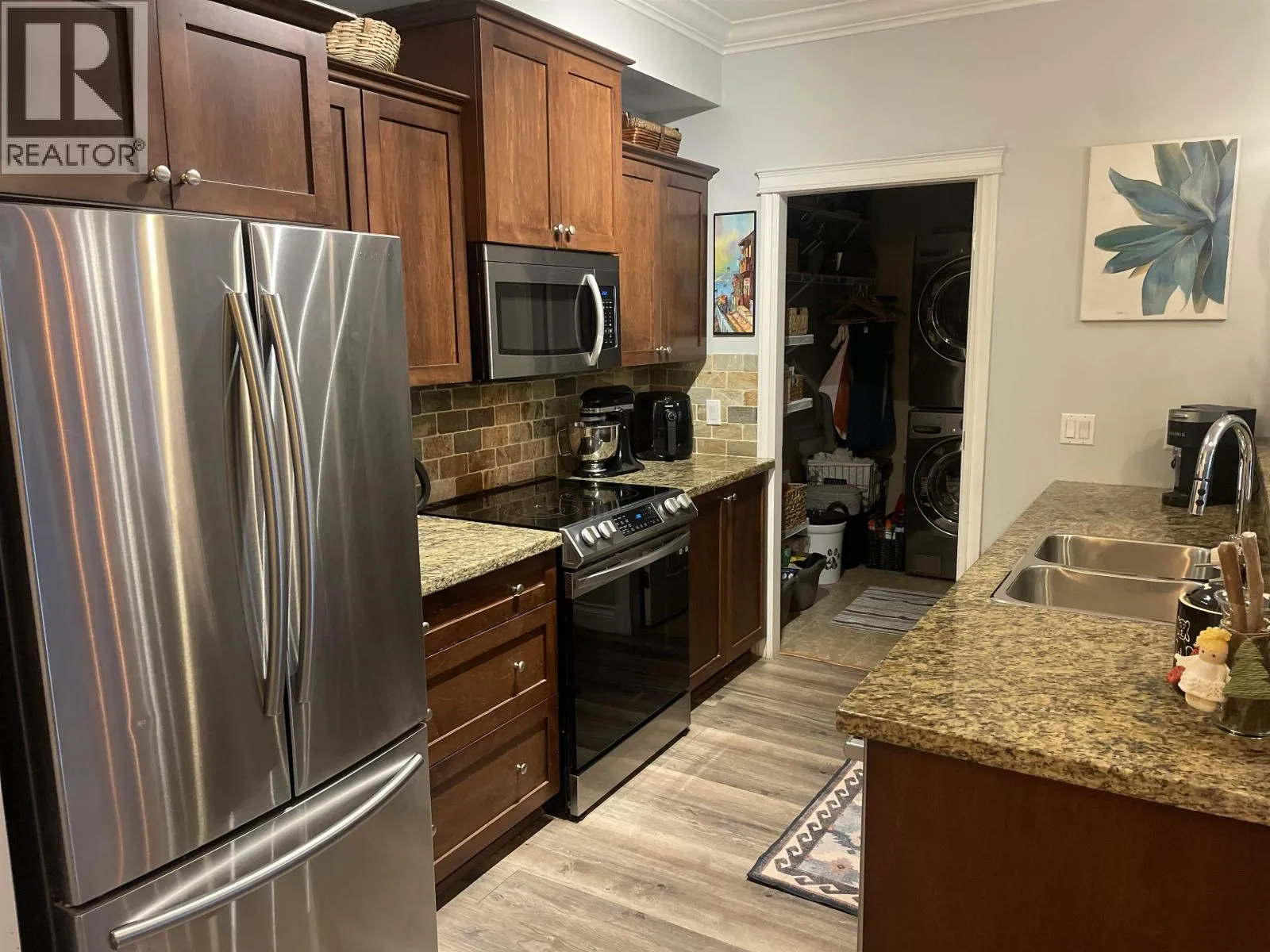 "JACKPOT" Beautiful ground floor unit at Stone Gate. One of Maple Ridge's premier buildings. 2 bedroom plus Large Den. Over 1100 sq ft. On the quiet side of the building facing south with walk out access to the trails. Perfect for pets. Lots of natural light & peaceful. Great room, open floorplan. Nice dark cabinetry & granite counters. Fireplace in the great room. Brand new Fridge & Stove. Primary bedroom is large with 4 pce ensuite. Designer colors Thru out. Large den is big enough for a guestroom. Nice sunny outdoor covered patio. Good amenities & transit nearby. 1 block to the Maple Ridge seniors Centre. "ONE LOOK, YOU'LL LOVE IT" (id:27476)