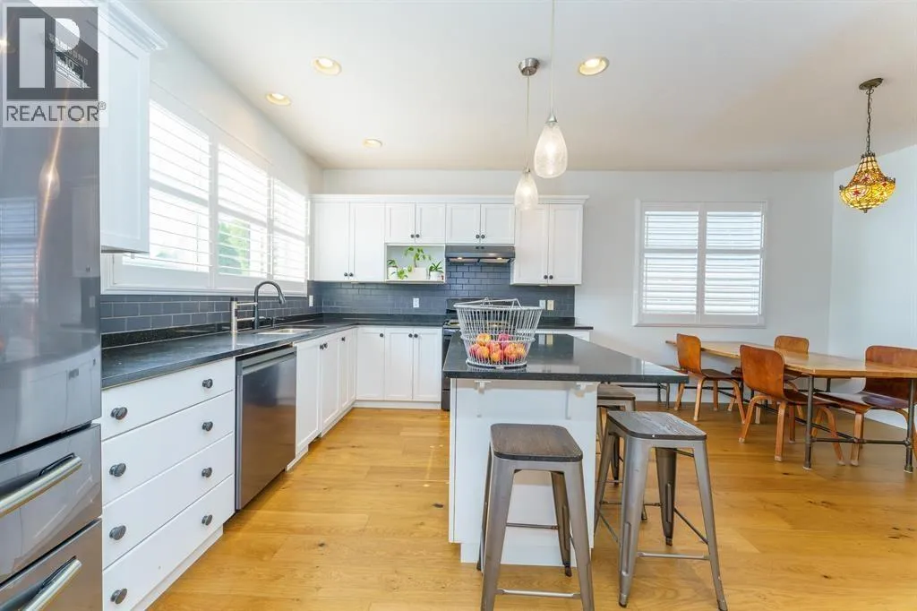 Only 12 homes on this secluded greenbelt street! Forest view from front veranda and primary bedroom. Ample parking and sun, walking distance to schools, rec centre, and shops. So many upgrades in this spacious open plan - new wide plank wood floors, all new paint in and out, new roof and furnace, fabulous '5-star hotel´ bathroom reno, gas stove and fireplace, new dishwasher, custom window shutters throughout. Three spacious bedrooms up, 4 bathrooms, plus finished basement with separate entrance, kitchen roughed in for easy suite. Back alley access for additional parking, outbuildings, or a garage. Super clean, nothing to do but move in! (id:27476)