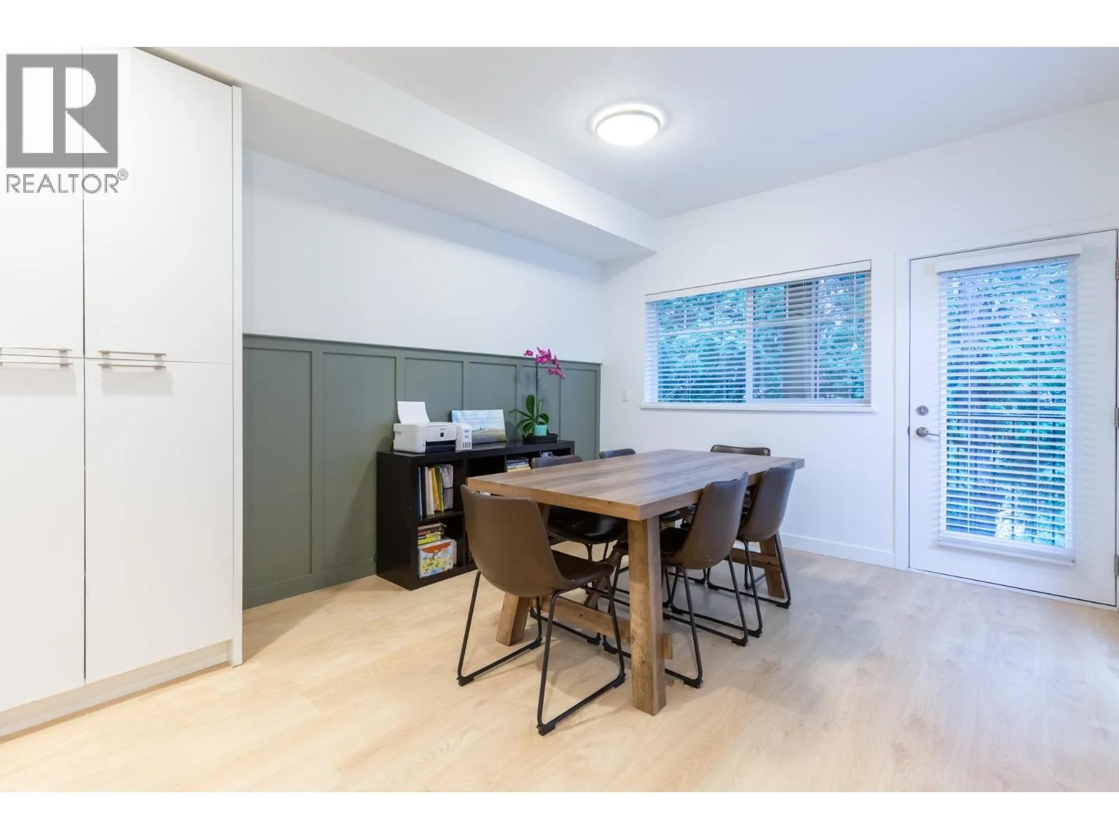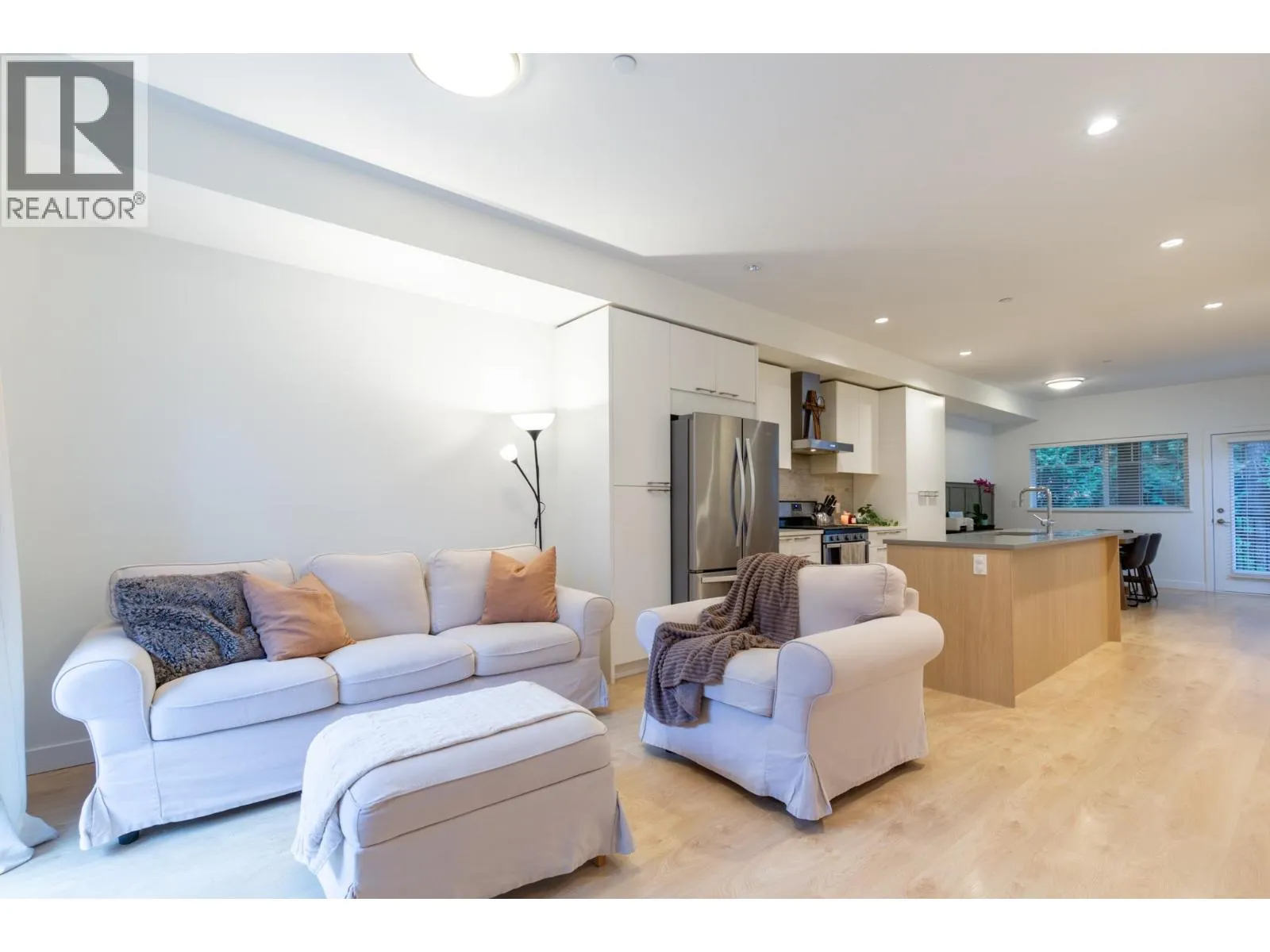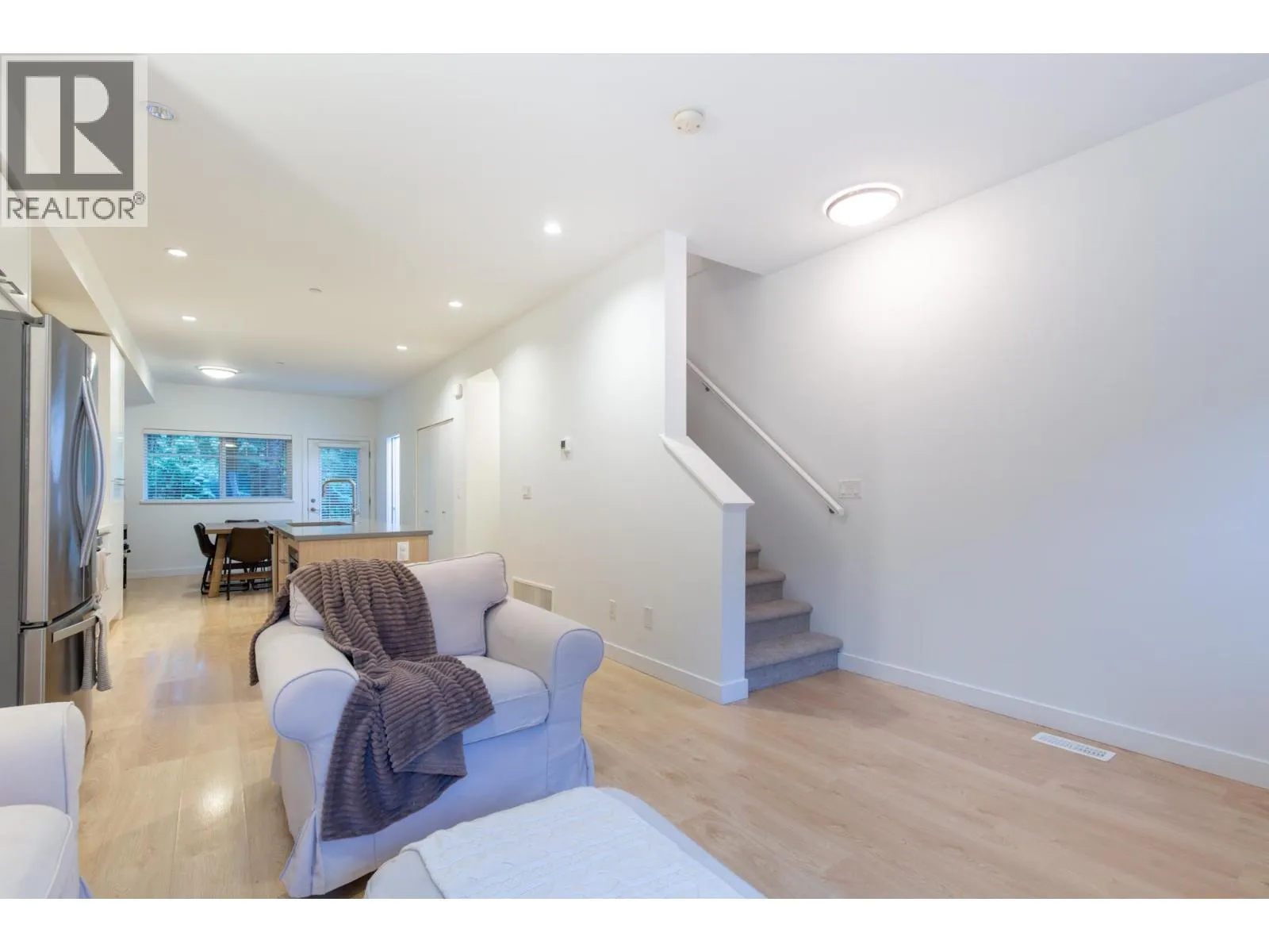 Welcome to Ruxton Village! This beautifully refreshed 3-bedroom, 3-bathroom townhouse features new paint throughout as well as brand-new carpeting, offering a crisp, move-in-ready feel. The bright, open-concept main floor is ideal for both everyday living & entertaining, with a spacious living room, dining, convenient powder room, & in-suite laundry. The entertainer´s kitchen is thoughtfully designed with modern cabinetry, quartz countertops, stainless steel appliances, and a 5-burner gas stove, while oversized windows flood the space with natural light. Upstairs, the generous primary bedroom boasts its own private balcony, walk-in closet, & 3-piece ensuite, complemented by two additional well-sized bedrooms.The lower level offers a double tandem garage with ample storage, including additional space under the stairs. Located in a highly central and sought-after community, just steps to the West Coast Express & minutes to schools, daycare, & everyday amenities. Two-car parking included." (id:27476)