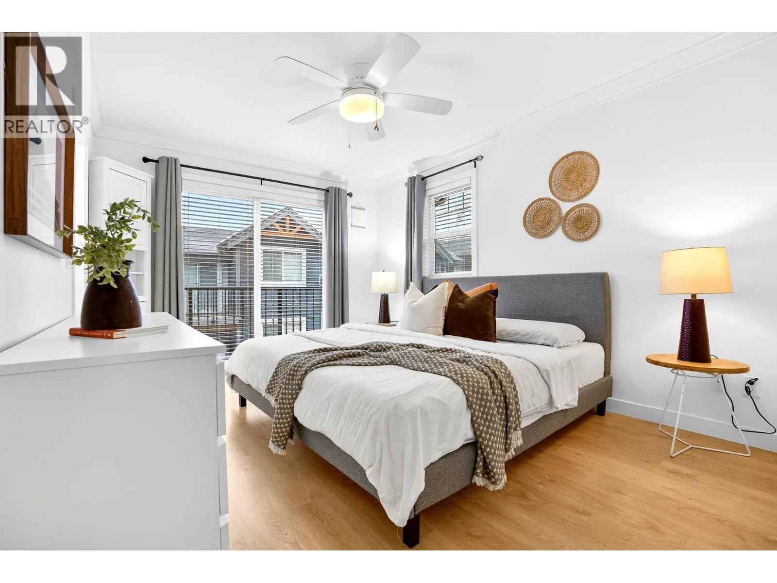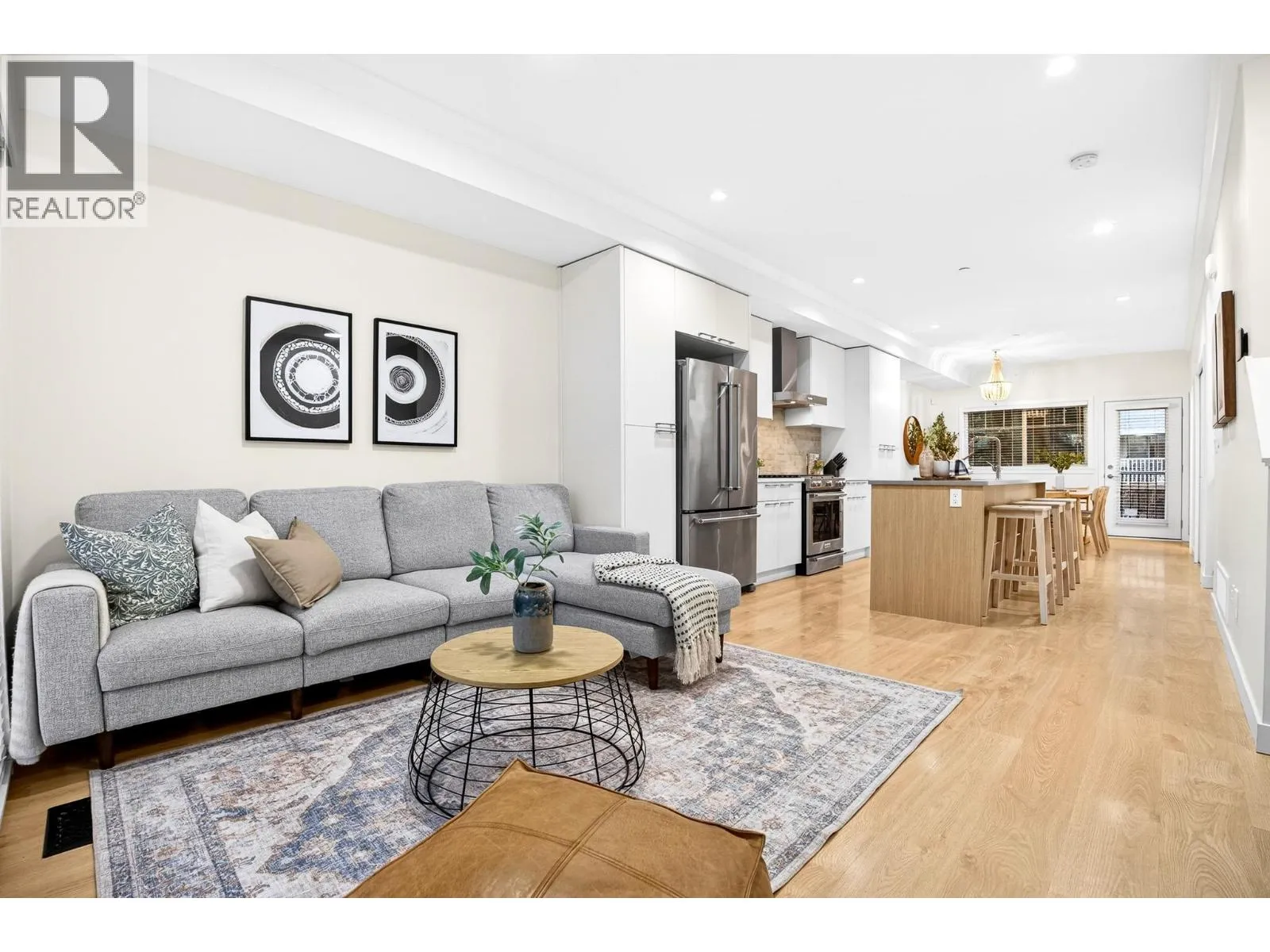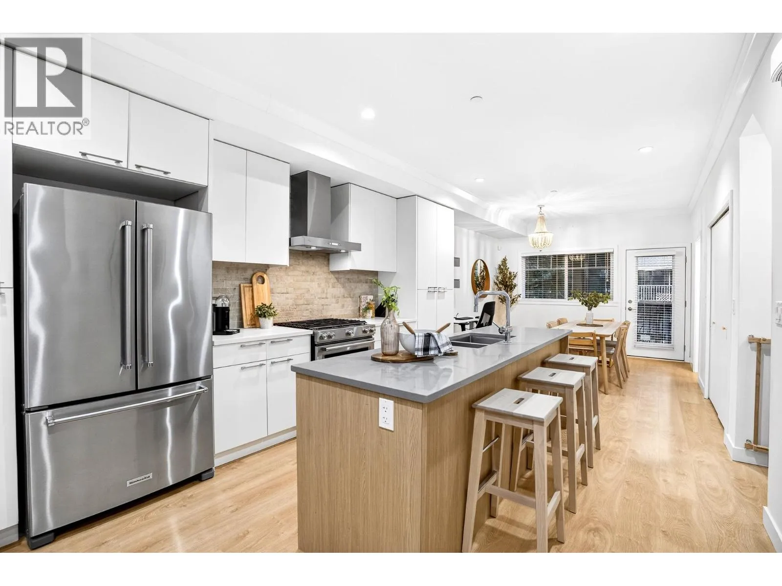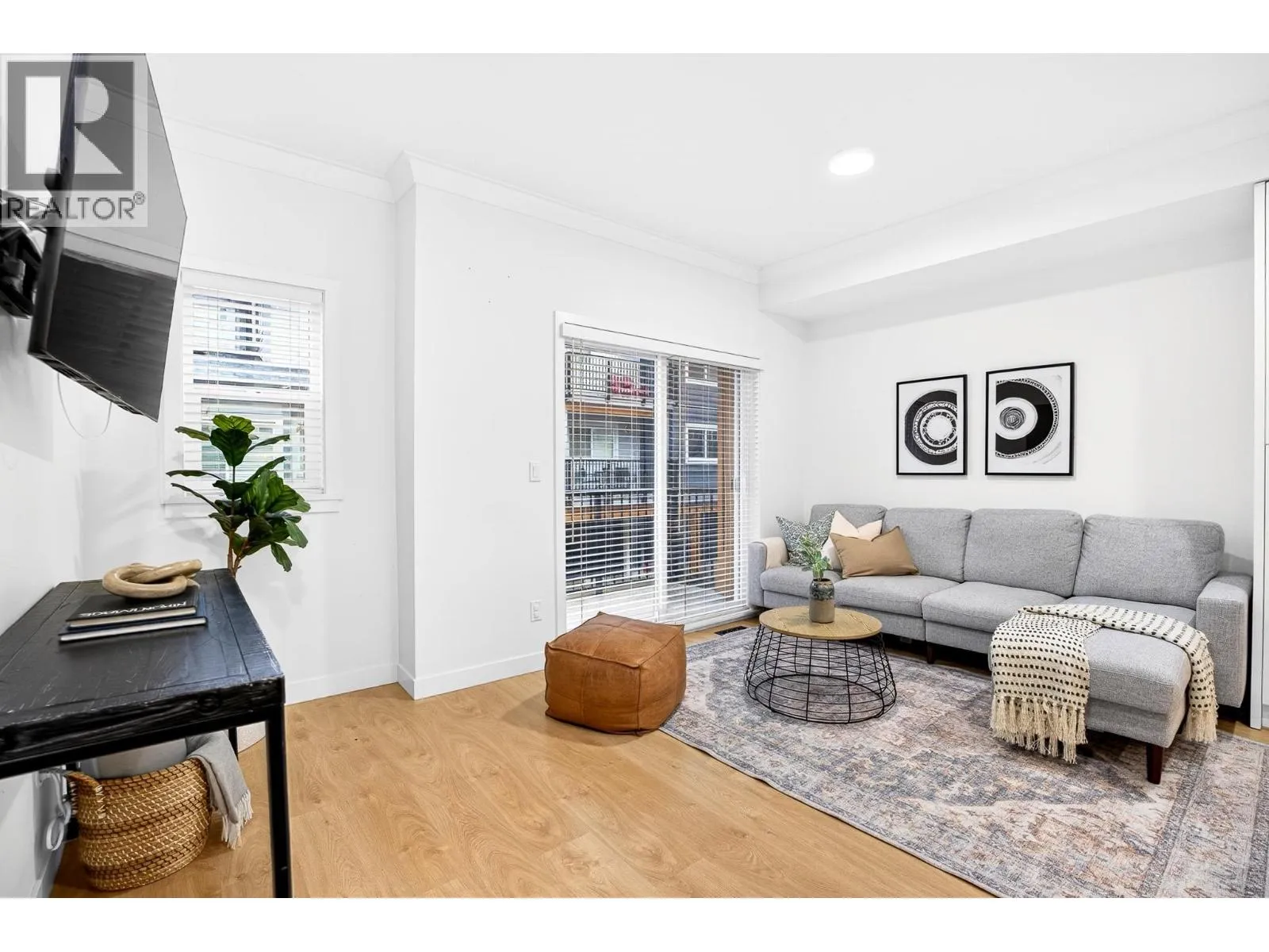 This immaculate 3-storey corner townhouse in Ruxton Village is where comfort, style, and location come together effortlessly. Sunlight fills the open-concept main floor with 9' ceilings, crown moulding, and oak wide-plank laminate flooring, while air conditioning keeps the home comfortable year-round. The kitchen feat. quartz counters, soft-close cabinetry, upgraded Kitchen Aid S/S appliances, & a 5-burner gas stove, flowing seamlessly to a deck with gas hookup for weekend BBQs. Upstairs offers 3 bdrms & 2 baths, including a primary bdrm with it's own private balcony. A 2-car tandem garage with ample storage, a second deck, and a private fenced turf backyard. Minutes from downtown, shopping, dining, and recreation. Perfect for 1st time buyers & young families. (id:27476)