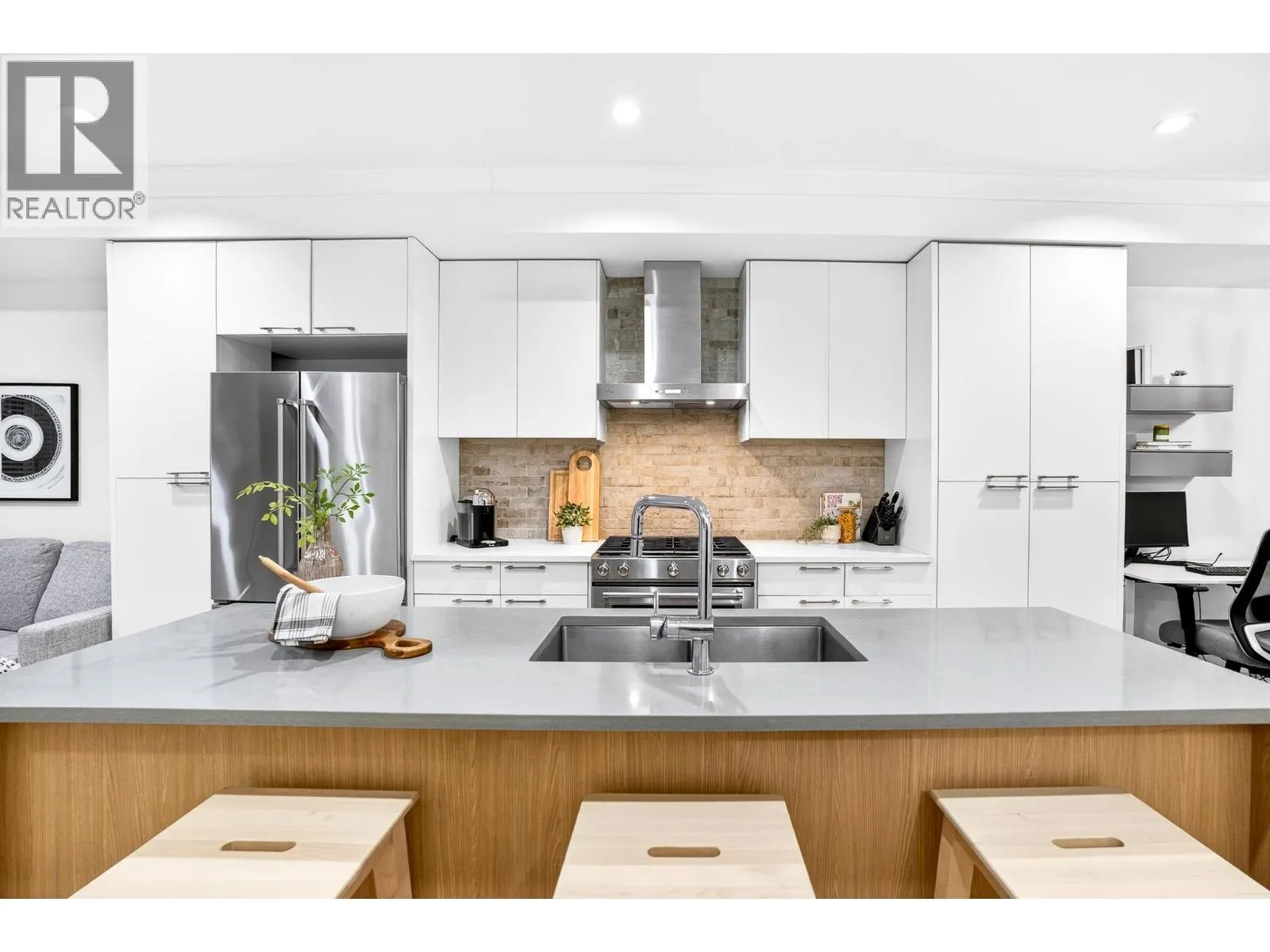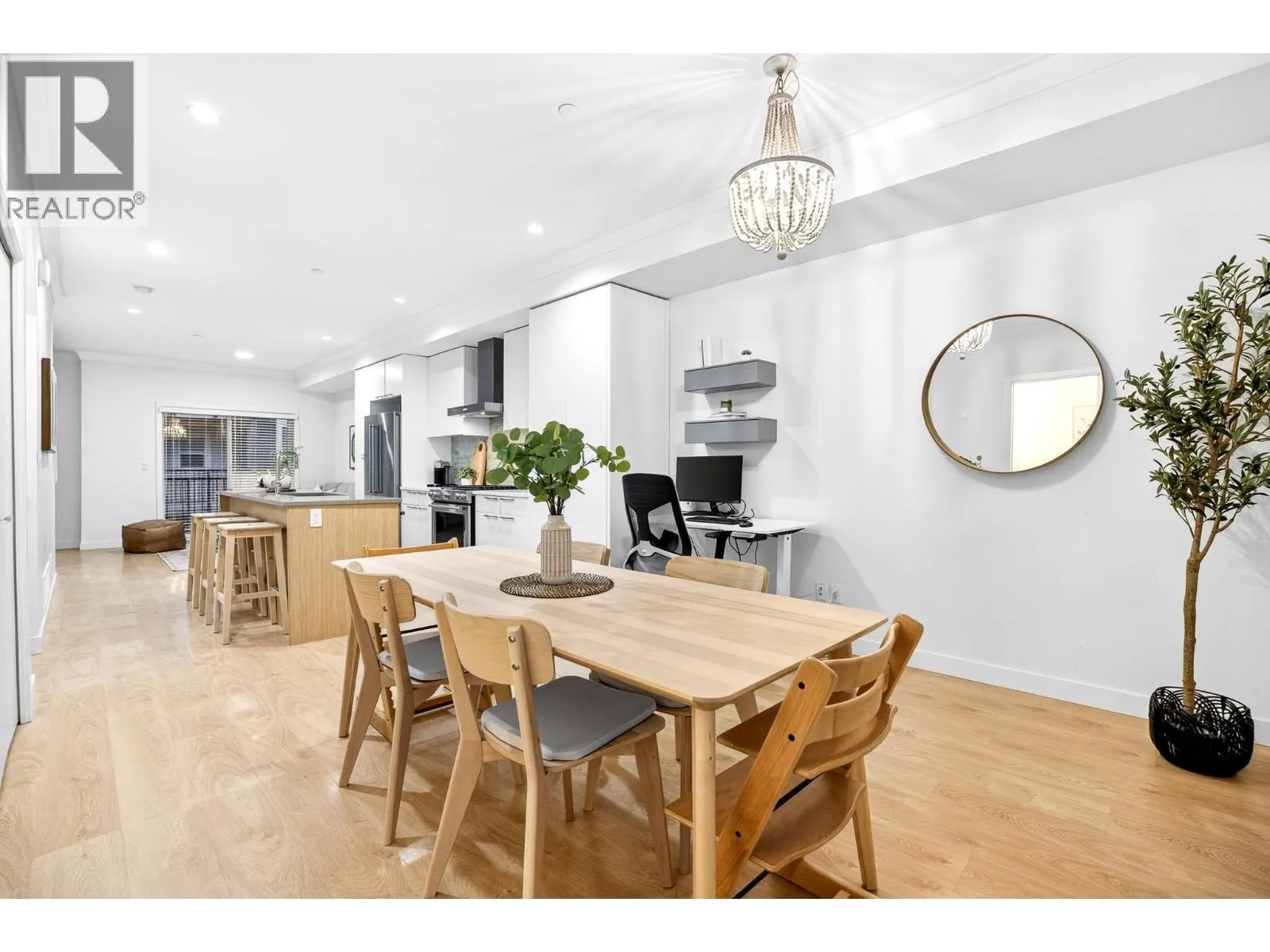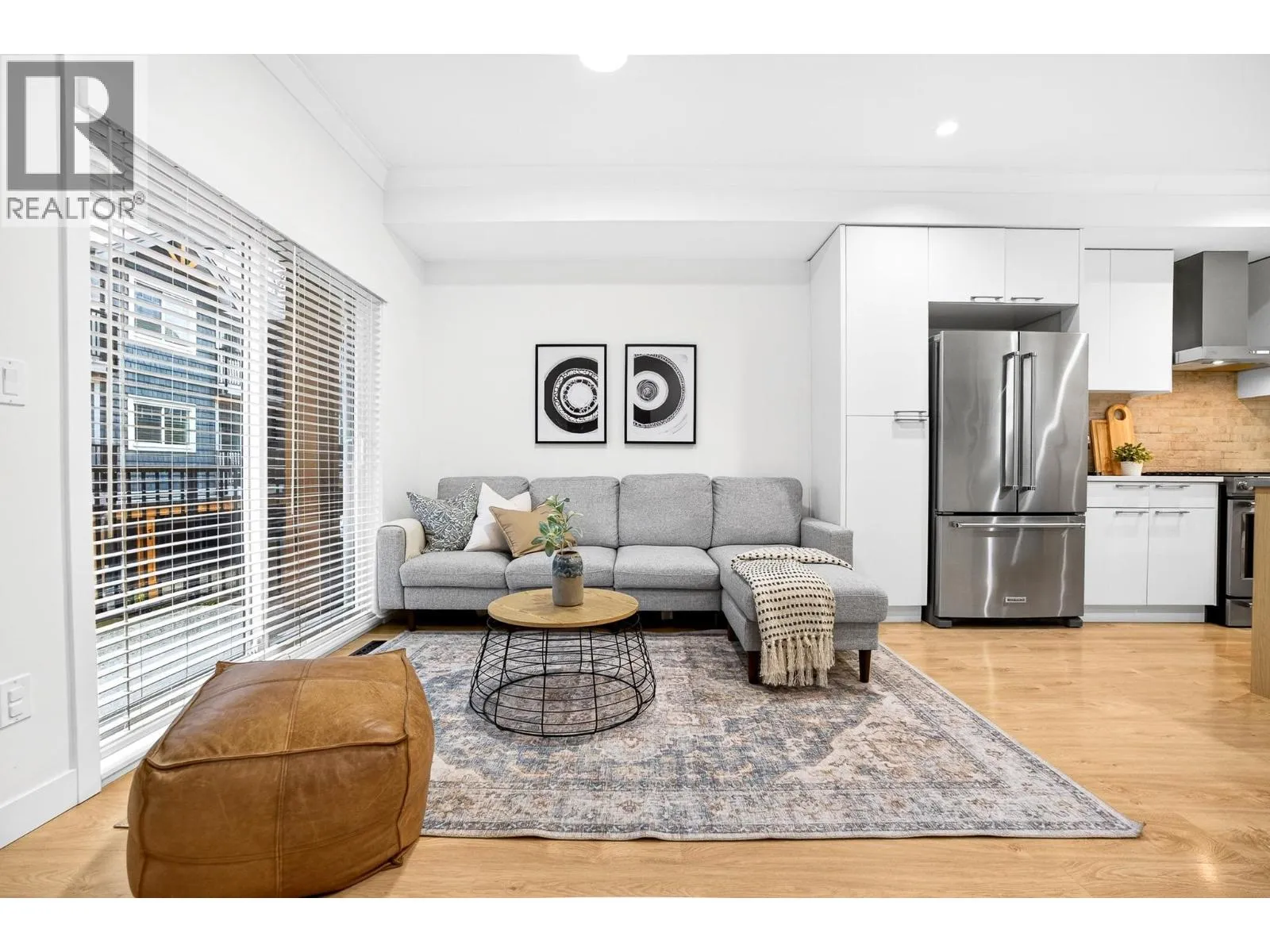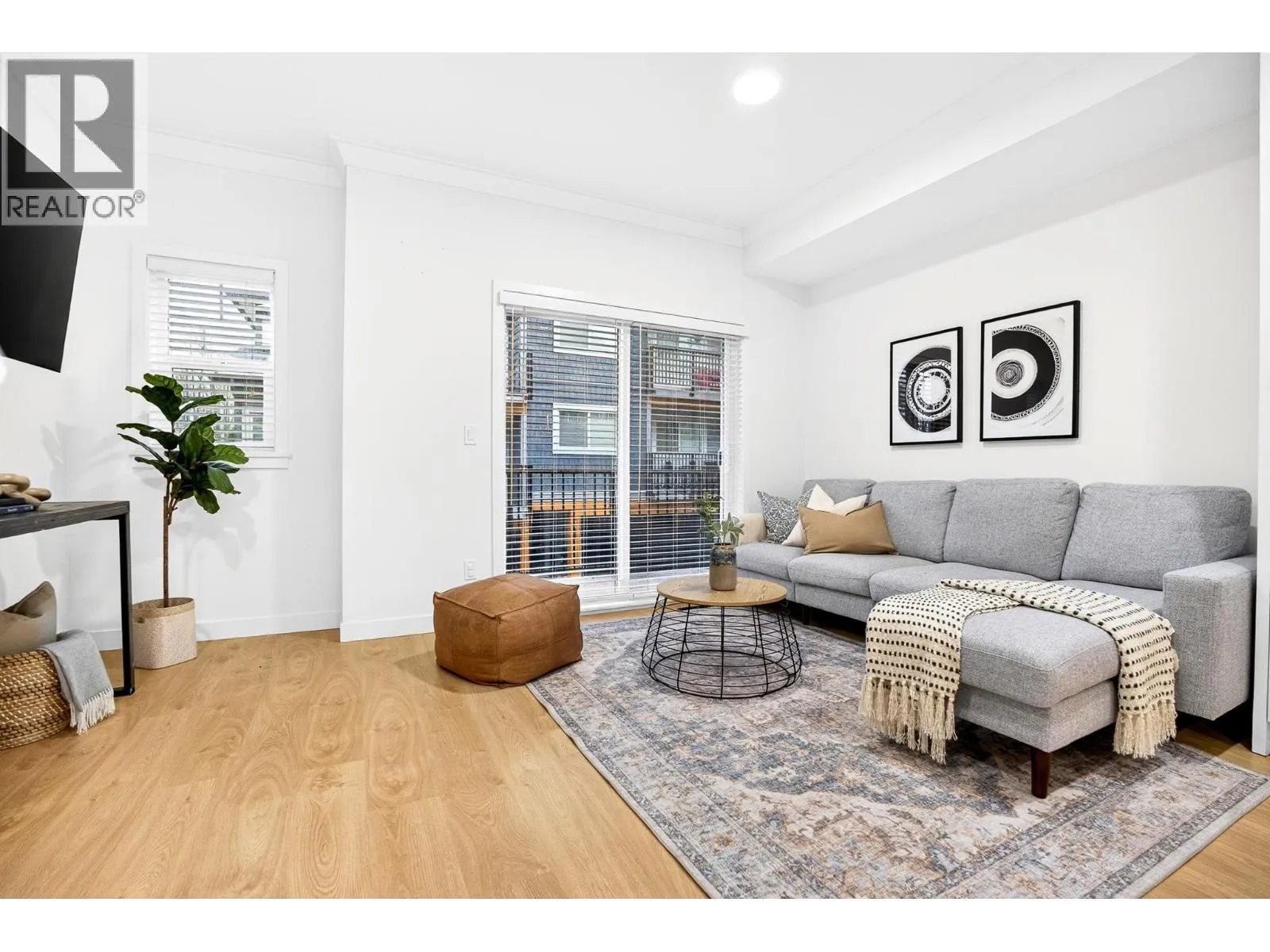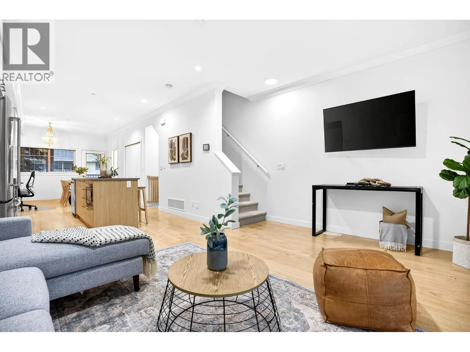 This immaculate 3-storey corner townhouse in Ruxton Village is where comfort, style, and location come together effortlessly. Sunlight fills the open-concept main floor with 9' ceilings, crown moulding, and oak wide-plank laminate flooring, while air conditioning keeps the home comfortable year-round. The kitchen feat. quartz counters, soft-close cabinetry, upgraded Kitchen Aid S/S appliances, & a 5-burner gas stove, flowing seamlessly to a deck with gas hookup for weekend BBQs. Upstairs offers 3 bdrms & 2 baths, including a primary bdrm with it's own private balcony. A 2-car tandem garage with ample storage, a second deck, and a private fenced turf backyard. Minutes from downtown, shopping, dining, and recreation. Perfect for 1st time buyers & young families. (id:27476)