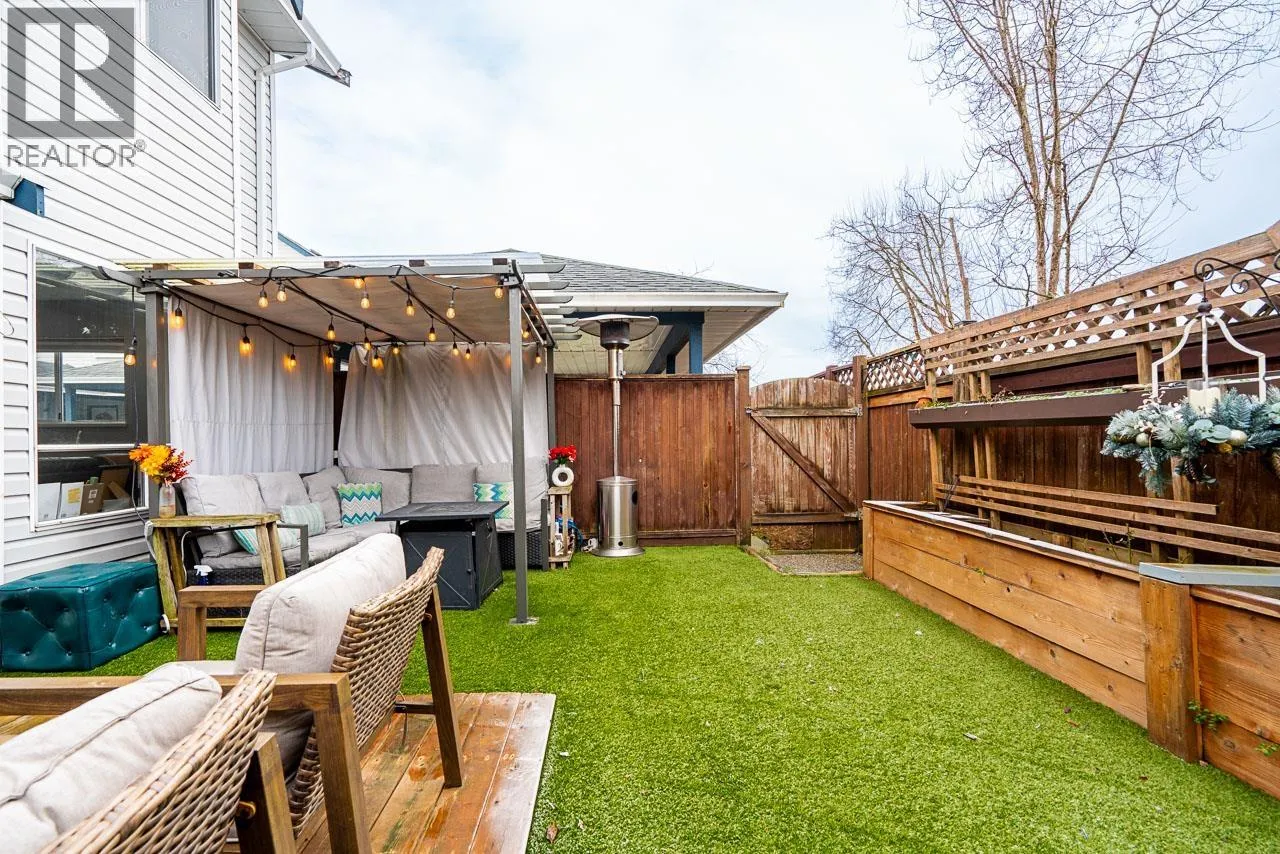 Beautifully RENOVATED end-unit townhome offering style, comfort, and exceptional convenience. Updated in Summer 2025, this light-filled 3-bedroom, 1.5 bath home features a modern kitchen, designer TV and dining feature walls, built-in ceiling speakers in the kitchen, and fresh paint throughout, including ceilings. Enjoy a private mountain-facing patio with gazebo, deck, and turf.Wake up to stunning Golden Ears Mountain views from the primary bedroom with custom walk-in closet and built-in workspace. Versatile 3rd bdrm works perfectly as 2nd home office. Steps to shops, restaurants, daily essentials,Chevron gas station,EV charging, 3 min drive/15 minute walk to the West Coast Express. Located in the Hammond Elementary and Westview Secondary catchments. Well-managed complex. Low Strata Fees. (id:27476)