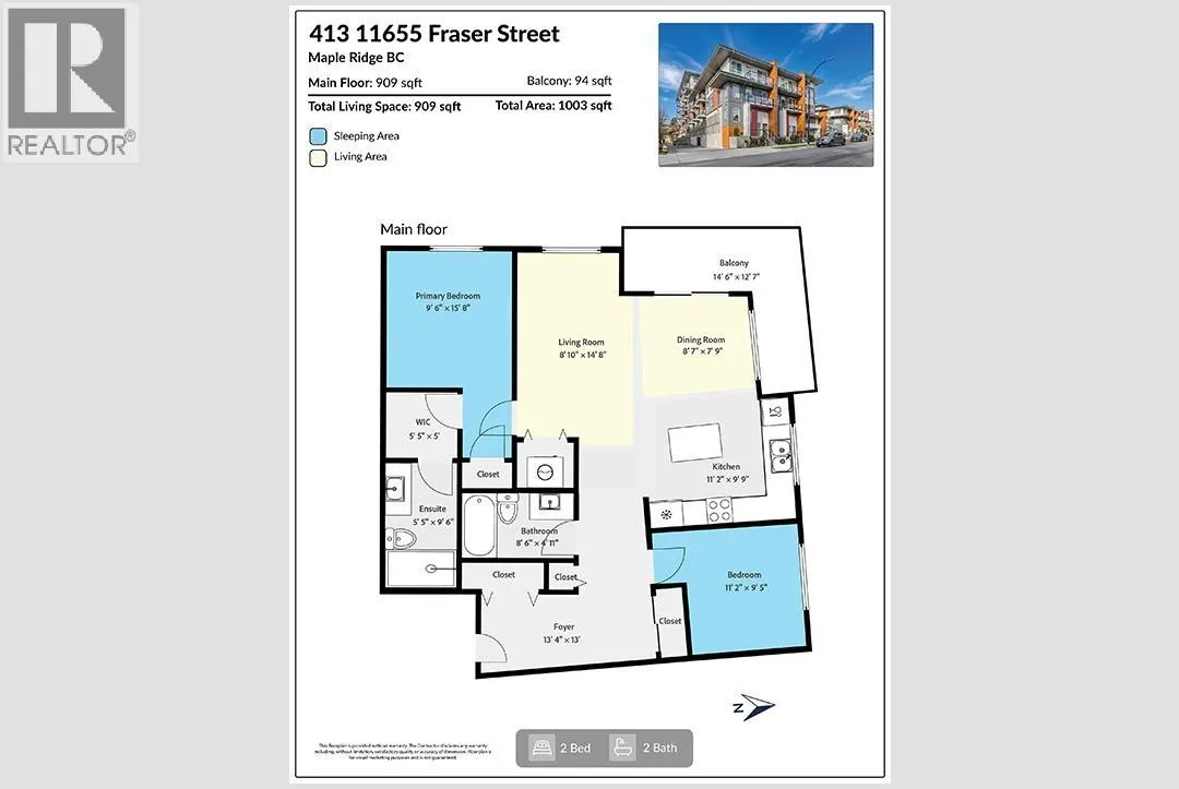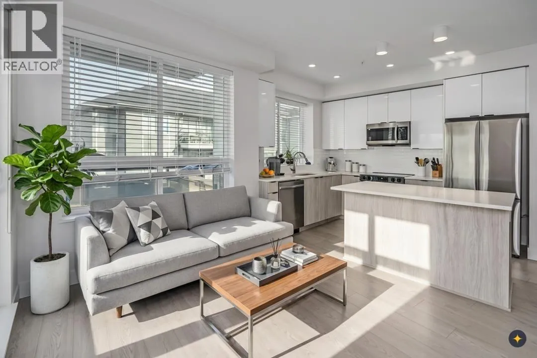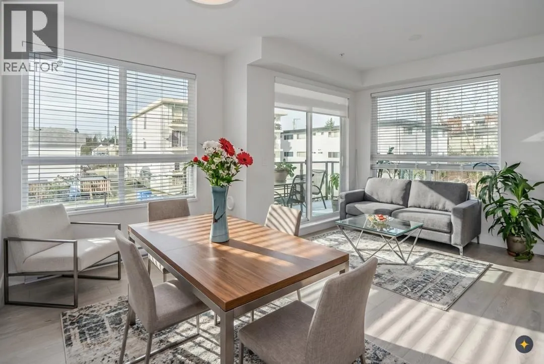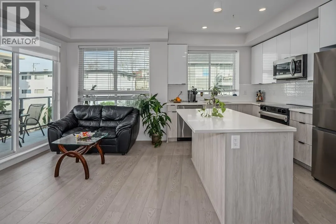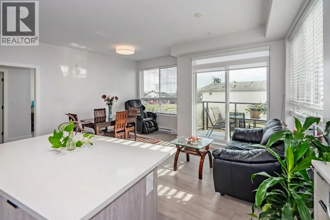 Welcome to Podium, an architectural standout in Maple Ridge! This bright, 1-year-old 2 bed / 2 bath corner unit offers effortless modern living with comfort in every detail. Inside, enjoy stylish finishes like quartz countertops, stainless-steel appliances, and a sleek tile backsplash. The airy open-concept layout flows onto a spacious wrap-around L-shaped balcony, perfect for morning coffee or relaxing evenings. The primary bedroom features a walk-in closet and a calming ensuite. Located near a park with tennis and basketball courts, and just steps to the West Coast Express and riverfront trails. Pet-friendly, includes 2 parking stalls that have designated EV charger, GYM facility, with early possession available. A perfect place to call home! (id:27476)