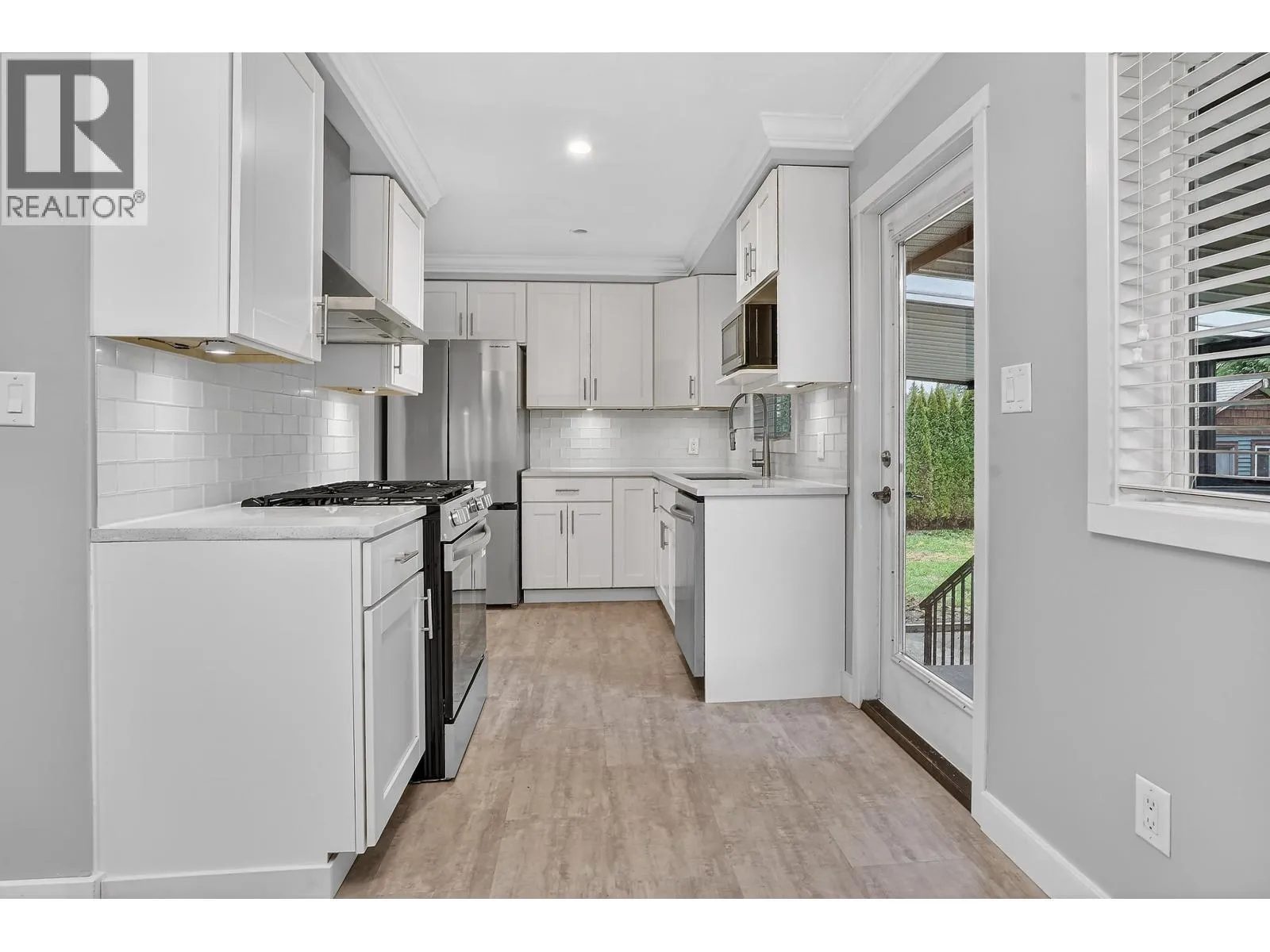 Well-maintained and updated home in desirable West Maple Ridge featuring cement board exterior with cultured stone accents. Interior offers laminate flooring, oak bedroom floors with built-in closets, and two cultured stone gas fireplaces. Main level includes 3 bedrooms, a 4-piece bath, and a bright kitchen with quartz counters, shaker soft-close cabinets, vinyl flooring, and new Fridge and gas stove. Downstairs offers a suite with Samsung appliances, stove, 4-piece bath with window, and bedroom with closet (no window). Updates include approx. 2010 windows, PEX plumbing, new 100-amp panel, heat pump with A/C, high-efficiency furnace, and local alarm. Conveniently located near schools, parks, shopping, recreation, and transit. (id:27476)