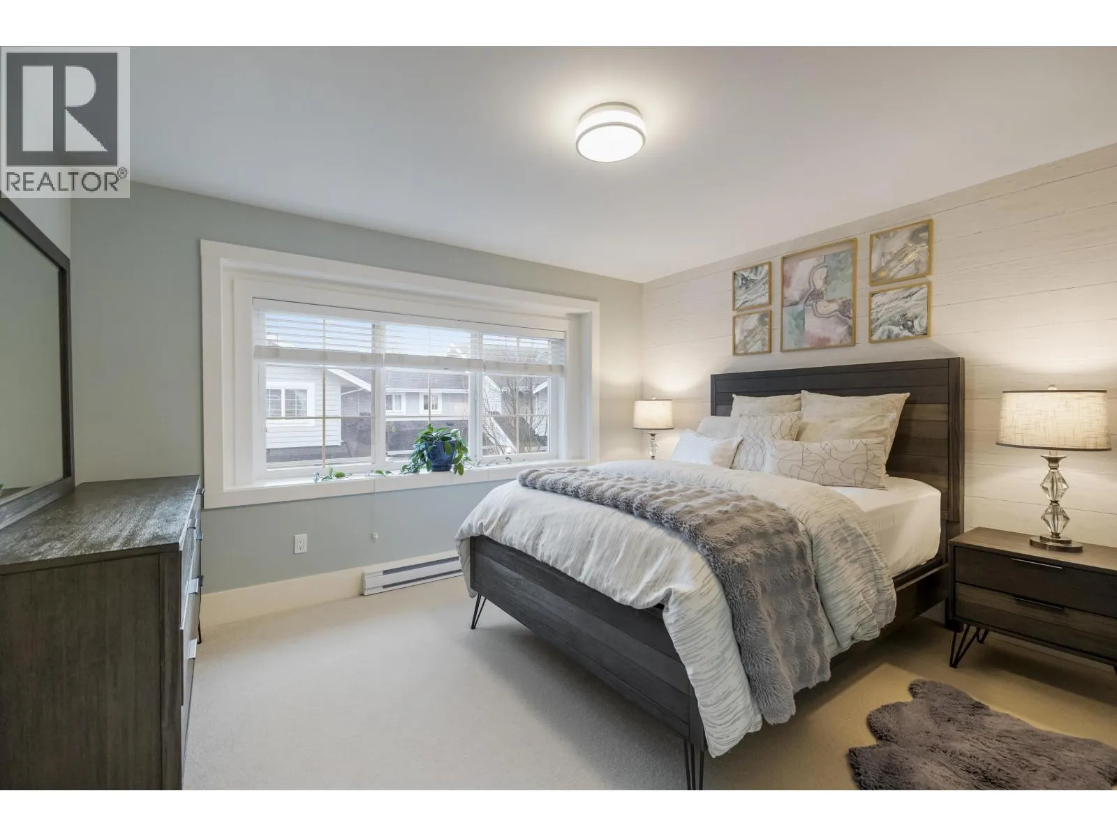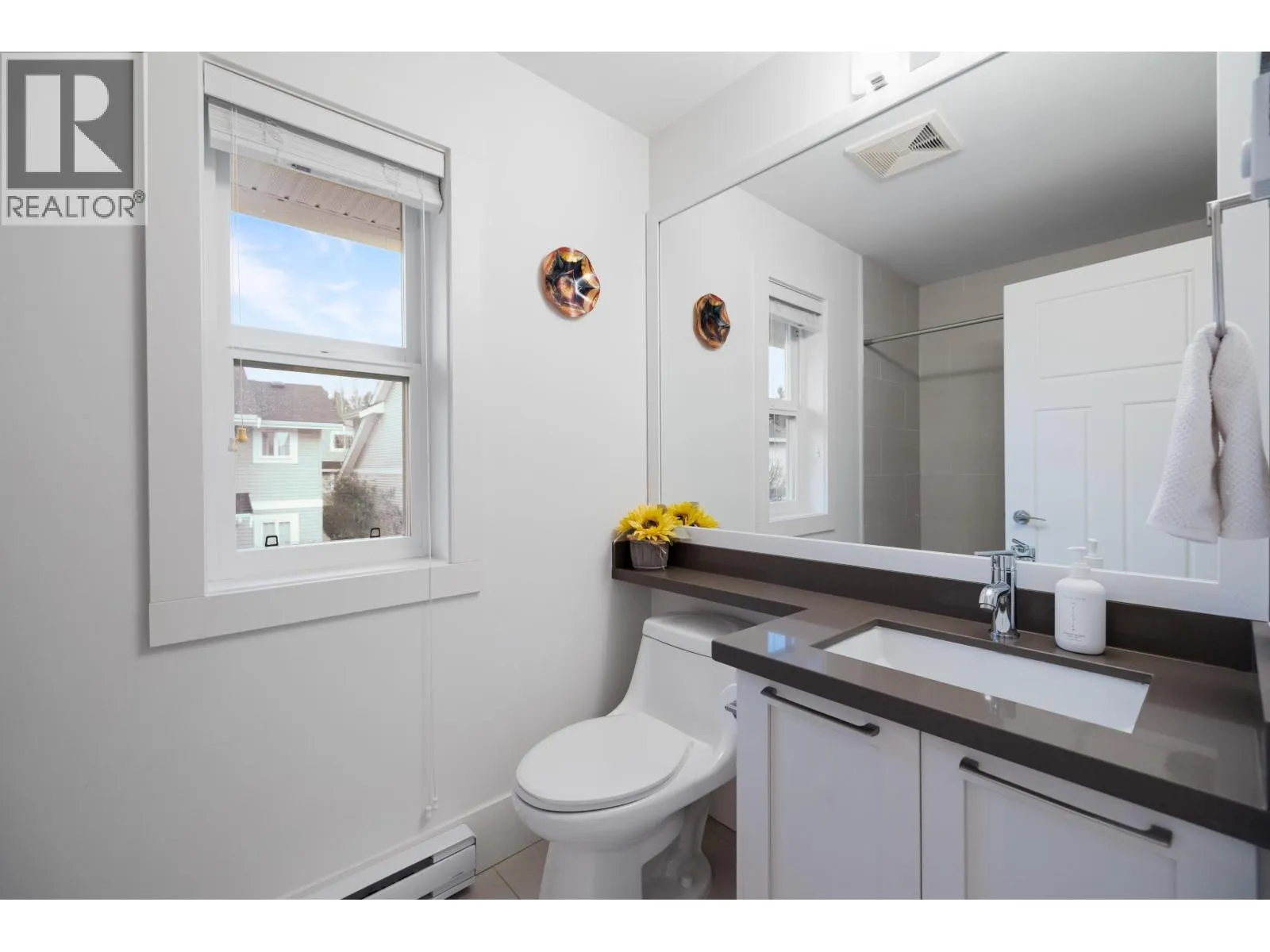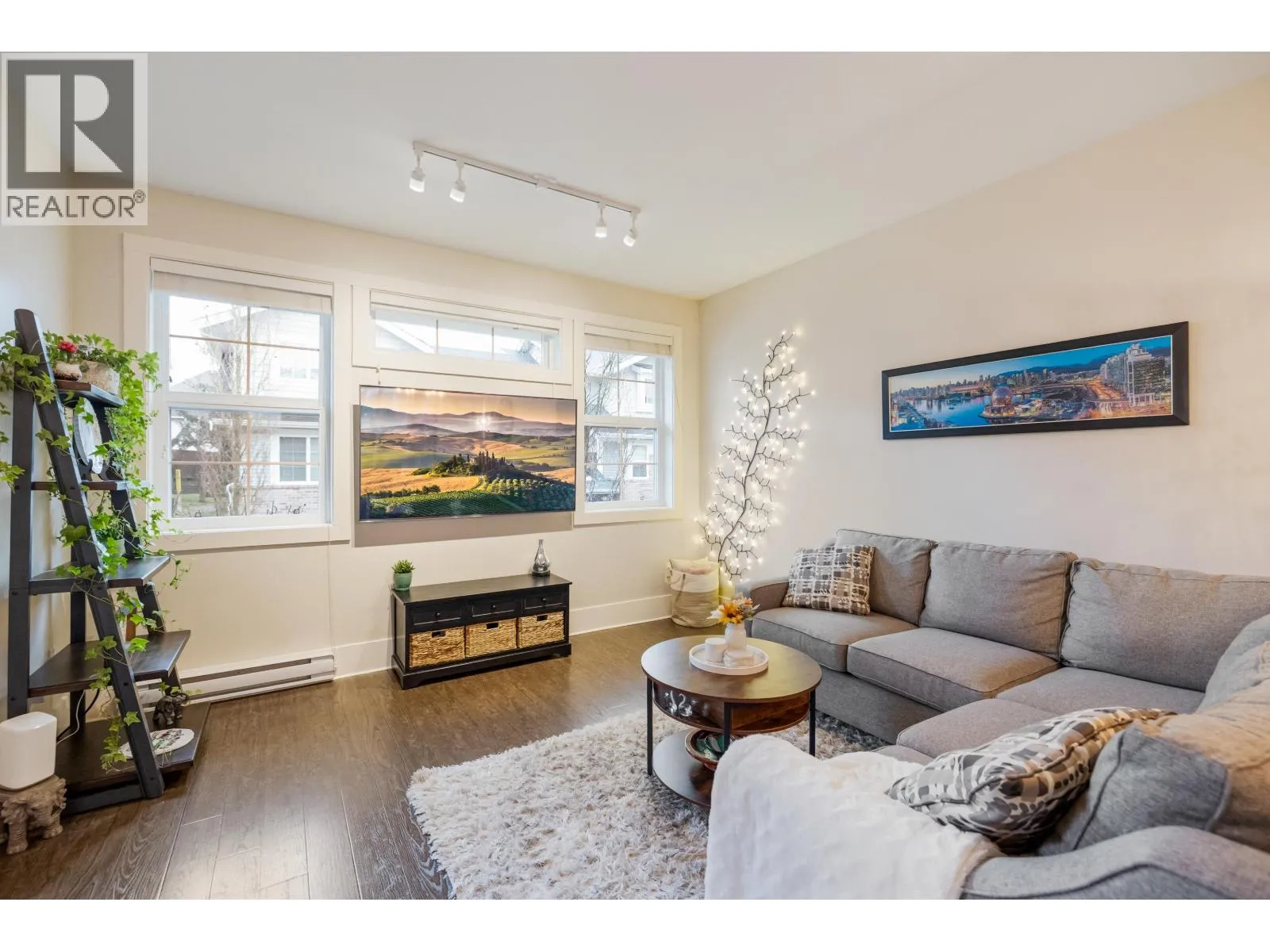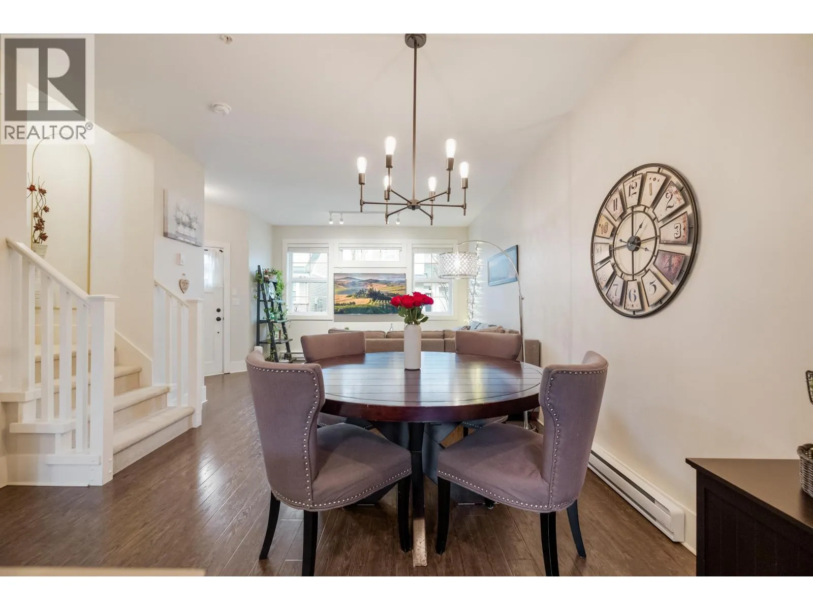 TWO STOREY LIVING in sought after Village Green! This corner unit is perfect for entertaining, and the bright spacious open concept layout gives you that warm inviting feels the moment you walk through the door. Featuring 9-foot ceilings, a spacious kitchen with quartz counters, gas stove and an oversized island that overlooks the living and dining room makes this home ideal for social gatherings! Upstairs you´ll find 3 bedrooms, 2 baths and full-size laundry. The primary bedroom hosts an ensuite with an oversized shower with glass door and dual sinks. Other features include private driveway, storage, large fully fenced backyard with patio, gas hookup for the BBQ and a playground for kids. Located close to schools, transit and shopping. Open House Feb. 14, Sat 1-3 PM (id:27476)