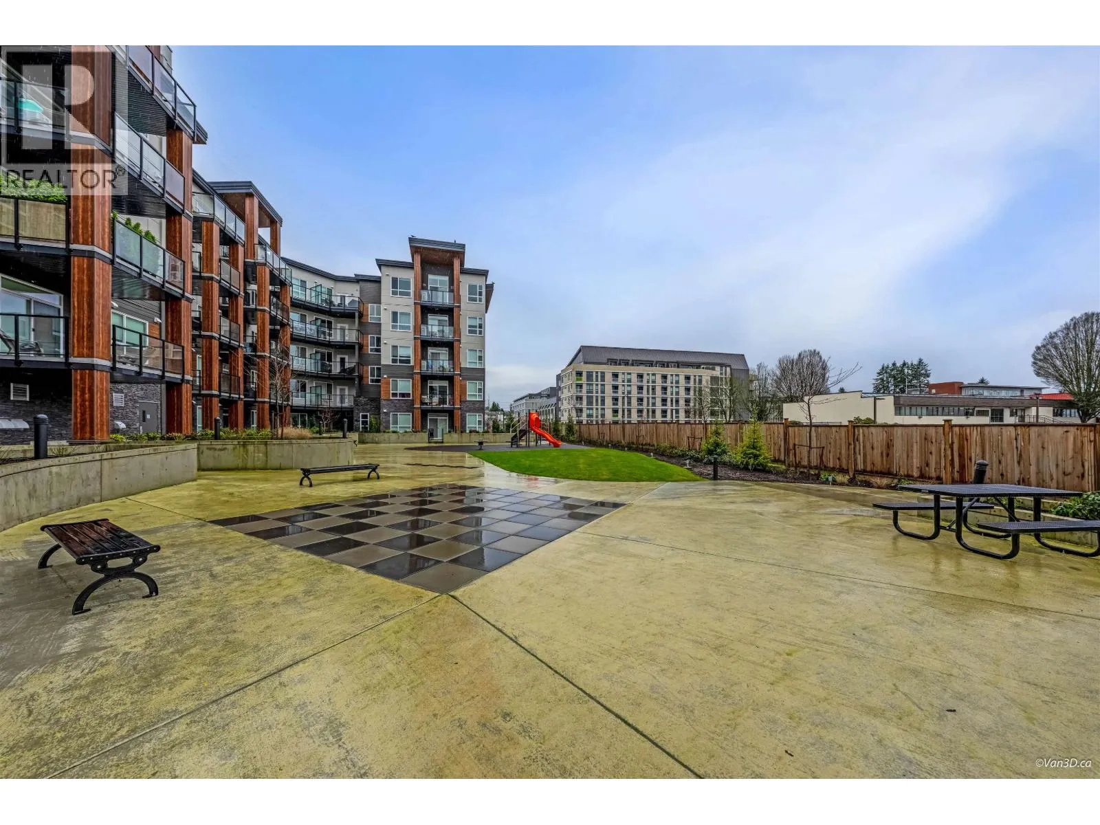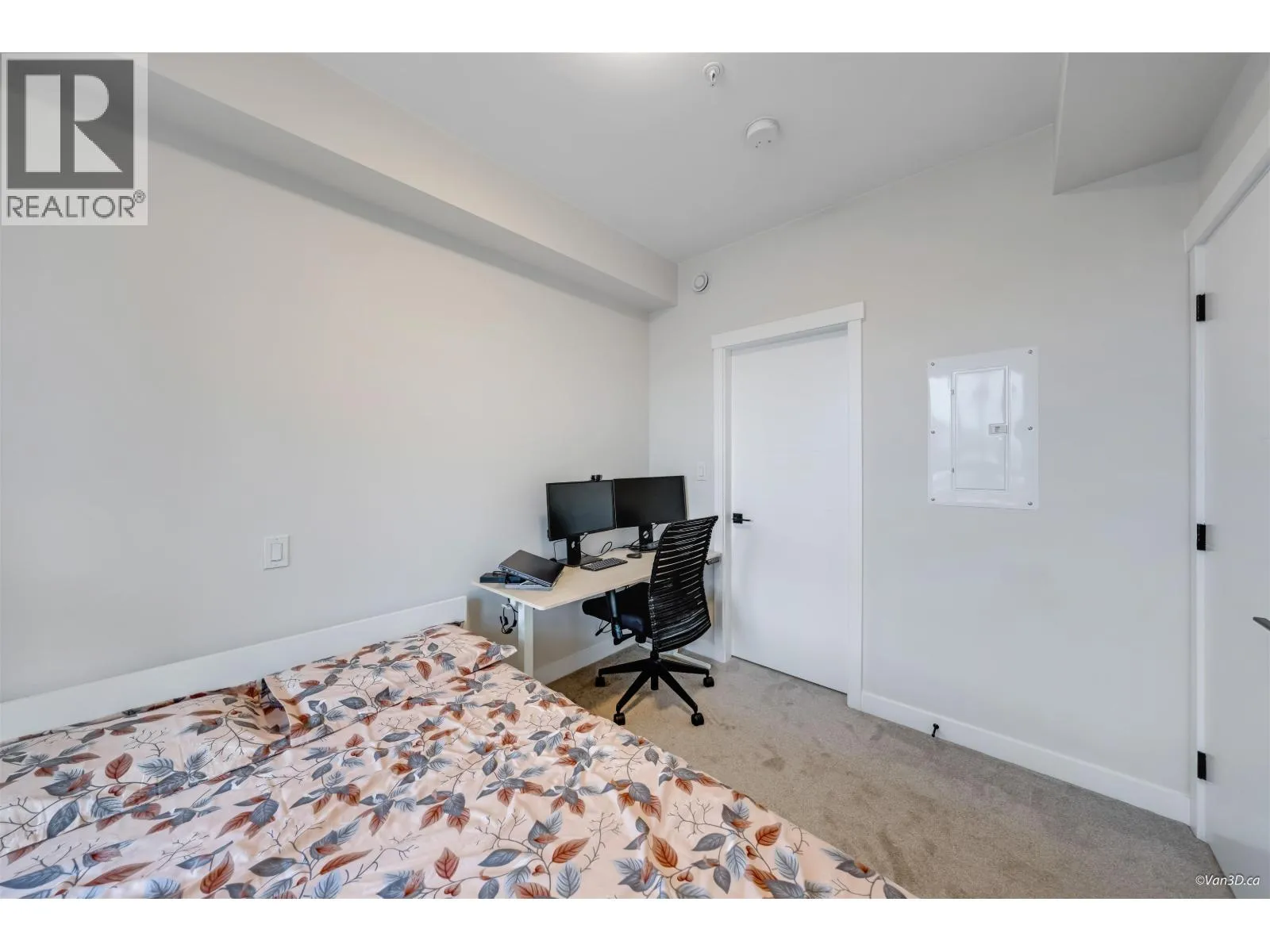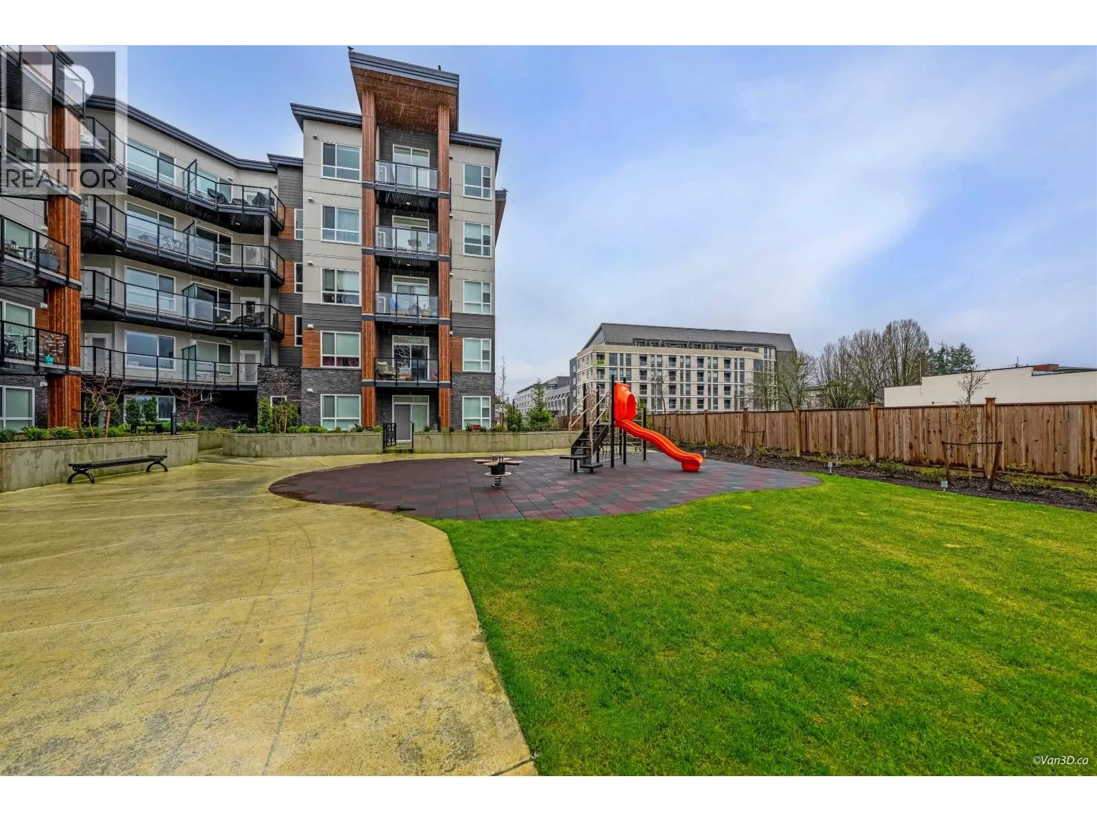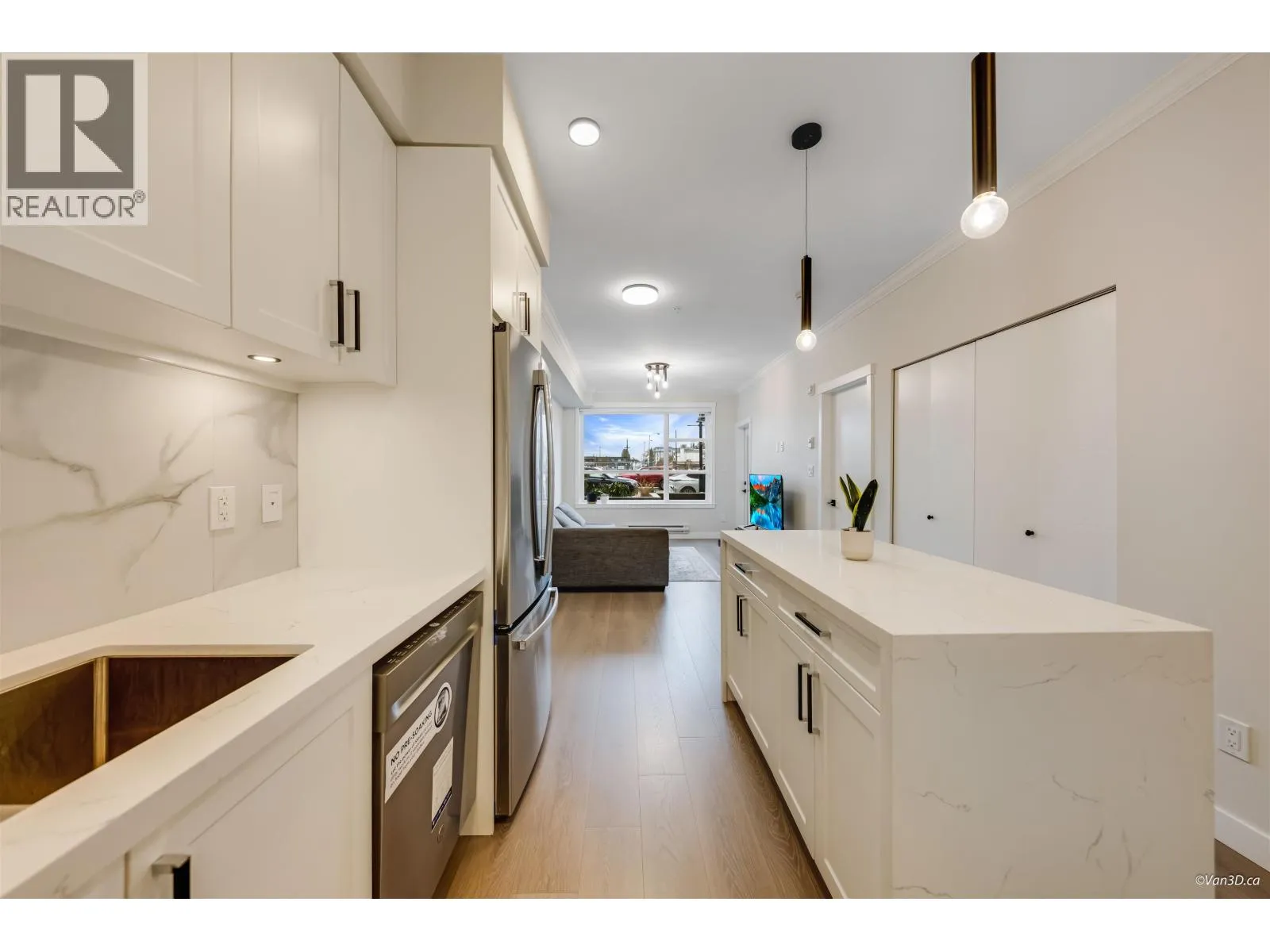 Enjoy new construction without the GST! This bright 1-bedroom, 1-bathroom home offers a modern open-concept layout featuring white quartz countertops, Italian tile backsplash, stainless steel appliances, durable laminate flooring, and soft carpet in the bedroom. Roughed-in for A/C for added comfort. Residents enjoy premium amenities including a fully equipped gym, yoga studio, social lounge, rooftop outdoor spaces, play area, and game room. Includes 1 parking stall and 1 bike/storage locker conveniently located nearby. Centrally located near shopping, transit, schools, parks, medical services, and Downtown. The ground-floor patio with a private street gate provides extra outdoor space and easy access for dog walking. Easy to show with prior notice (id:27476)
