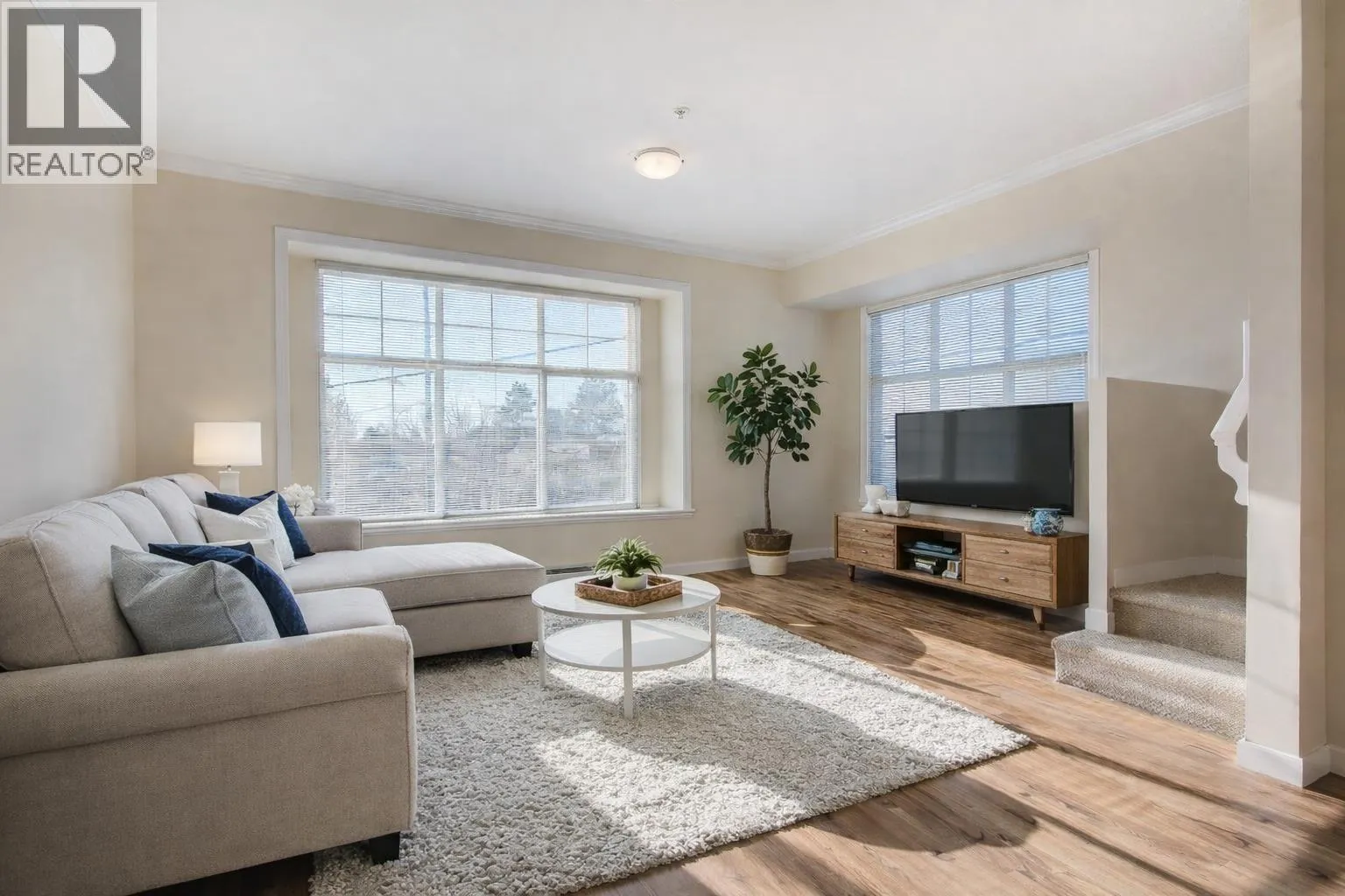 Welcome to North Fraser Estates. This bright end-unit townhome offers 1,801 sq. ft. of well-designed living. The main level features laminate flooring, large windows, and a spacious living/kitchen area that opens to a private balcony. The lower level includes a generous rec room that can function as a 4th bedroom, complete with its own bathroom and walkout to the patio. Located steps from the West Coast Express, shopping, parks, recreation, transit, and health facilities, this home offers exceptional walkability and everyday convenience. (id:27476)