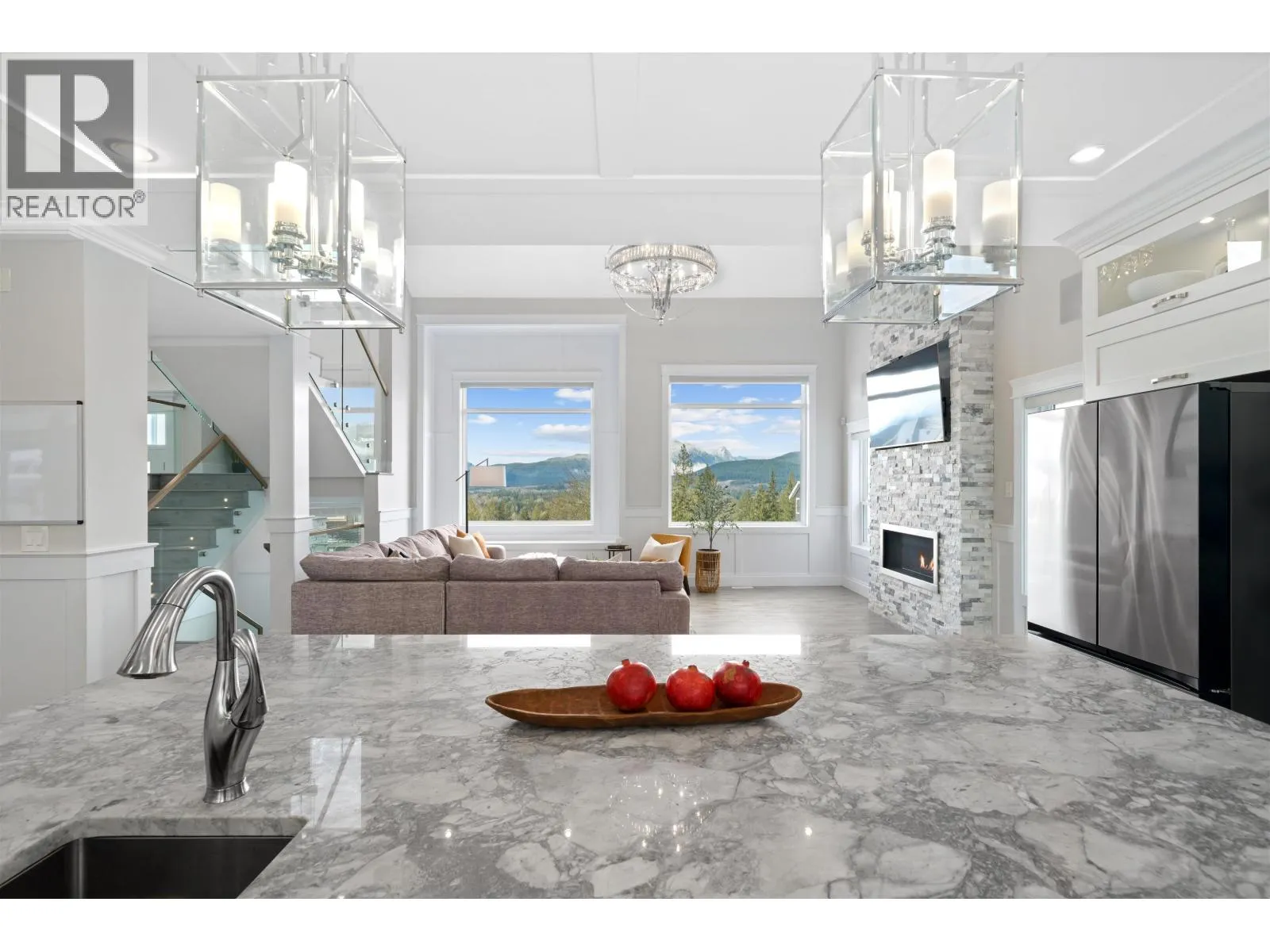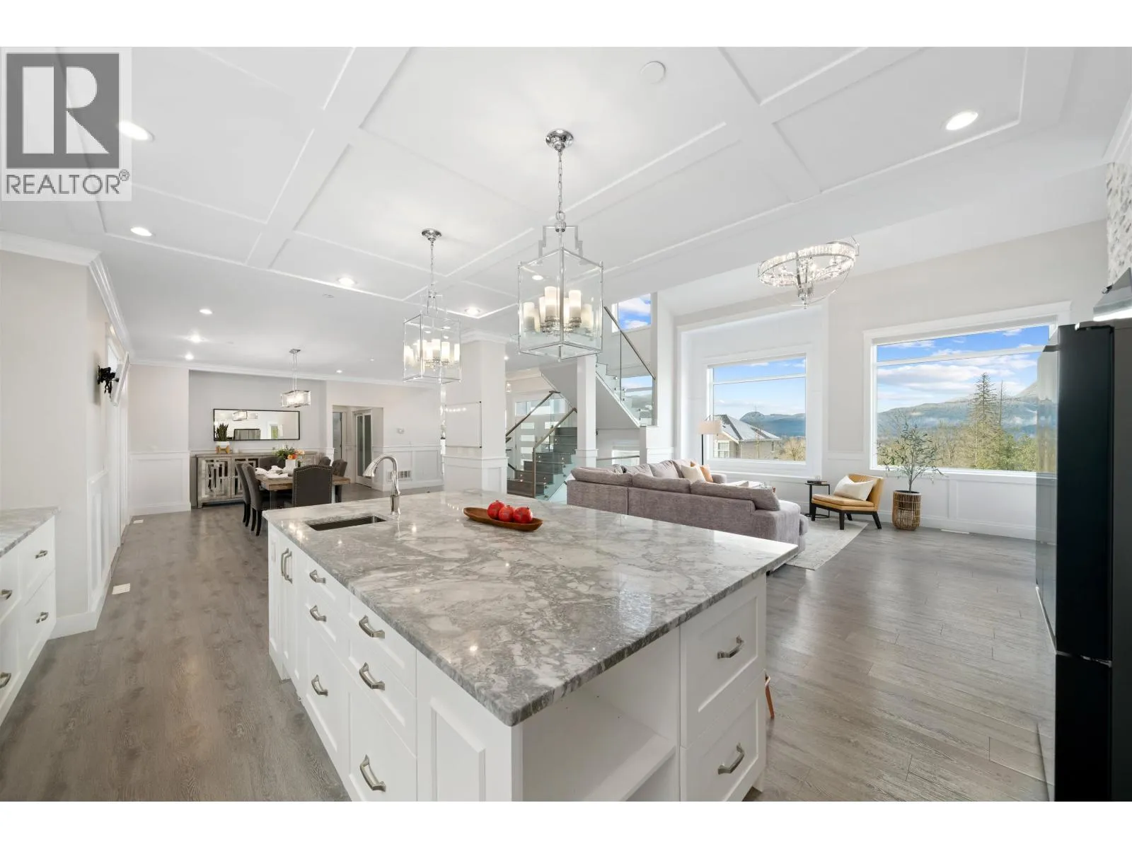Custom-built luxury residence in Grant Hill Estates offers elevated lifestyle & elegance with sweeping 180° views, stretching from Golden Ears to the North Shore Mountains, all framed by spectacular sunsets. Spanning 4,417 sq. ft. of living space on a private 1.55 acre lot, this exceptional home delivers both presence and privacy. Featuring 6 bedrooms and 5 baths, including a spa-caliber primary retreat, central A/C, in-ground irrigation, and an oversized triple garage with room for your RV, boat, or trailer. Inside a flowing open-concept layout is elevated by vaulted ceilings, walls of windows & a dramatic floor-to-ceiling gas fireplace that anchors the main living space, along with a fully soundproofed private theatre. The outdoor setting is thoughtfully designed for upscale entertaining, featuring a hot tub, two vaulted patios, integrated TV and audio, and uninterrupted mountain vistas. Moments from scenic trails, parks, and esteemed Meadowridge School. Complete with a self-contained 2-bedroom legal suite. (id:27476)