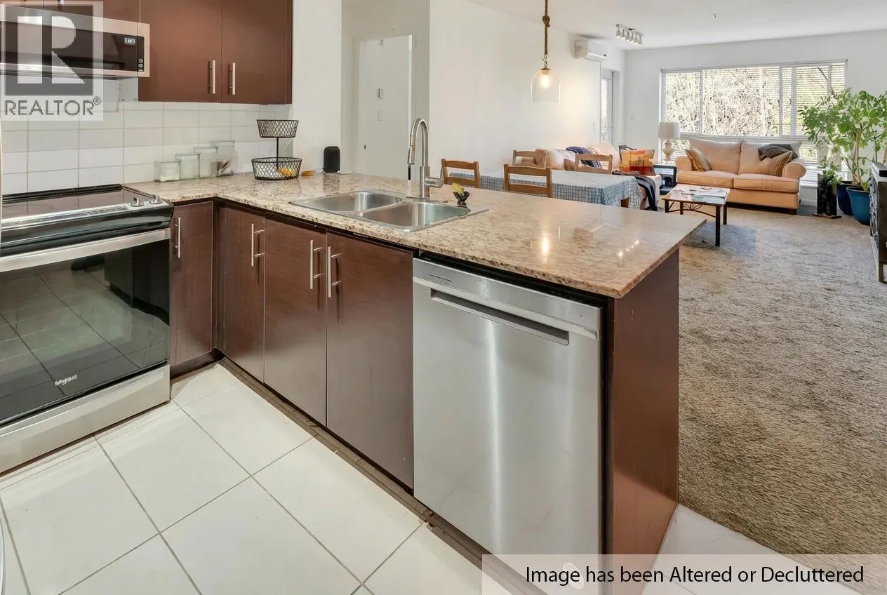 Beautiful 3 bedroom, 2 bathroom condo offering 1,125sq ft of bright, open-concept living in the heart of Downtown Maple Ridge. Enjoy fresh paint, quartz countertops, generous cabinetry, 2-year old stainless steel appliances, and convenient in-suite laundry. Step onto your balcony and take in the peaceful outlook over the greenbelt ravine-an ideal spot for morning coffee or unwinding at the end of the day. This well-managed building features a fitness centre, storage, bike room, guest suite, and a lovely green space. Walk to shopping, restaurants, parks, and recreation, with downtown just 10 minutes away on foot and the West Coast Express only minutes from your door. Includes 2 side by side parking stalls. Book your private showing today! (id:27476)