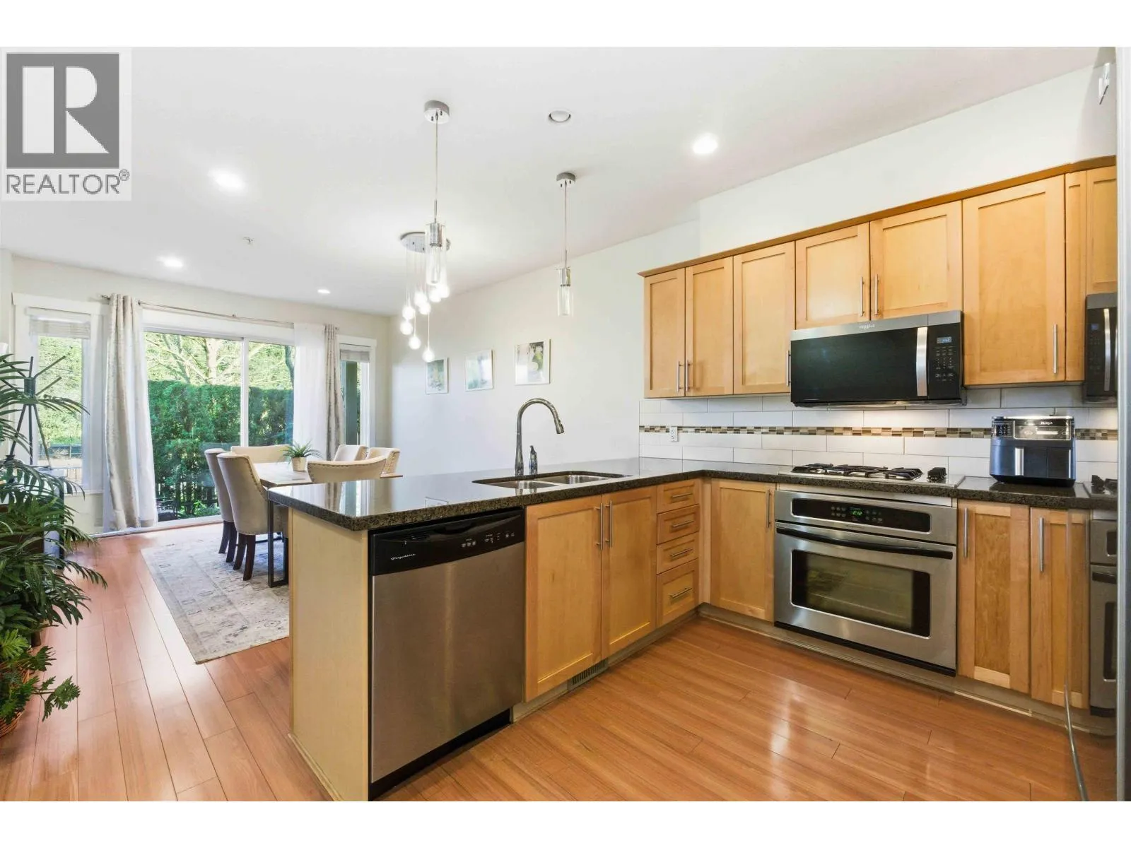 Discover the perfect family home in the popular "Windsong" complex. This lovely 3-bedroom 3-bathroom townhouse features 9ft ceiling, an open-concept main floor with a bright kitchen offering granite counters, stainless steel appliances, and a gas stove. The adjacent family and dining area opens via sliding doors to a private outdoor patio. Relax in the sun-drenched living room centered around a cozy gas ledgestone fireplace. Upstairs is a Master Bedroom with an ensuite and his and hers closets, laundry room, two additional bedrooms, and a full bathroom. Notable upgrades include window screens, upgraded laminate flooring in the upper hallway, and a convenient double-car tandem garage. Within walking distance of top schools, shopping, and West Coast Express. Priced $58K BELOW assessment! (id:27476)