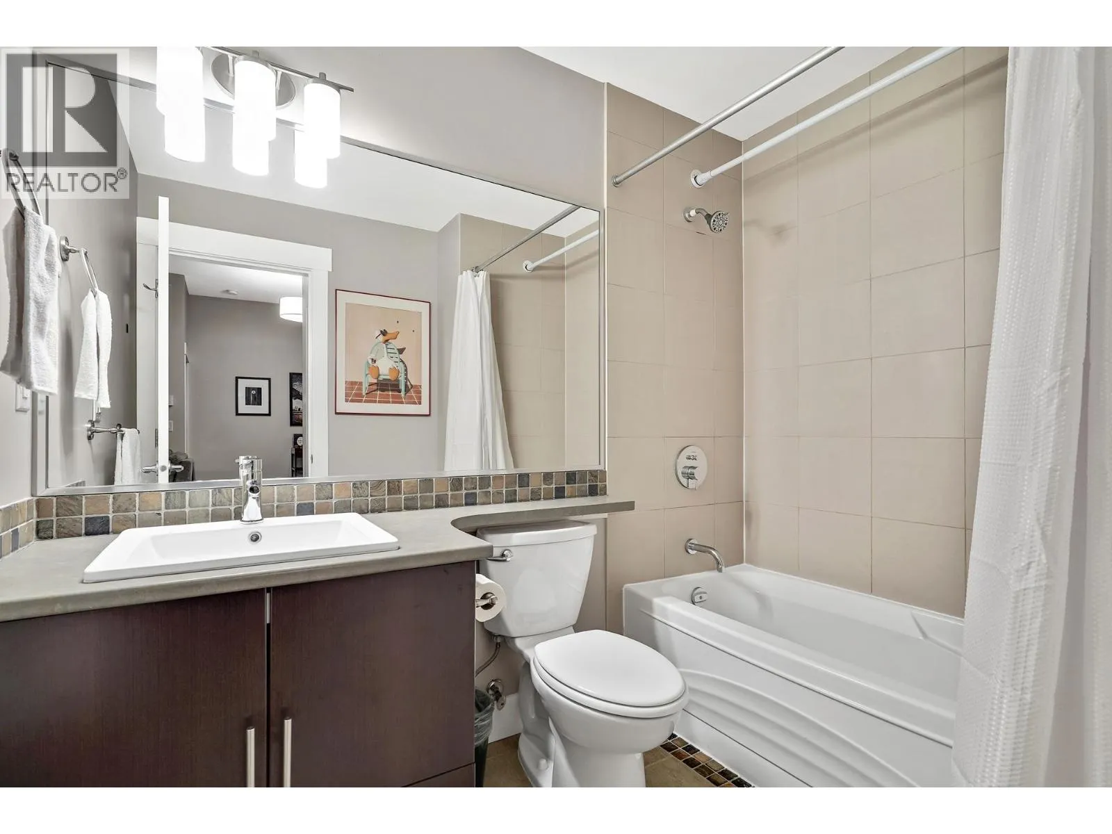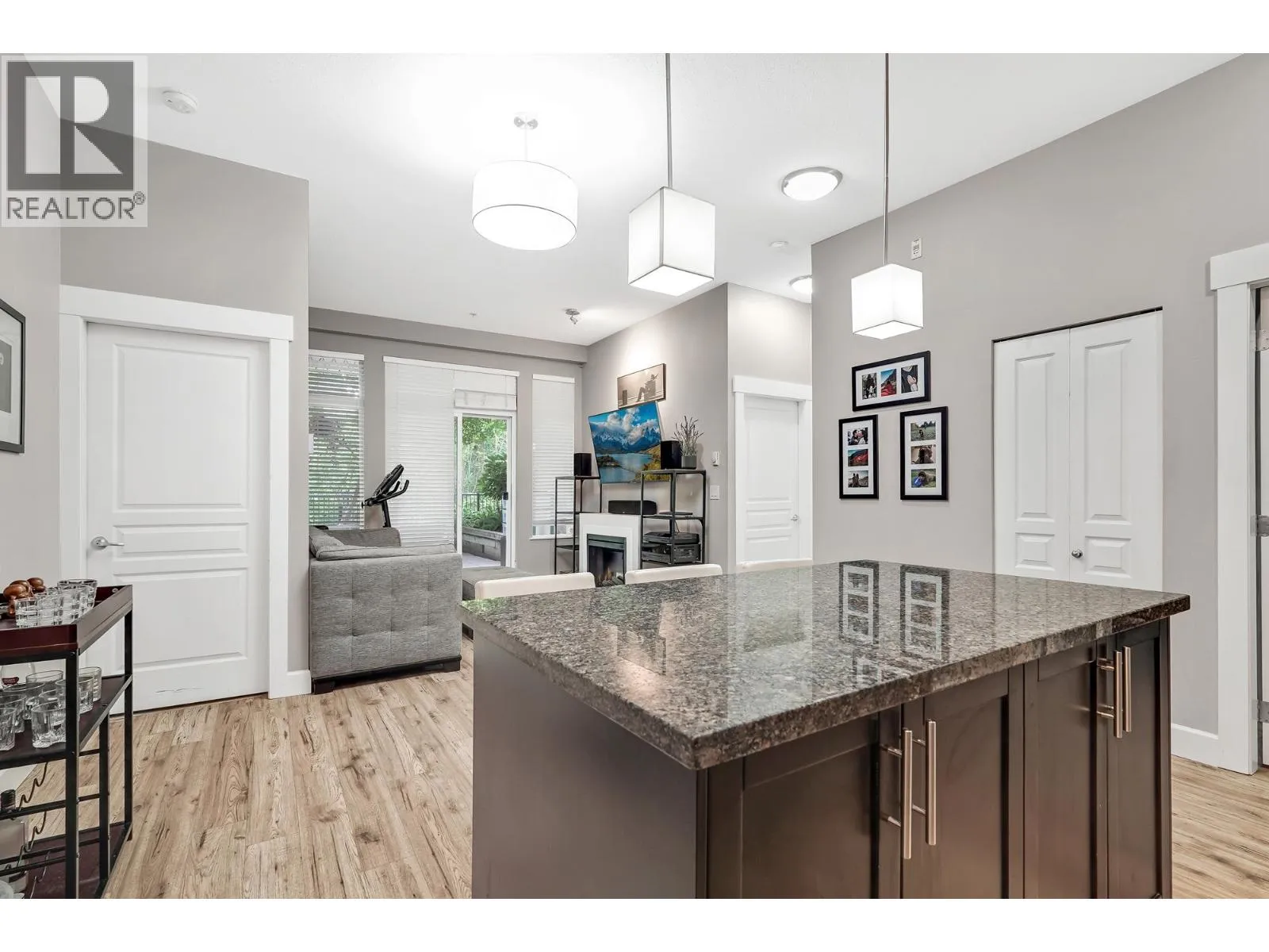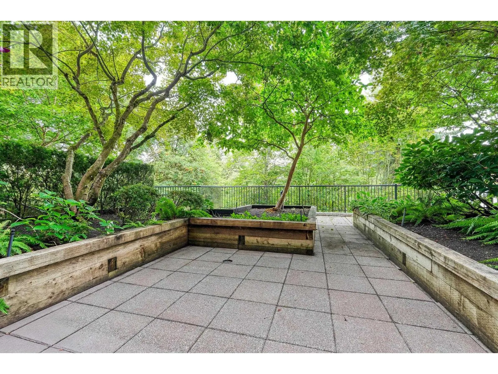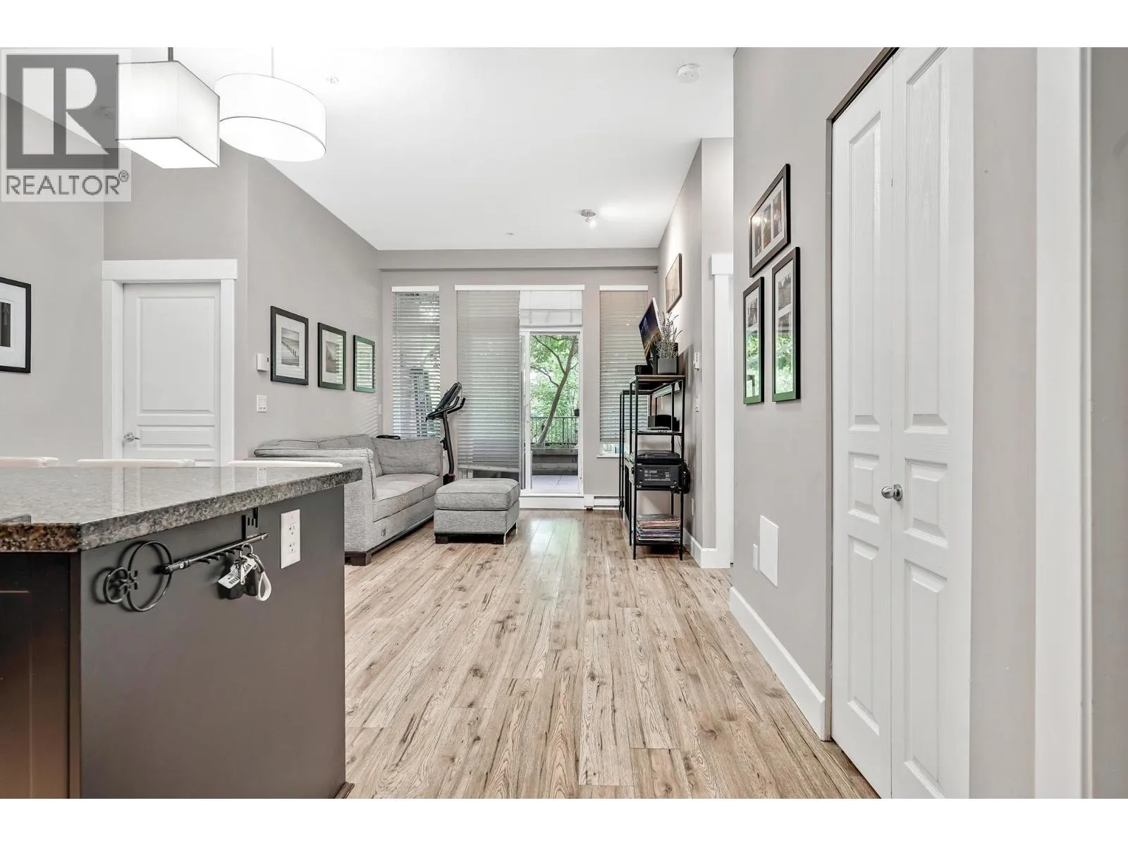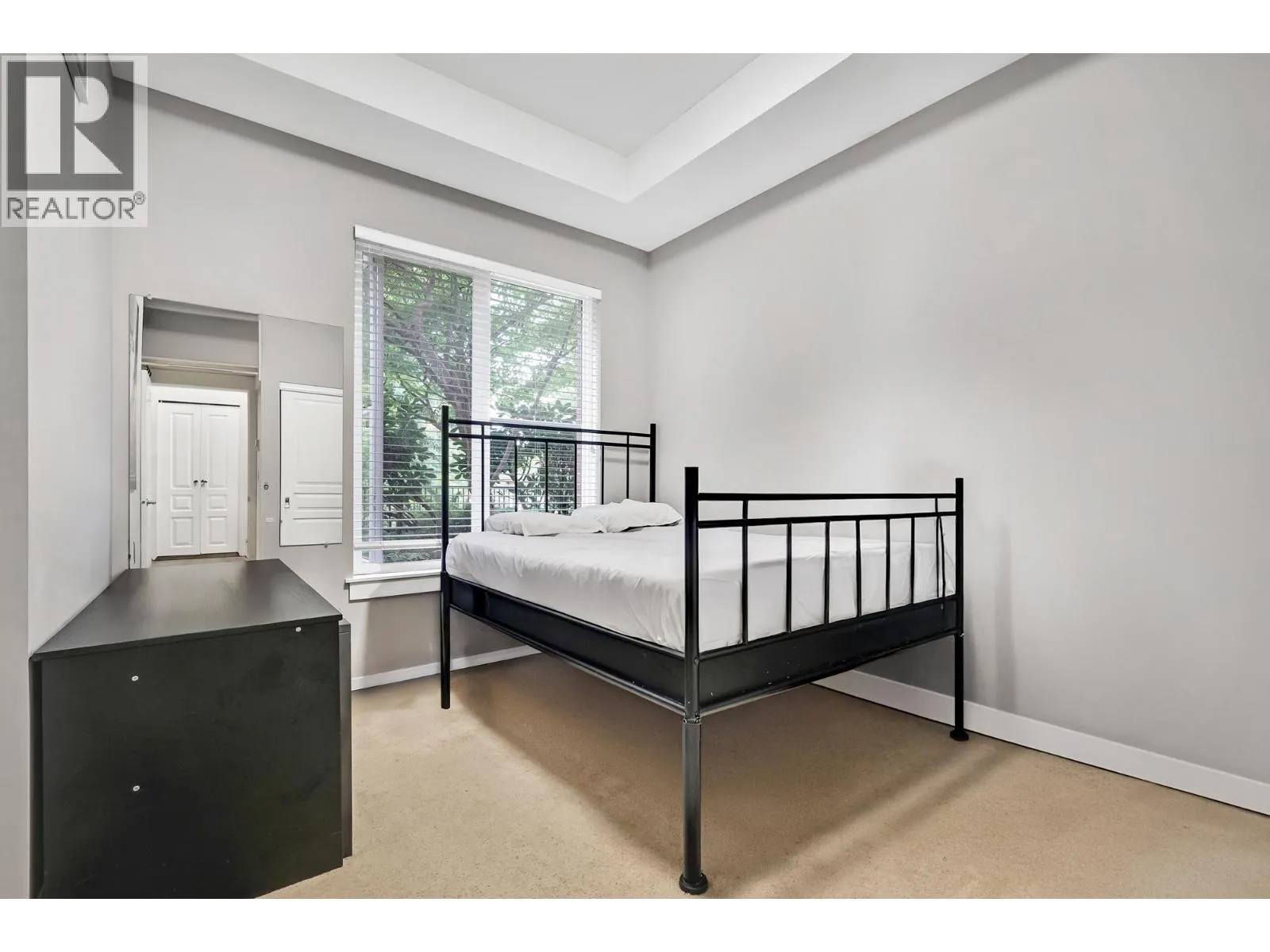 Soaring 10´ ceilings and sleek modern finishes set the tone in this beautifully designed 2 Bed + 2 Bath + Large Den home. The bright north-facing ground-level layout opens to a patio with tranquil green space views, your own peaceful escape and the perfect spot for morning coffee. The large den offers incredible flexibility as a home office, nursery, or bonus room. Enjoy the convenience of in-suite laundry, 2 secure parking stalls, and a pet- and rental-friendly building. All just steps to shops, cafés, and transit-comfort, style, and location all in one. This one has it all, book your showing today. 2 pets allowed* (id:27476)