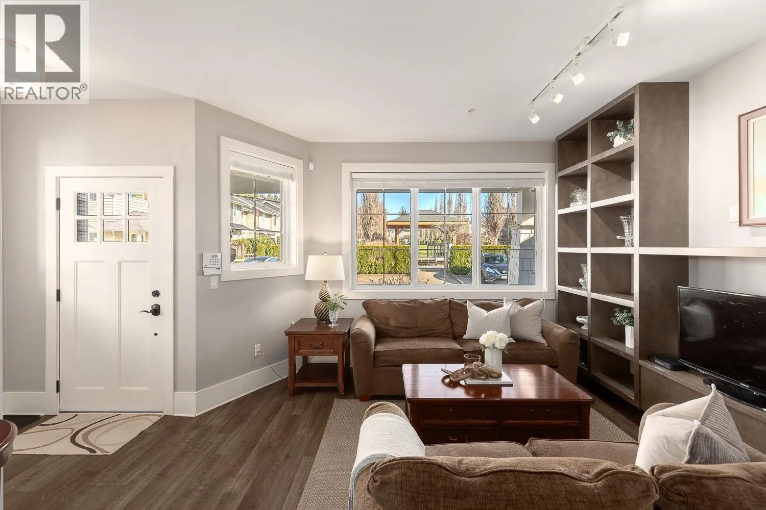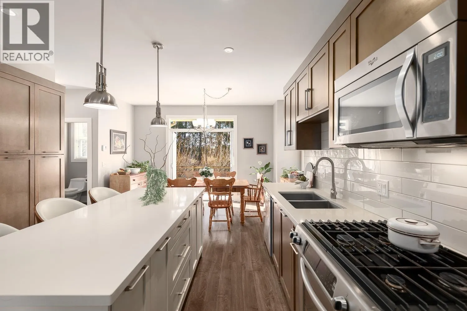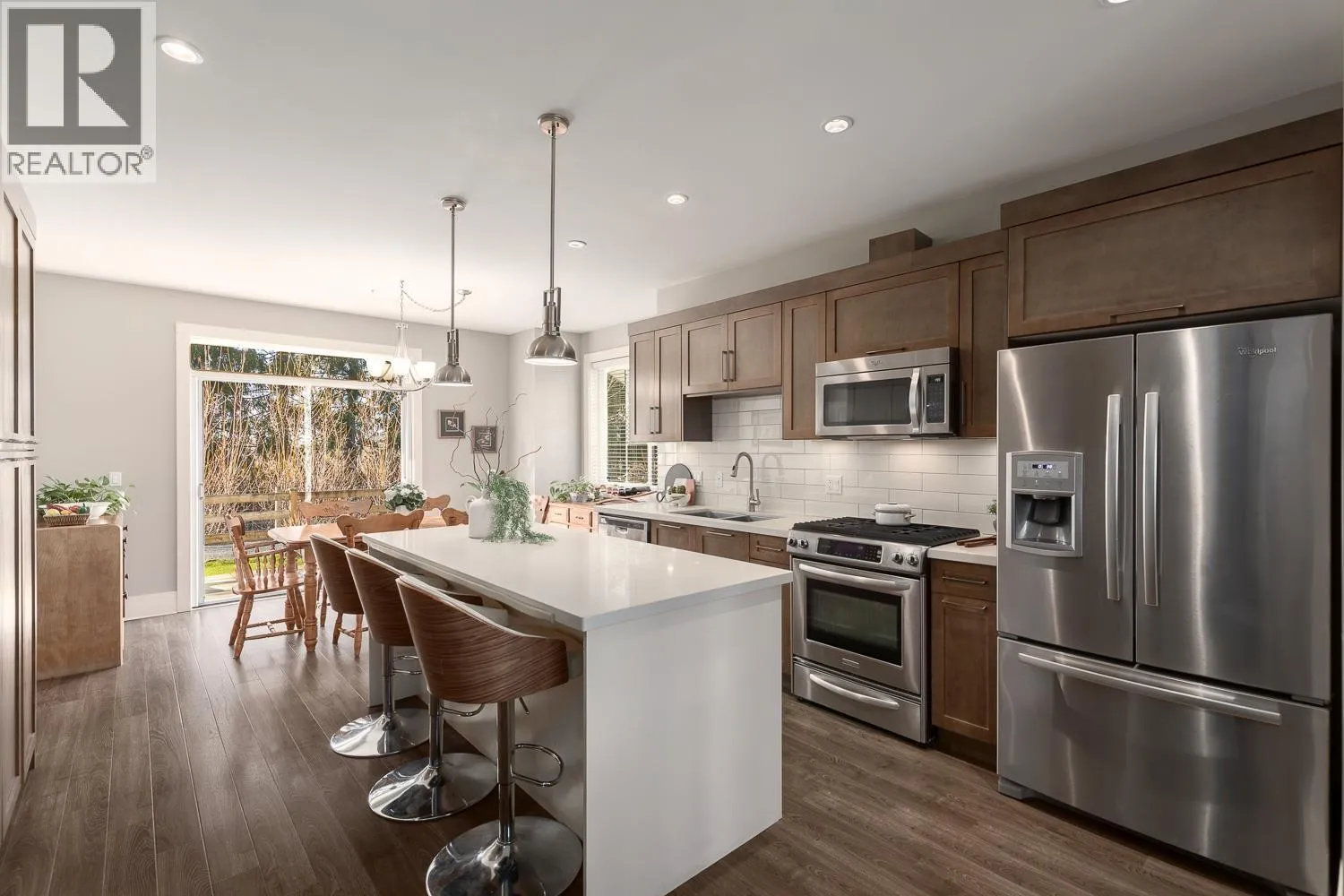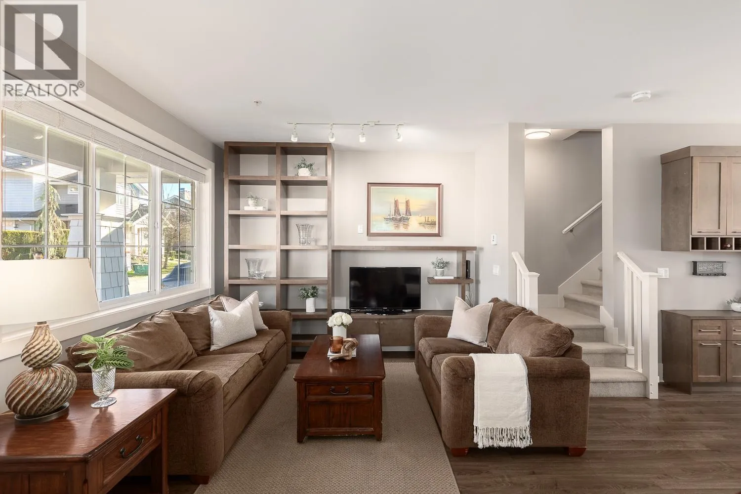 1/2 Duplex in the sought-after Village Green community! This traditional entry-level plan offers warm, inviting great room living on the main floor, with 1,437 square ft over two levels & the feel of a detached home. The open-concept kitchen features quartz counters, stainless steel appliances, a large island, a built-in pantry with wine rack & a powder room. A custom built-in TV shelving unit adds style & functionality. French doors open to an entertainment-sized patio & a fully fenced backyard overlooking a peaceful greenbelt. Upstairs offers three generous bedrooms, including a spacious primary suite with a walk-in shower in the ensuite, plus a separate laundry room with side-by-side appliances, counter space & cupboards. Set in a quiet, safe, family-oriented community! (id:27476)