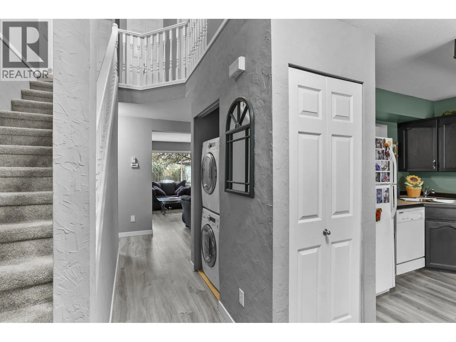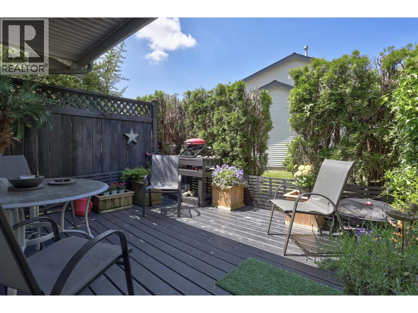 Updated 3-bedroom + den END UNIT townhome with over 1,400 sq.ft. on two spacious levels. Renovated with brand new PEX plumbing, new vinyl plank flooring, newer roof & skylight, plus a 3-year-old washer & dryer - this home is truly move-in ready. Enjoy a private deck directly off the main floor. The main floor has a generously sized den, with a window, offering flexibility as a 4th bedroom or ideal home office. Upstairs offers 3 bedrooms including a king-size primary with full ensuite. Features include forced air heating, programmable thermostat, retractable screen doors, ceiling fans, garburator, gas fireplace, 3´ crawl space, single garage + extra parking. Ideal location, close to schools, transit, and everyday amenities. (id:27476)