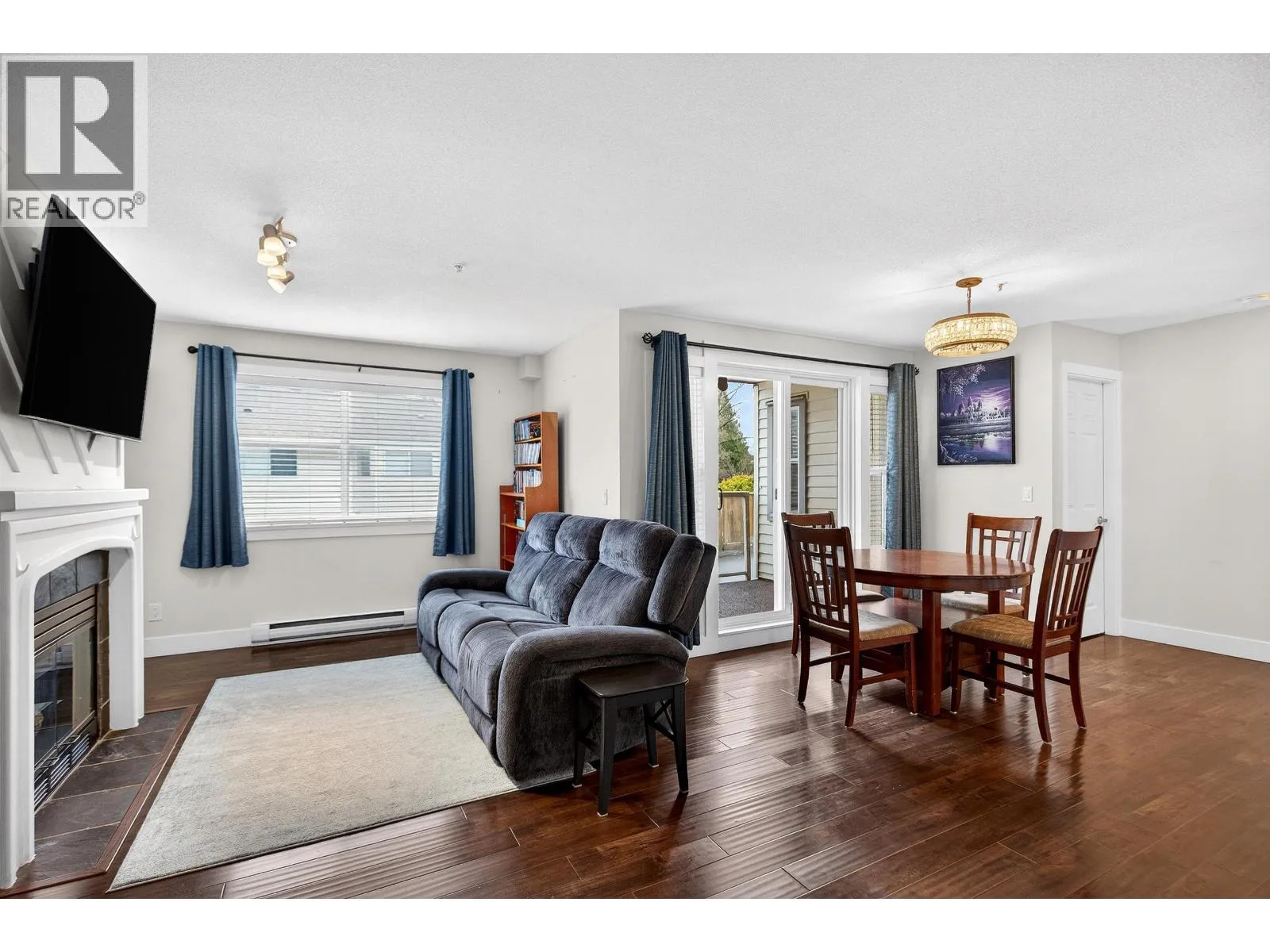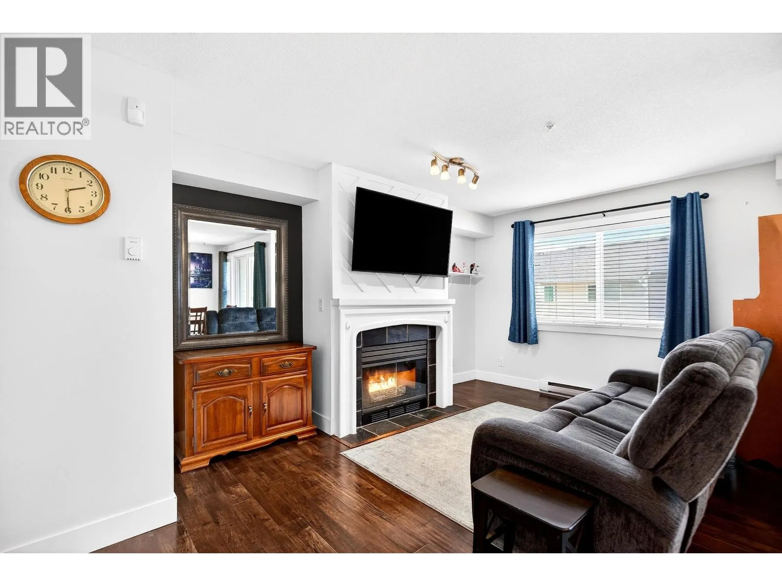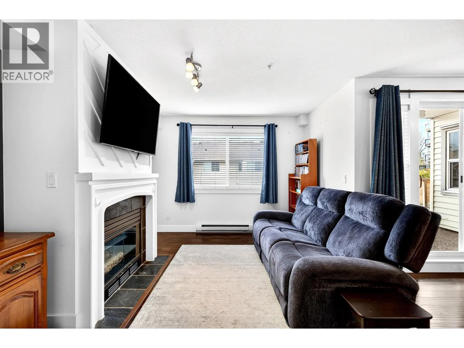 Mountain View Terrace - Welcome to this beautifully maintained 2 bed, 2 bath corner home tucked away on a quiet no through street. This raised garden level property is thoughtfully designed for seamless indoor outdoor living, featuring two generous patios for year round enjoyment, including a private retreat off the primary suite. The renovated ensuite is sure to impress, while the cozy gas fireplace adds warmth and ambiance. Enjoy the convenience of in suite laundry, 2 parking stalls, and a storage locker. Walking distance to schools, town, and transit just one block away. An exceptional blend of comfort, privacy, and convenience. (id:27476)