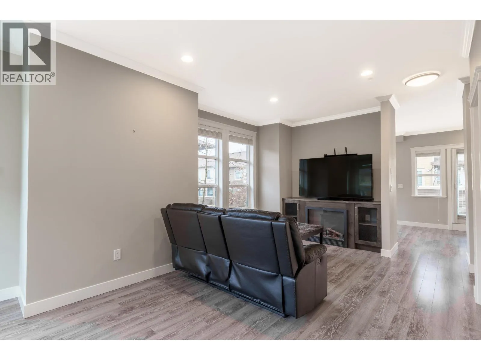 Welcome to The Terraces in Thornhill, Maple Ridge. This three-level end-unit townhome offers approximately 1,854 sq. ft. of well-designed living space with a bright, open-concept main floor ideal for everyday living and entertaining. The modern kitchen features quartz countertops, stainless steel appliances, and quality cabinetry, complemented by laminate flooring, crown moulding, and an electric fireplace. Enjoy a sundeck and patio plus artificial turf in the front yard. Added features include retractable screen doors, ceiling-mounted storage in the insulated double garage, and a built-in alarm system. Stay comfortable year-round with air conditioning. Close to parks, trails, lakes, schools, shopping, and commuter routes. (id:27476)