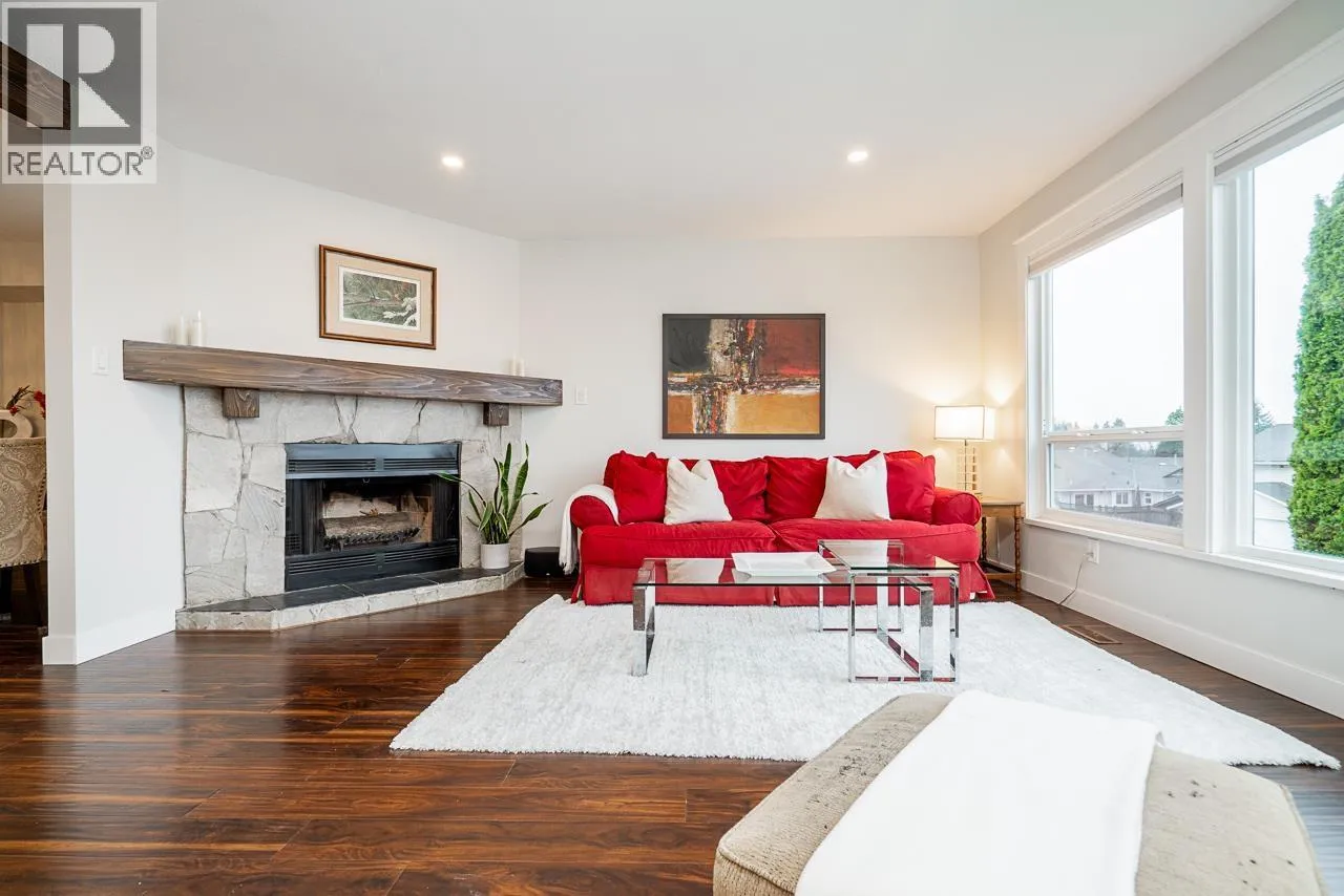 UPDATED FAMILY HOME WITH A VIEW! Nothing to do but move in and enjoy summer on your covered balcony and private landscaped yard complete with pond. This home offers an updated open plan with three bedrooms on the main and one additonal bedroom below plus a large one bedroom suite with separate entry. Your family will love gathering in this space - there's a large centre kitchen island, coffee bar and industrial sized side by side fridge/freezer, stainless steel one tub sink and tons of counter space! The living room has a cozy wood fireplace and looks out to a view of Golden Ears. The primary suite has been completely updated with double sinks, shower and jetted soaker tub. Complete with double car garage, driveway parking & a side yard for all year round RV storage. OPEN SAT 2-4pm. (id:27476)