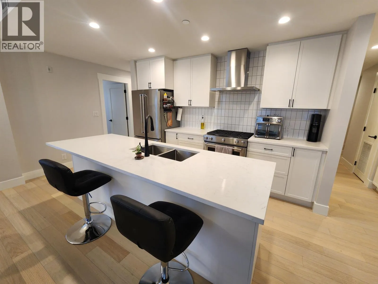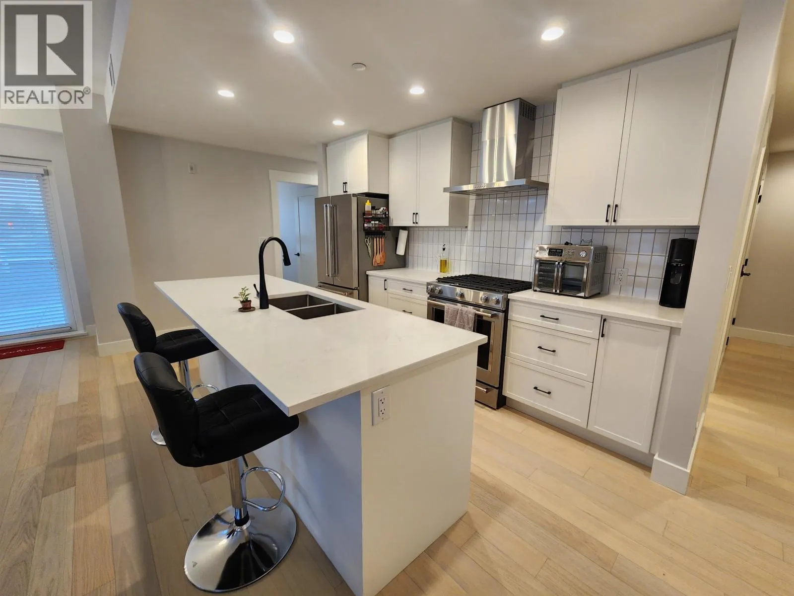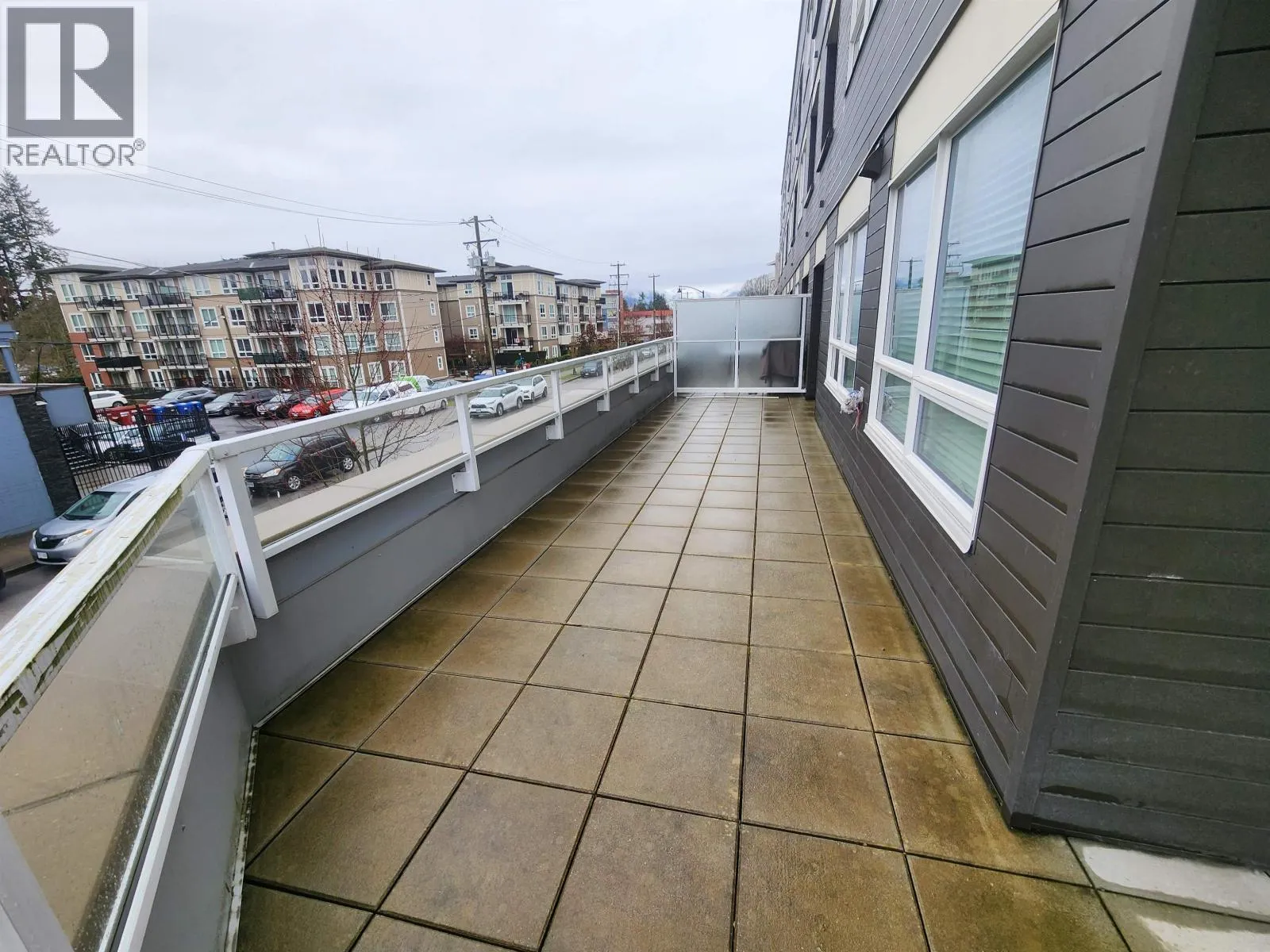 Welcome to ERA! Year round comfort! This rare 3-Bed + Den corner unit offers the size of a townhouse on a single, accessible level. Featuring over 1,300 sq. ft. of "like-new" luxury, this home boasts A/C, 9' ceilings, and a high-end Italian-inspired kitchen with a 5 burner gas range, large kitchen island, engineered hardwood floors, and expansive windows that flood the home with natural light. The standout feature is the massive 435 sq. ft. terrace-an outdoor lover's dream! Located in the heart of DT Maple Ridge, you're steps away from everything. Includes parking and storage. Perfect for local buyers wanting space and quality without the stairs! Comes with 1 Parking and 1 Locker. (id:27476)
