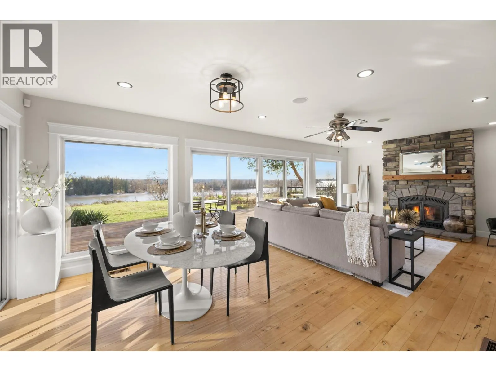 Wake up to stunning Fraser River waterfront views on River Road. This 5 bed / 2 bath rancher with basement sits on a rare 16,000+ sq.ft southern exposed lot. Offering over 2,700 sq.ft of living space in Maple Ridge´s only true riverfront pocket. Bright living areas capture sweeping river views & natural light, creating a warm & inviting space to relax or entertain. The full basement provides excellent flexibility, making it ideal for multi generational living or a future suite. The expansive lot offers incredible outdoor potential with plenty of room to create your dream riverfront lifestyle. Conveniently located close to shopping, transit, schools, and everyday amenities, enjoy the rare combination of a private waterfront retreat while still being in the heart of the City. (id:27476)