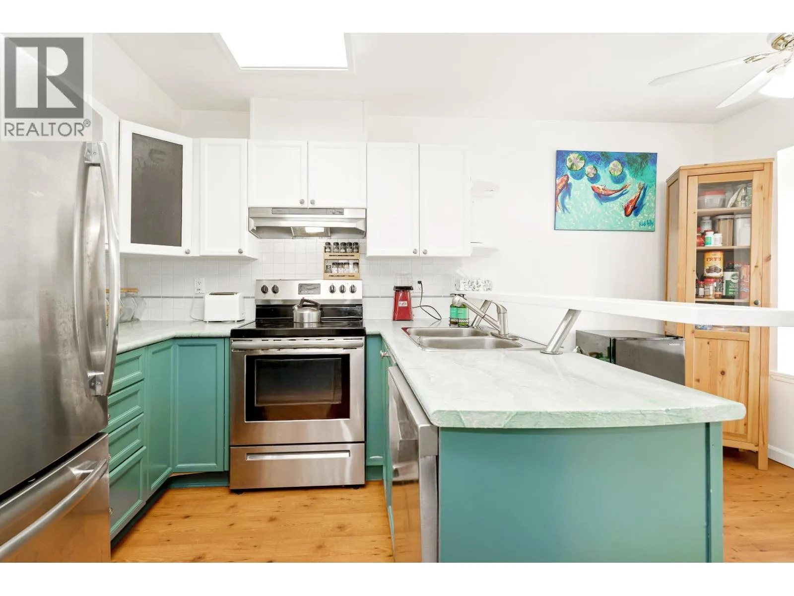 Welcome to Gabriola. This 3 bedroom, 2 bathroom family oriented townhome offers many updates from its original offerings. These include stainless appliances, laminate flooring, updated bathrooms and paint as well as a newer fireplace to name a few. Raised eating bar in the kitchen keeps the family connected with the chef while the separate eating nook and dining room provides plenty of space. The large windows in the family room and glass door allows plenty of bright natural light to filter in. This overlooks the fully fenced rear patio with easy maintenance cement paving stones and Allen-block surrounding wall. Upstairs you will find almost 17' of primary bedroom with ensuite and a 7' walk-in closet. The remaining two bedrooms also offer lots of space as they are also large. (id:27476)