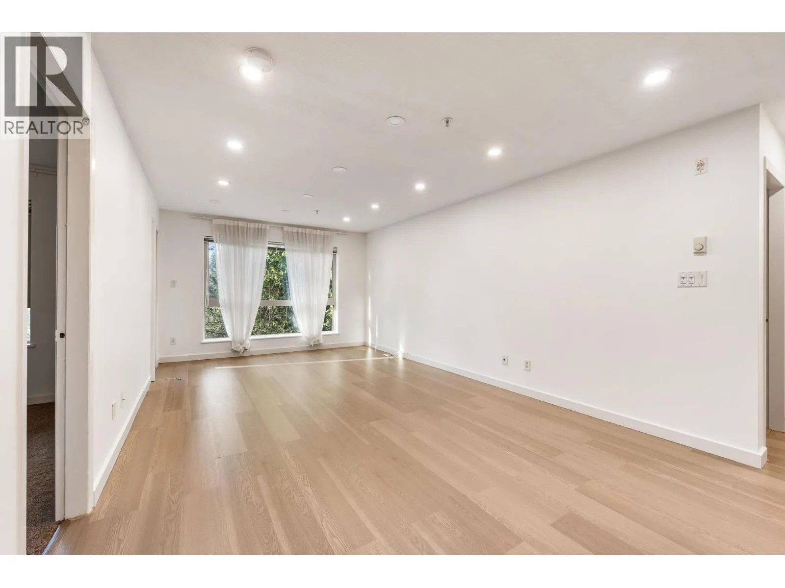 Enjoy all seasons with your unobstructed GREENBELT view from privacy of your deck! Incredible value here: updated two bedroom + den home with two full bathrooms. Brand new laminate flooring. Updated lighting that will brighten up your home AND your mood during long winters. Ideal wide layout with bedrooms on either side of unit for maximum privacy. Kitchen features stainless steel appliances + bar against large granite counter-space. His & Hers closets in primary bedroom. Separate shower & tub + double sinks in ensuite. Storage. Awesome complex & strata. Building features amenities room for your parties, full gym, & guest suite for the comfort of you & your guests. Ample visitor parking. Private dog park. Easy access to Westcoast Express thru dedicated path. Book your showing ASAP! (id:27476)