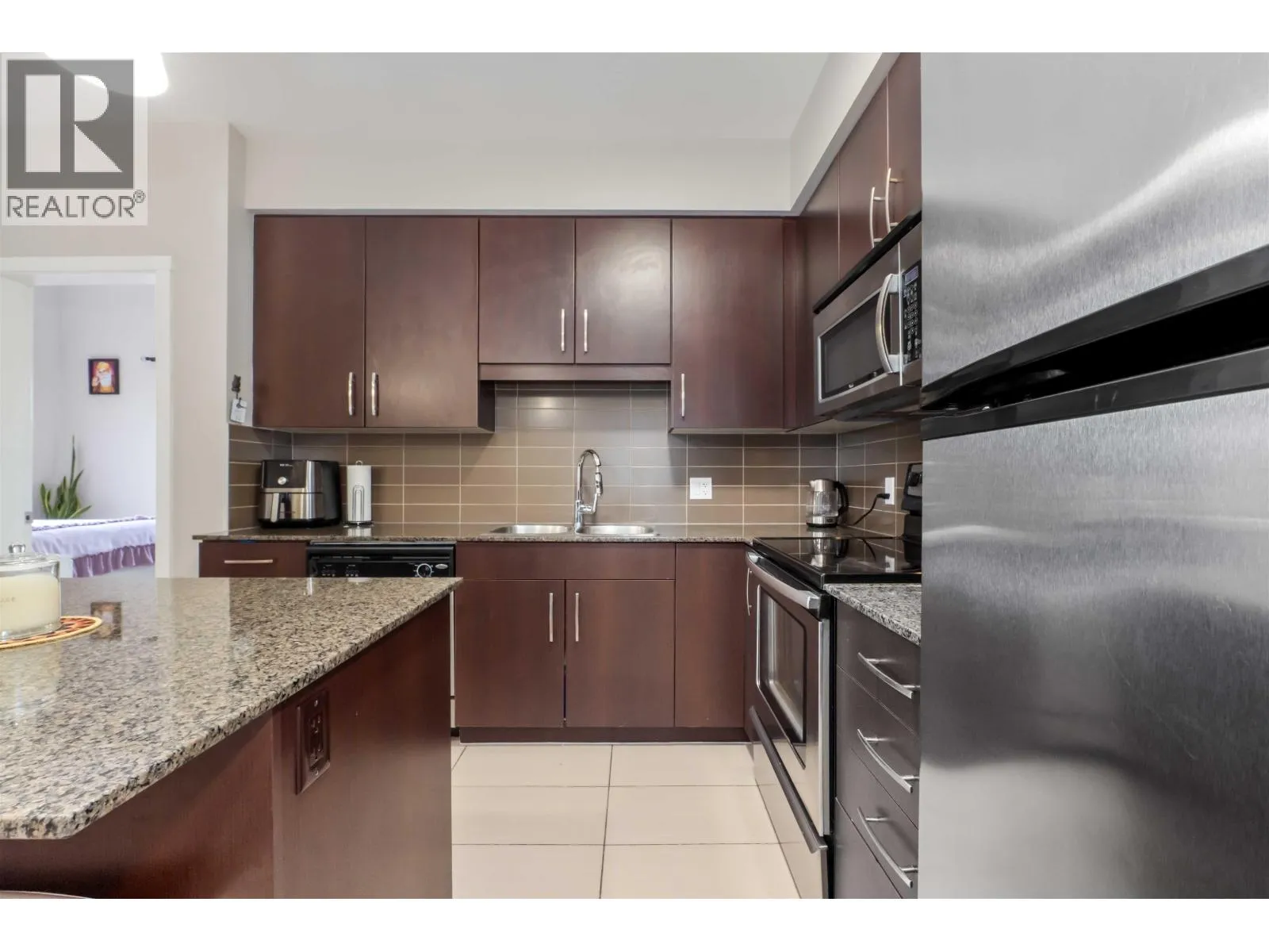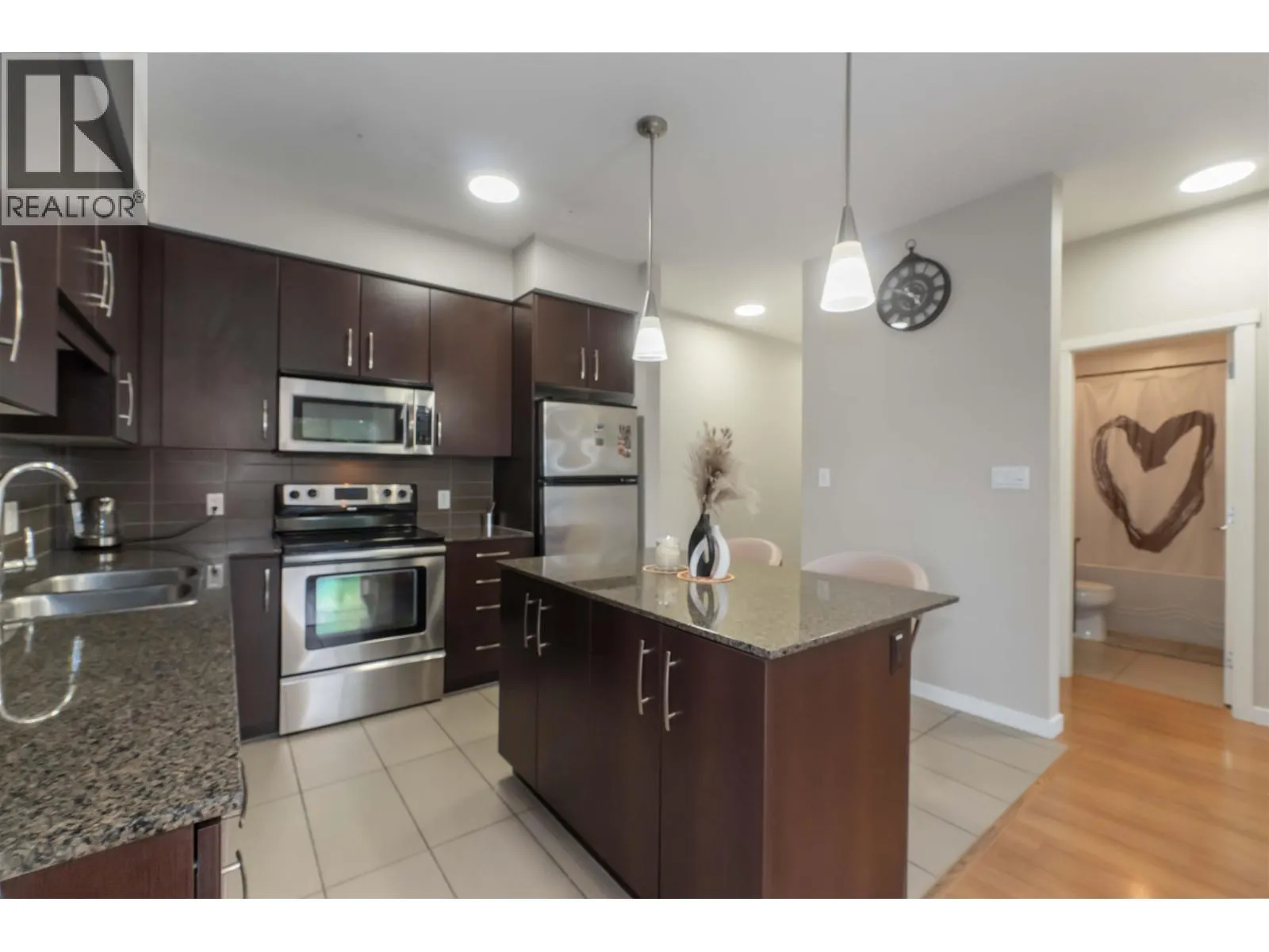 Welcome to Solo in the vibrant core of Maple Ridge, featuring this 2-bedroom/2-bathroom top-floor corner penthouse.The well-planned layout offers a bright and airy feel with soaring ceilings and a spacious living area that separates the bedrooms for added privacy. The modern kitchen is equipped with sleek stainless steel appliances. The primary bedroom boasts dual closets and a private ensuite. Step outside to enjoy Maple Ridge's may conveniences including dining, shopping, cafes, and more. With Lougheed Highway and the Haney Bypass only a minute away, plus Port Haney's West Coast Express Station just a short walk down the hill. (id:27476)