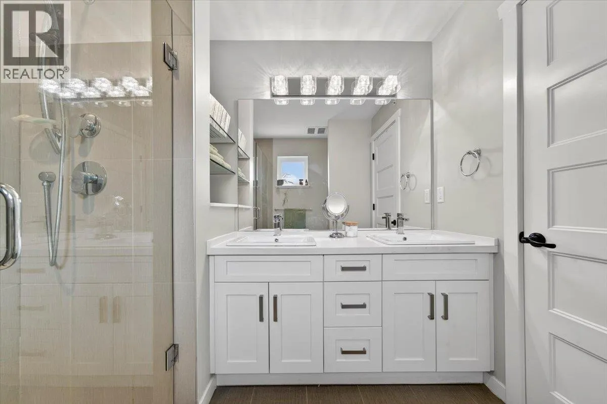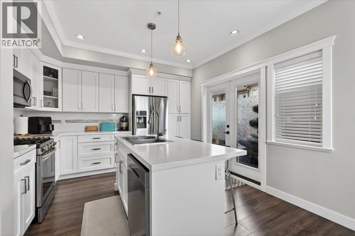"THE TERRACES" sitting high on the top like it knows it´s the best seat in town. This rare white colour scheme is a corner unit that brings the wow factor with jaw-dropping views and convenient street-level access. Loaded with upgrades, air conditioning, designer fixtures, rich millwork, and not one but TWO fireplaces. A true entertainer´s dream. With double garage, two patios ready for summer nights. The main level is open concept and adajent kitchen offering Quartz counters, stainless appliances, gas stove, pantry, and a big island that says,' is it dinner time yet!' Upstairs: 3 bedrooms two full baths. Downstairs: a flexible space with Murphy bed, full bath, and walkout patio. Stylish, spacious, and seriously hard to beat. CALL a REALTOR for viewings. (id:27476)