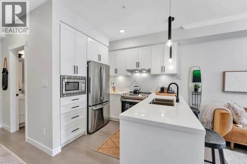 Inspire - Maple Ridge presents a thoughtfully designed Jr. 2-bedroom, 1-bath home with 649 square ft of smart, modern living - available for immediate possession. This functional layout is enhanced by elegant white quartz countertops, stainless steel undermount sinks, an imported Italian tile backsplash, and quality stainless steel appliances. The living space features refined crown moulding, durable laminate flooring, and soft carpeting in the bedrooms for added comfort. Enjoy access to premium amenities, including a fully equipped gym with cardio and weightlifting gear, a yoga studio, a social lounge with ping pong and foosball, and rooftop patios. Discover inspired living in every detail. (id:27476)