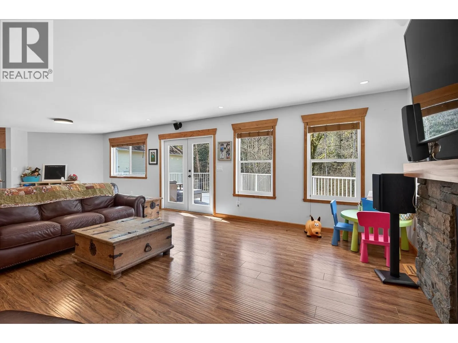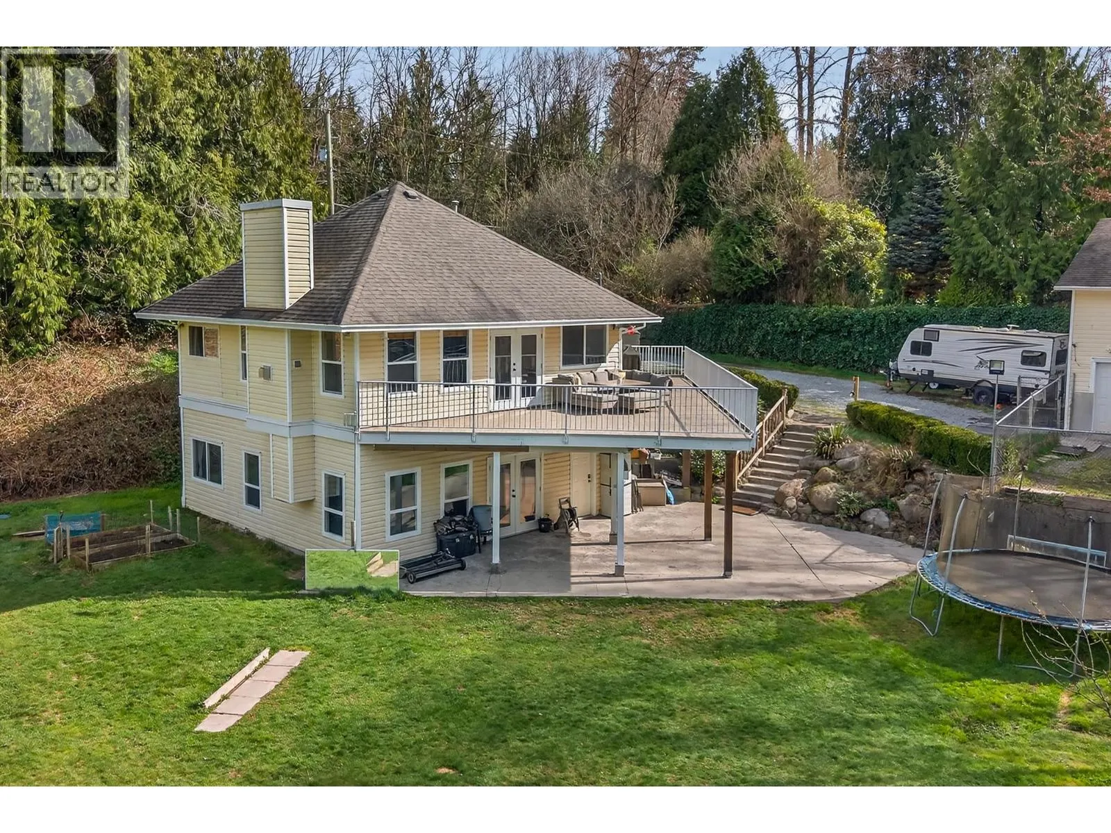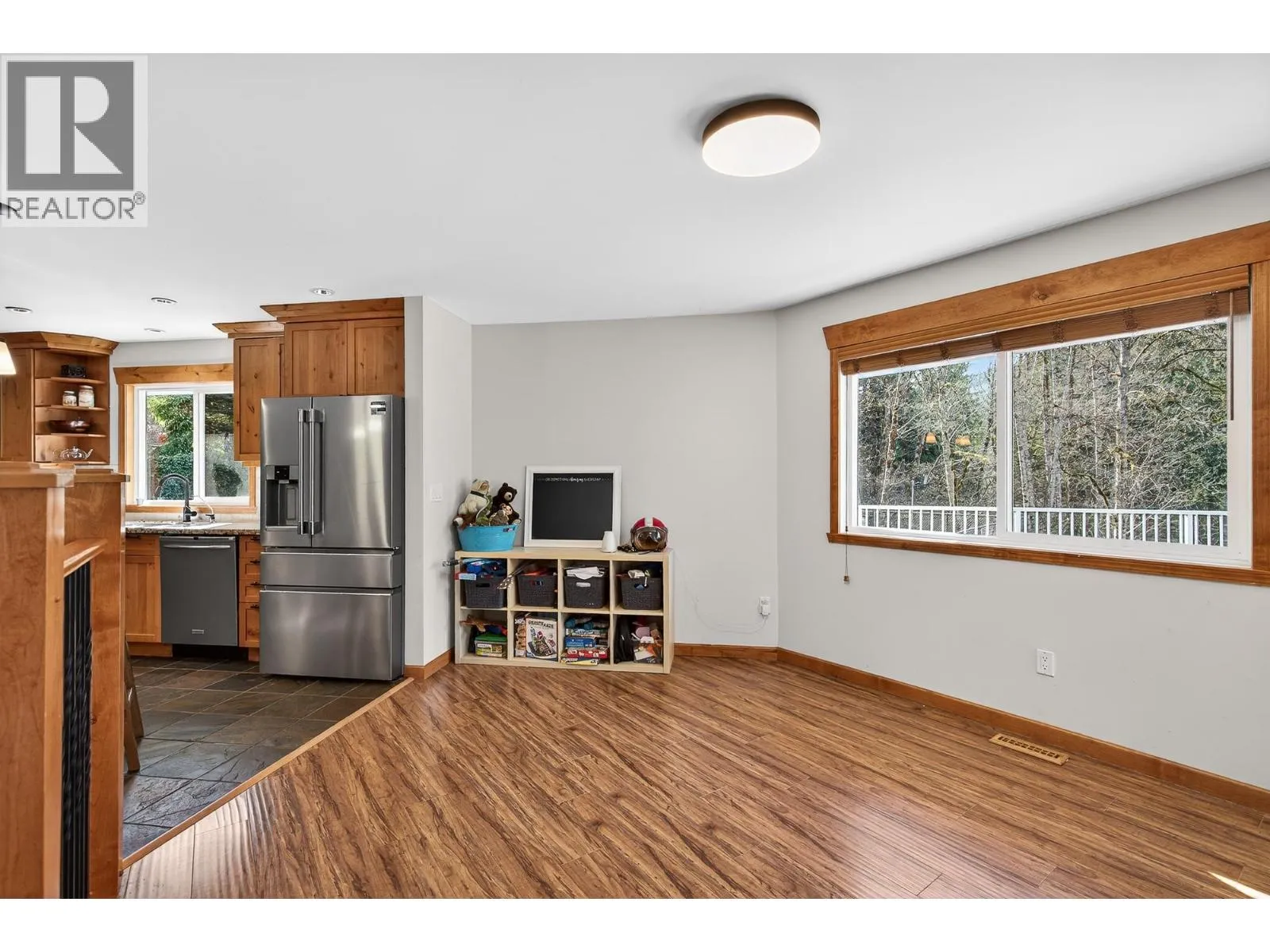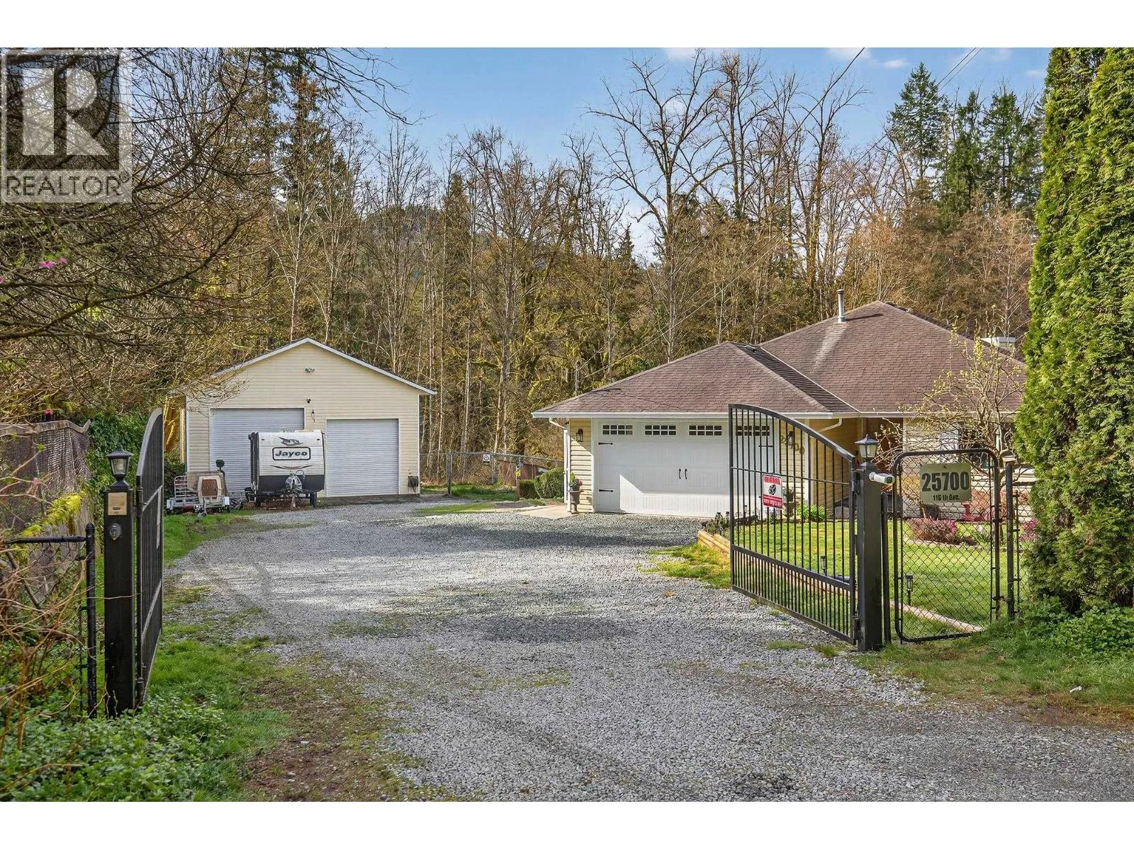 Spacious family home in the quiet community of Websters Corners. Set on a private SOUTH 1.11-acre lot backing onto Kanaka Creek Regional Park, this property offers space, privacy, and flexibility. Open-concept kitchen and living plan, accented by durable slate flooring and a striking custom stone fireplace. 4 bedrooms and 3 bathrooms with 2 bedrooms up and 2 & den down, including a main-floor primary with walk-in closet and ensuite. The walk-out basement offers great potential for extended family or a future suite. Large games room, covered patio area. New windows, new hot water tank, and poly-B plumbing replaced add peace of mind. The large detached shop with 240V power, heated office, & mezzanine is perfect for vehicles, hobbies, or storage. A rare acreage opportunity close to town (id:27476)